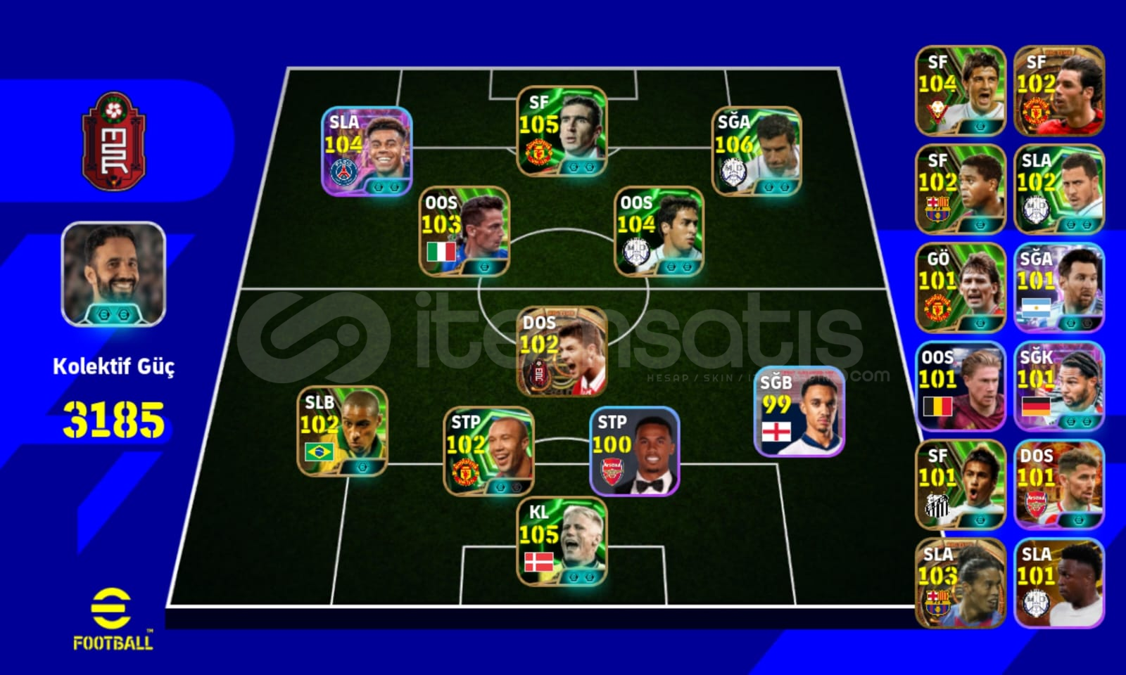 Hesapta 105 Cantona 103 Baggio 104 due 106 figo 104 Raul 105 schemicel ve birsürü eski oyuncu mevcuttur rashford tarzı falan