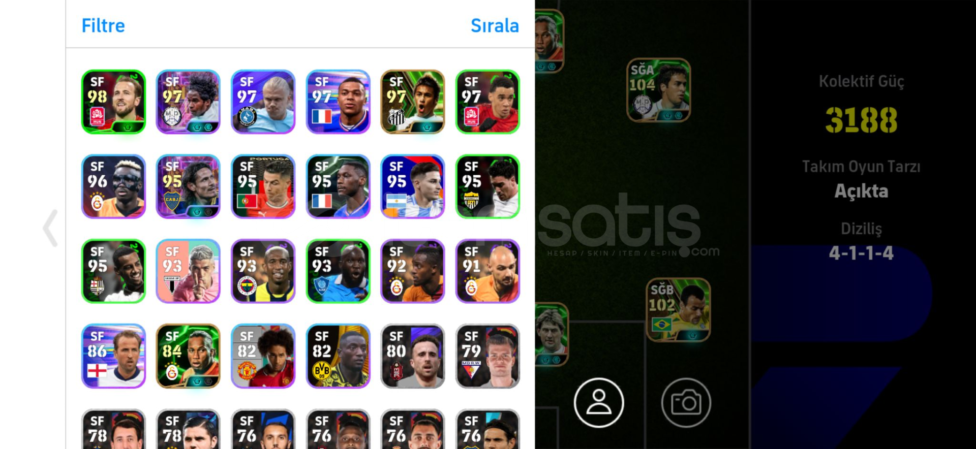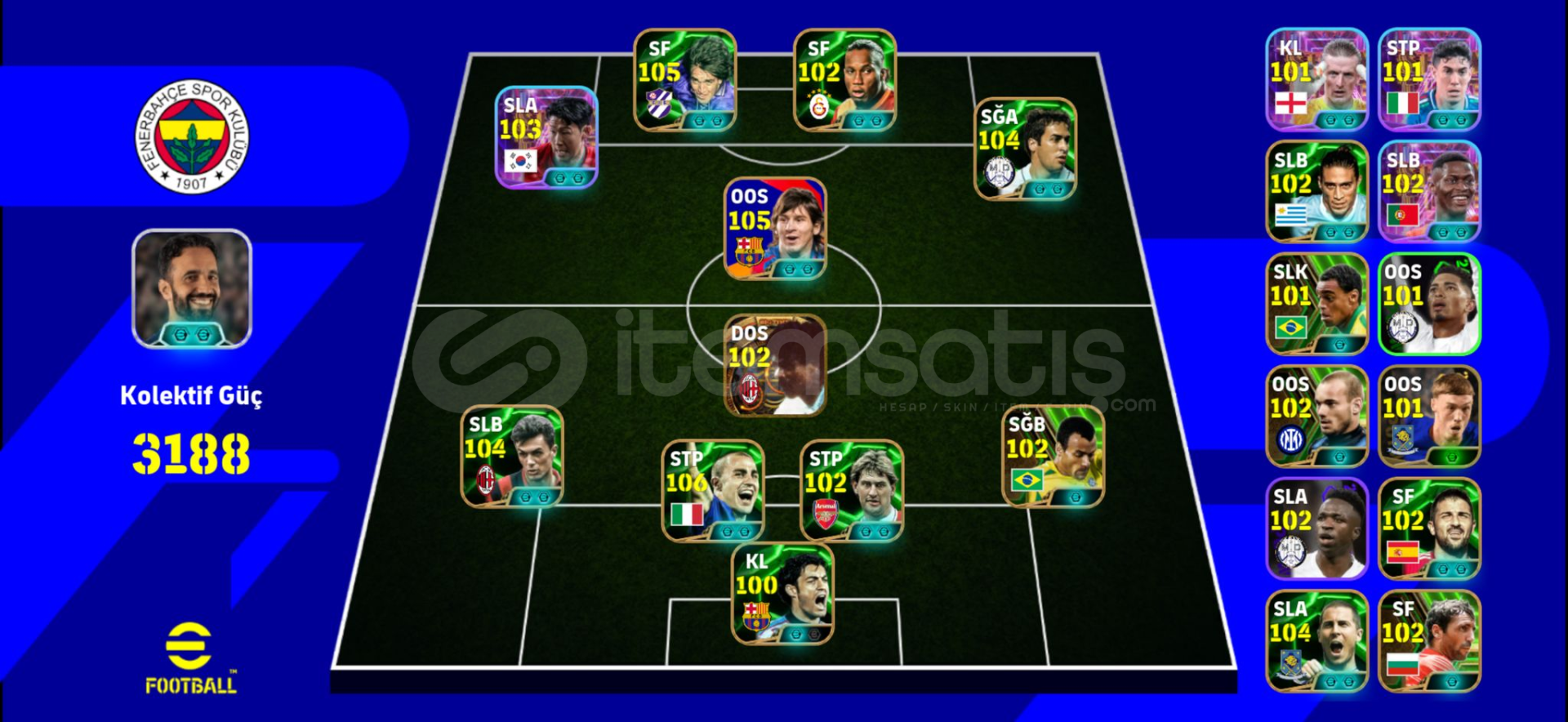 Hesabımız 3188 kg dir bombacı son, 104 maldini,105 batistuta ve daha iyi oyuncular vardır. Pazarlık payı vardır. Hesap Gmail değişimlidir.