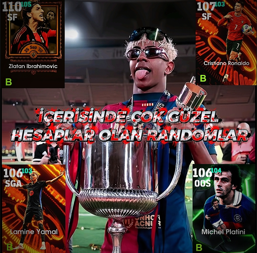 GÜZEL HESAPLARDA OLAN OYUNCULAR İBRAHİMOVİÇ(110)MESSİ(108)RONALDO(107)NEYMAR(107)YAMAL(106)GULLİT(104)PLATİNİ(106)🌟BENCE ŞANSINIZI DENEYİN BELKİ İYİ HESAPLARDAN GELİR SONUÇTA 20TL🌟