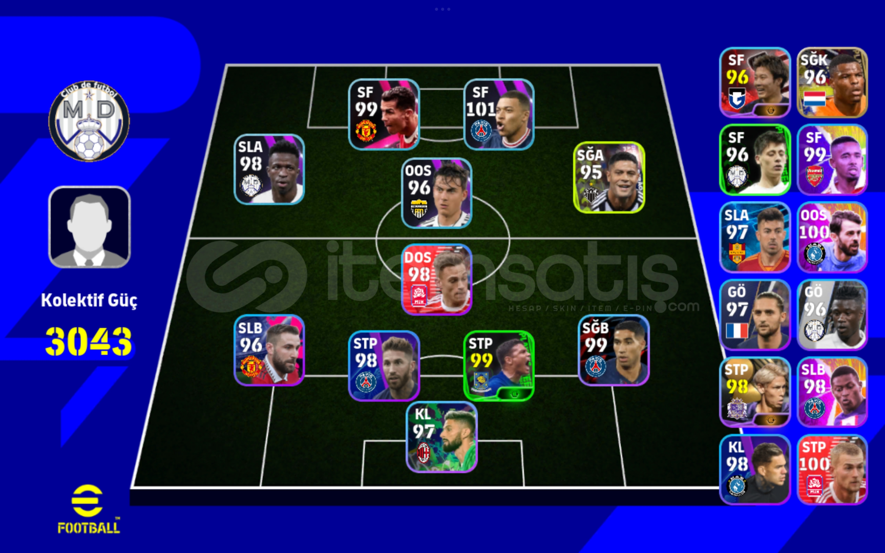 -Hesap tek bağdır-Eksi mc yoktur-Mail değişimi yapılır (bilmeyenlere yardımcı olunur 😊)-Satın almak için aktif olmamı beklemenize gerek yoktur. Aldığınız anda aktif olurum-İcon kadro-Süper lig kadrosu-Potw kadro -Nadir kadro-2022den kalma nadir oyuncular-95 HULK (Çok nadir)-99 Manu C.RONALDO 2022-101 MBAPPE 2022-98 VİNİCİUS 2022-96 DYBALA 2022-102 İcon MESSİ 2021-105 Kaf...