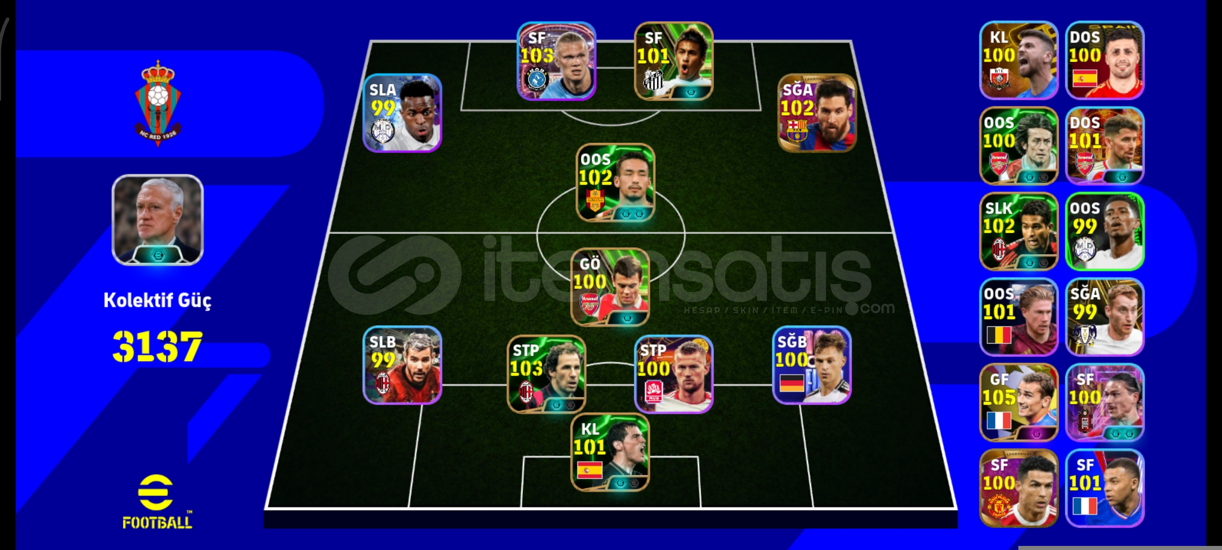 HESAP TEK BAĞDIR İÇERİSİNDEİCON MESSİİCON RONALDOİCON SCHOLESİCON CECHİCON FERRER105 GRİEZMANN103 SHOWTİME HAALANDVE FRANSA PAKETİ BULUNMAKTADIREKSİ MC YOKTURMAİL DEĞİŞİR