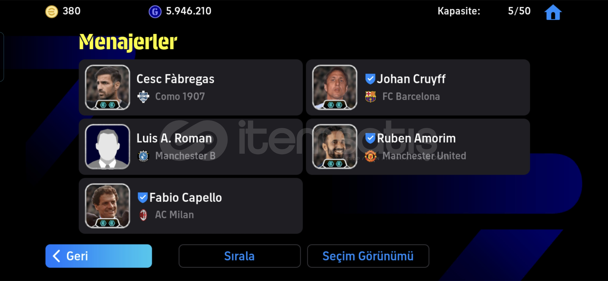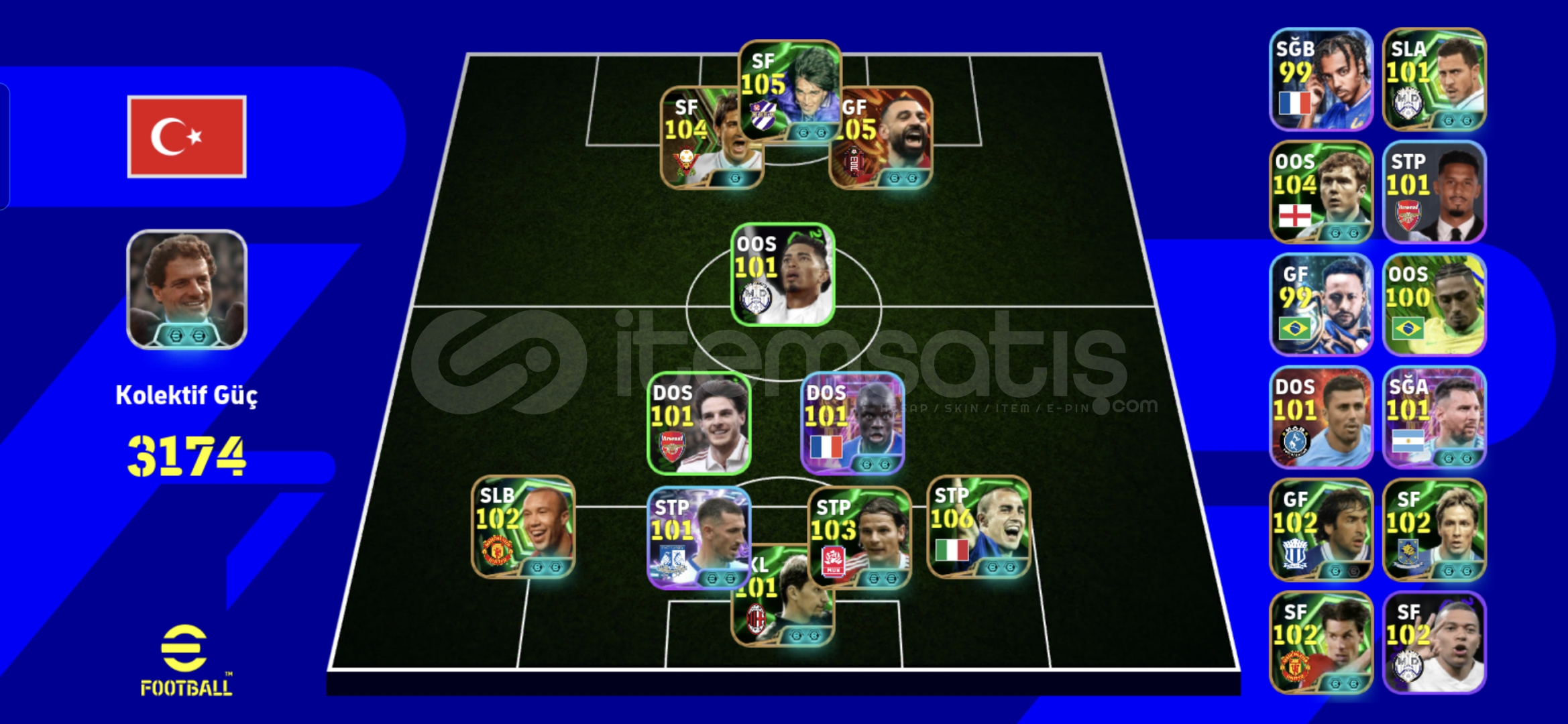 °Tek bağ°380 mc°4 özel menajer.°Menajer derdi yok her türlü menajer mecvut en iyisi capello da var. Açık vermeyen en iyilerden. °6m gp°META Diziliş ŞUAN 1. KLASMANDA fotoğraf güncelEFSANE 106 salah boşluk kollayanların en iyisi 106 cannavaro105 BATİSTUTA104 SCHOLES104 villa103 van buyten vsvs2 tane Sağ bek savunmacı sağlam var. °geliştikçe fiyat artar. Aktif oynuyorum...