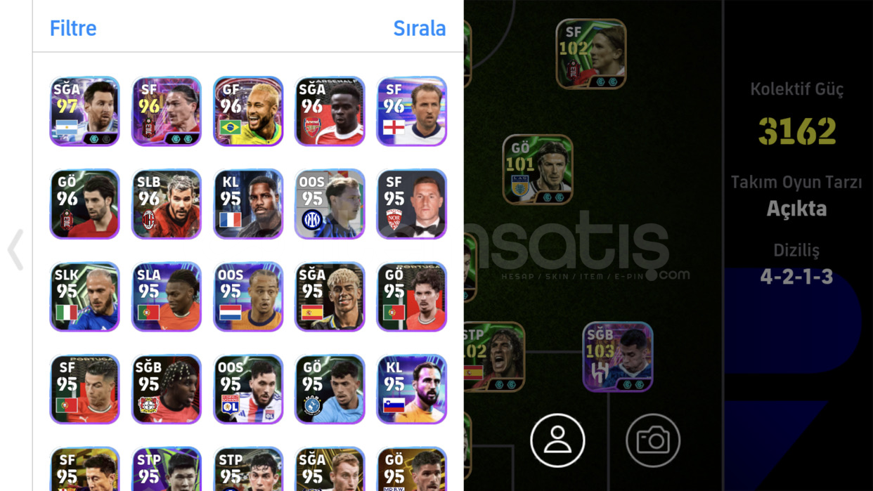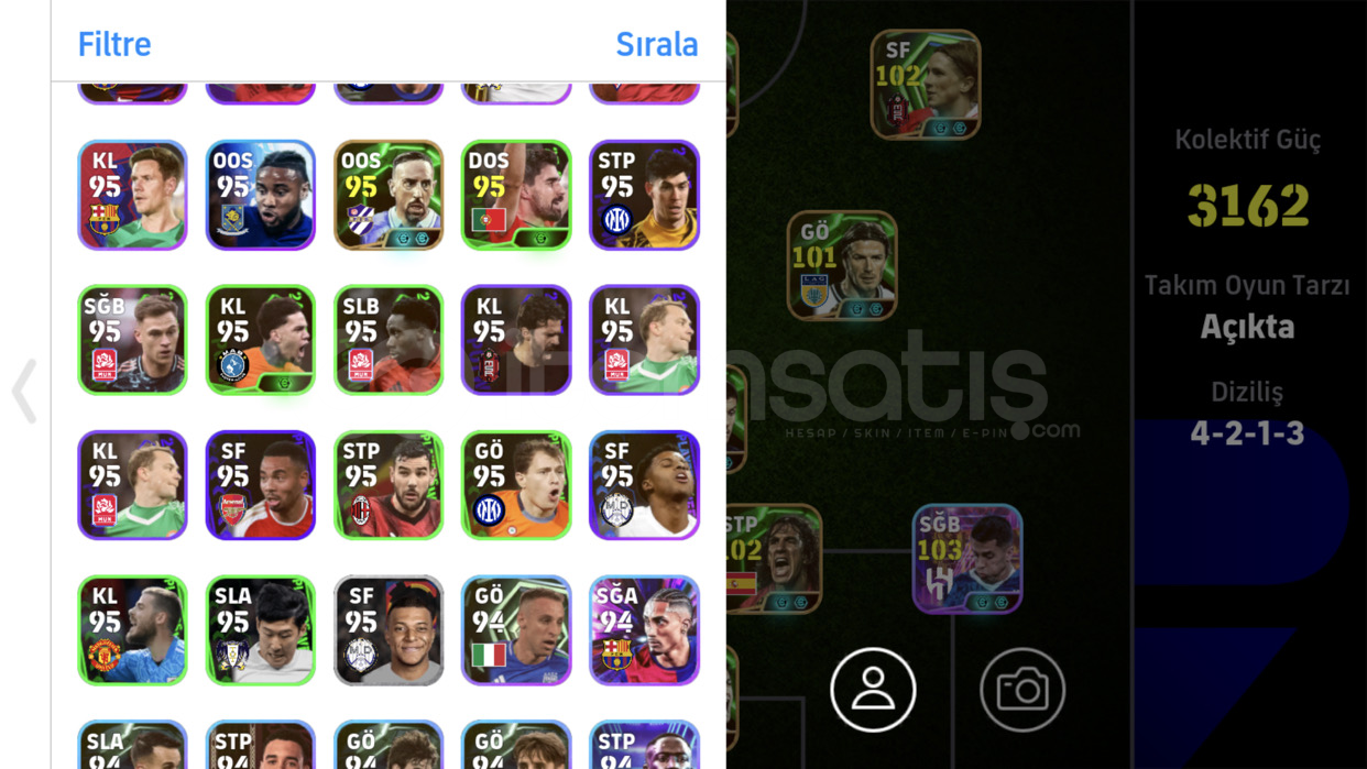 Kaçmaz rummenigeli hesap bu fiyata böylesi yok105rummenige oyunun en iyi forveti104hazard 102torres 101rafa silva106cannavaro103cancello ve eski kartlar var hesapta 1.klasmana kadar kasılmış fıstık gibi hesap sorunuz olursa sorabilirsiniz