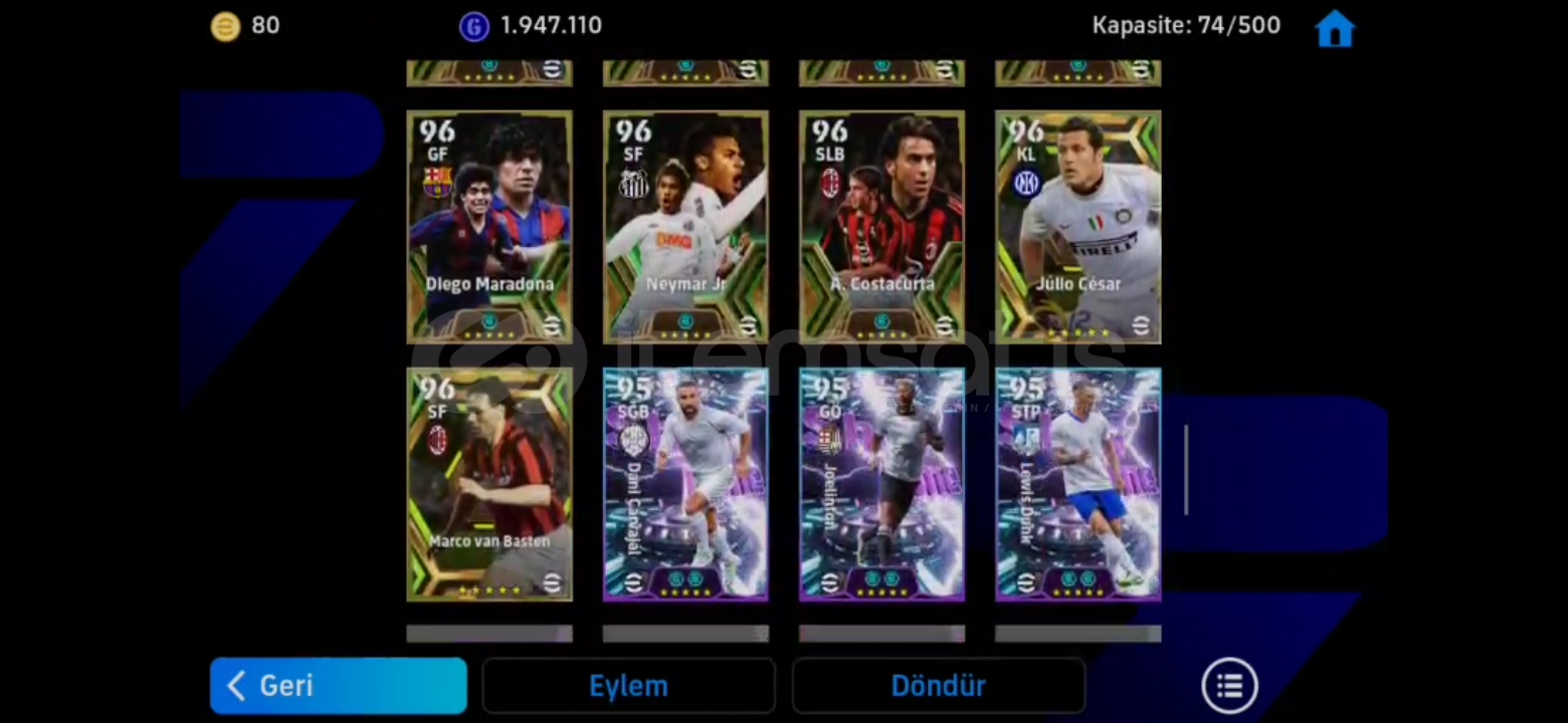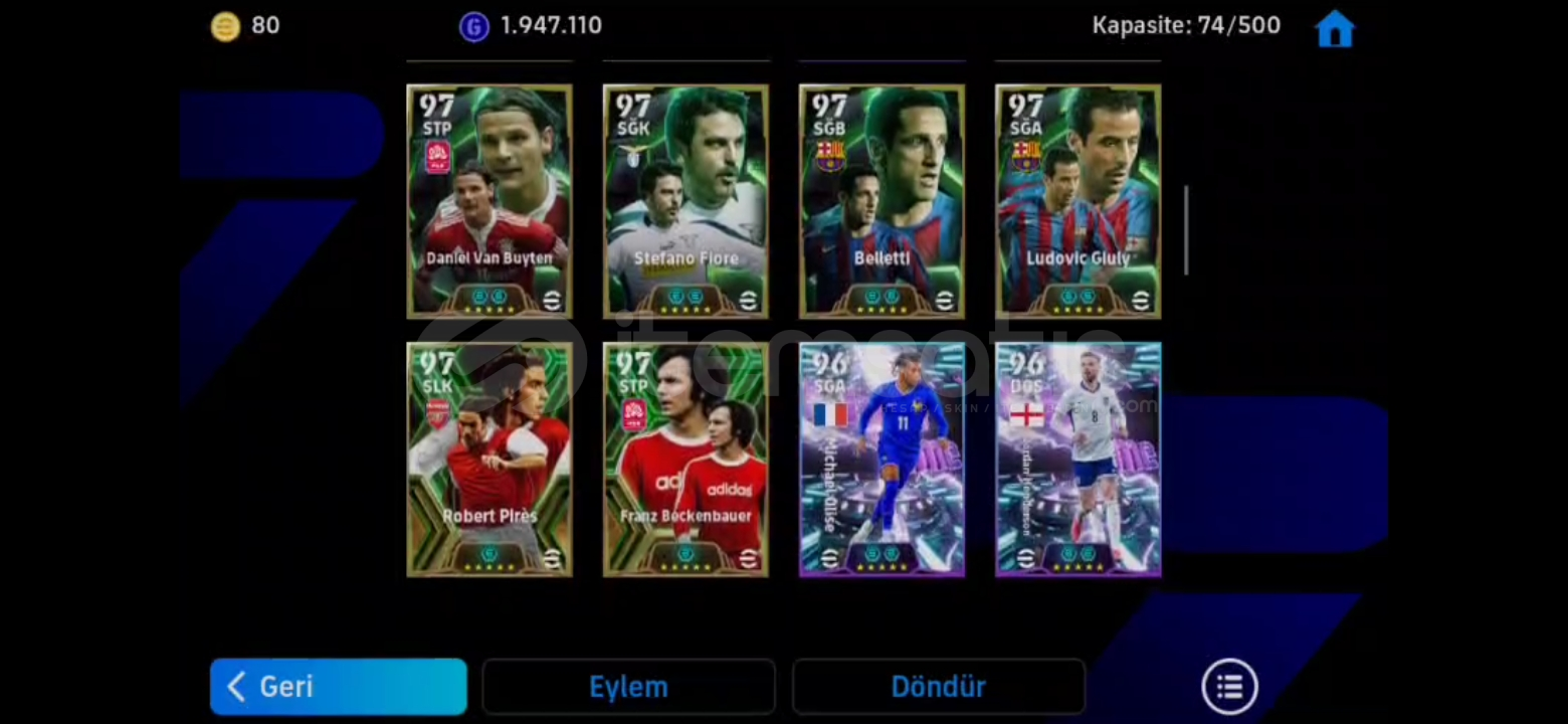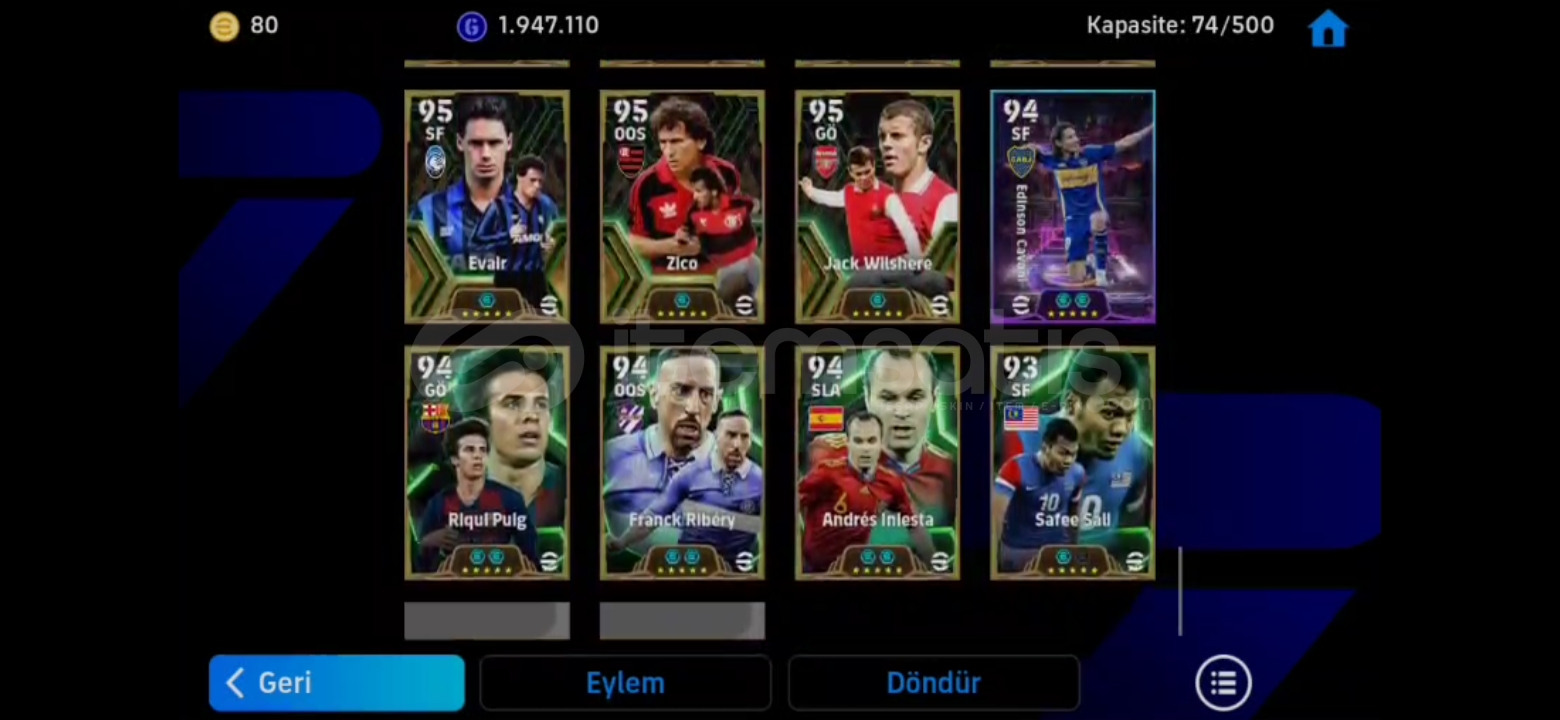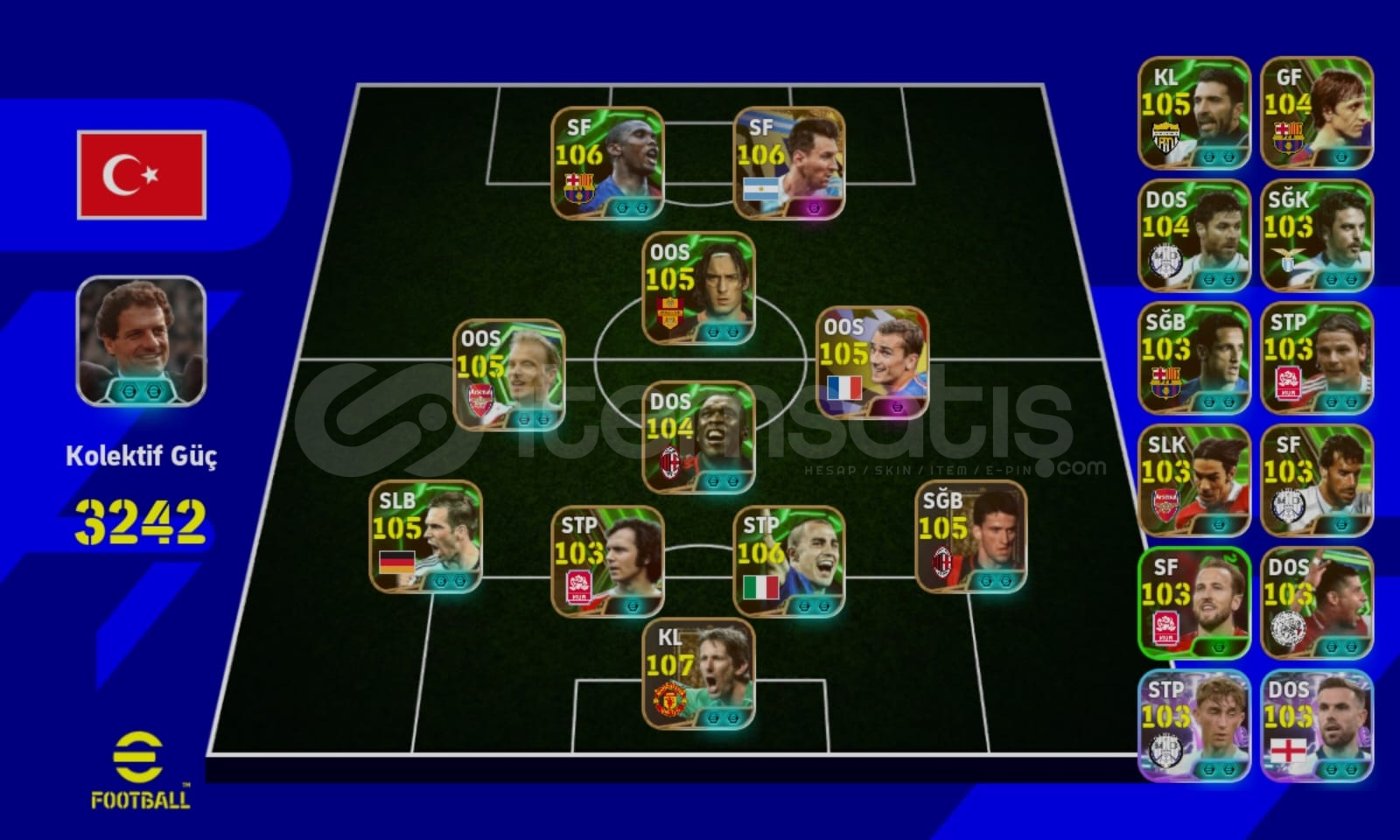 Bu hesaba çok para yatırdım. Şimdi de paraya ihtiyacım olduğu için satıyorum acilen. Fiyatta pazarlık olur. Ciddi alıcılar yazsın. 3244 kolektif güçlü hesap 76 epik show time oyunculwr içeriyor. Toplamda 350 oyuncu var hesapta. Gözeçarpan , renkli kart, show time,big time ,efsanevi, epik kartlar içerir. Hesapta 3 bombacı vardır.canla başla pas, öngörülü pas,aşılmaz defans,yıkılmaz kale, uzaklardan müdahale,kıvrak hareketlenme, canla başla bitiriş vb. tüm özellikler mevcuttur hesapta.12 tane epik menajer bulunmaktadır.
