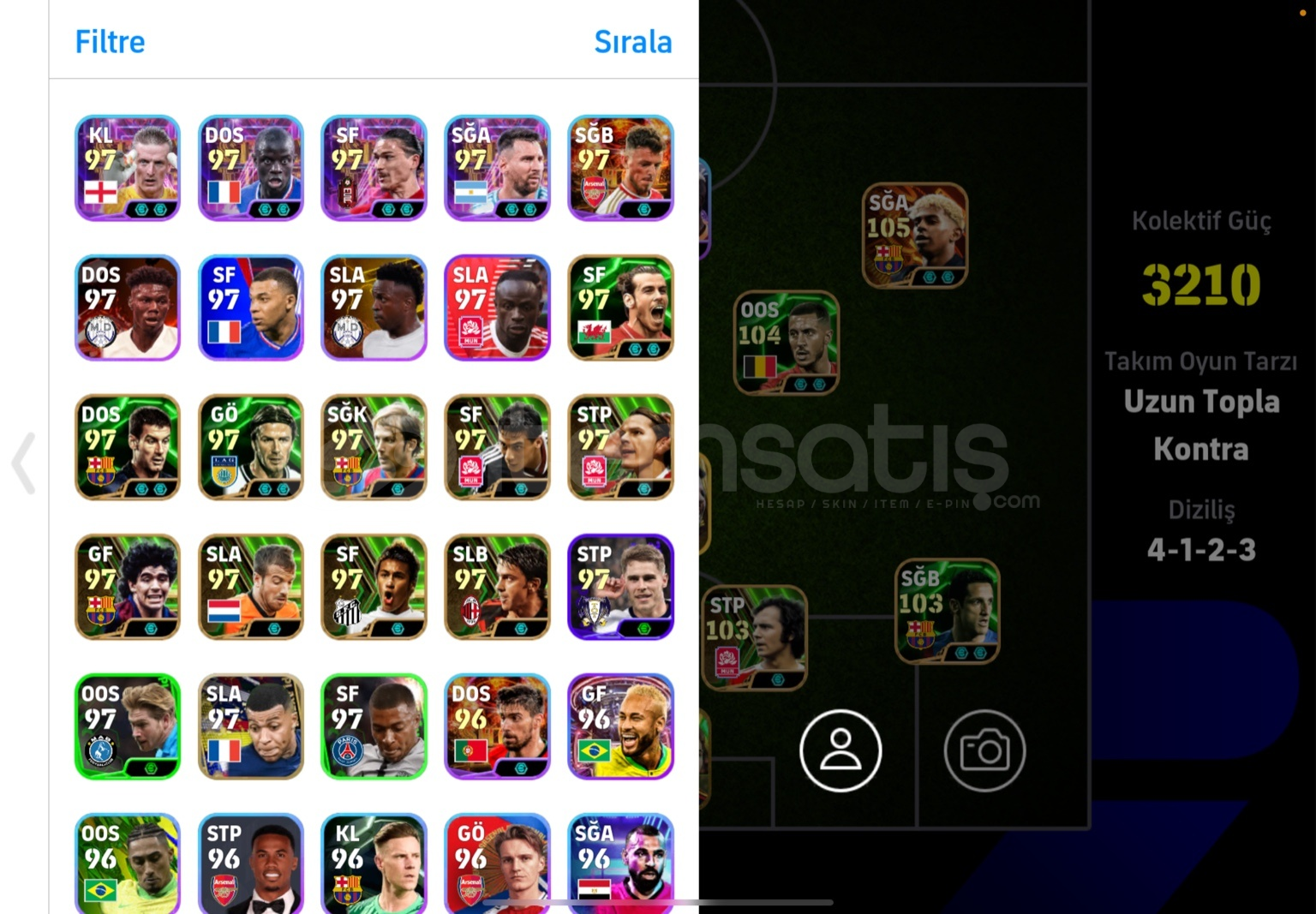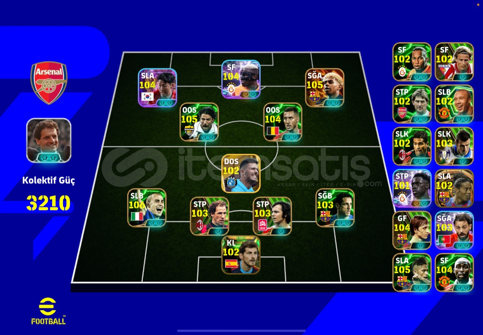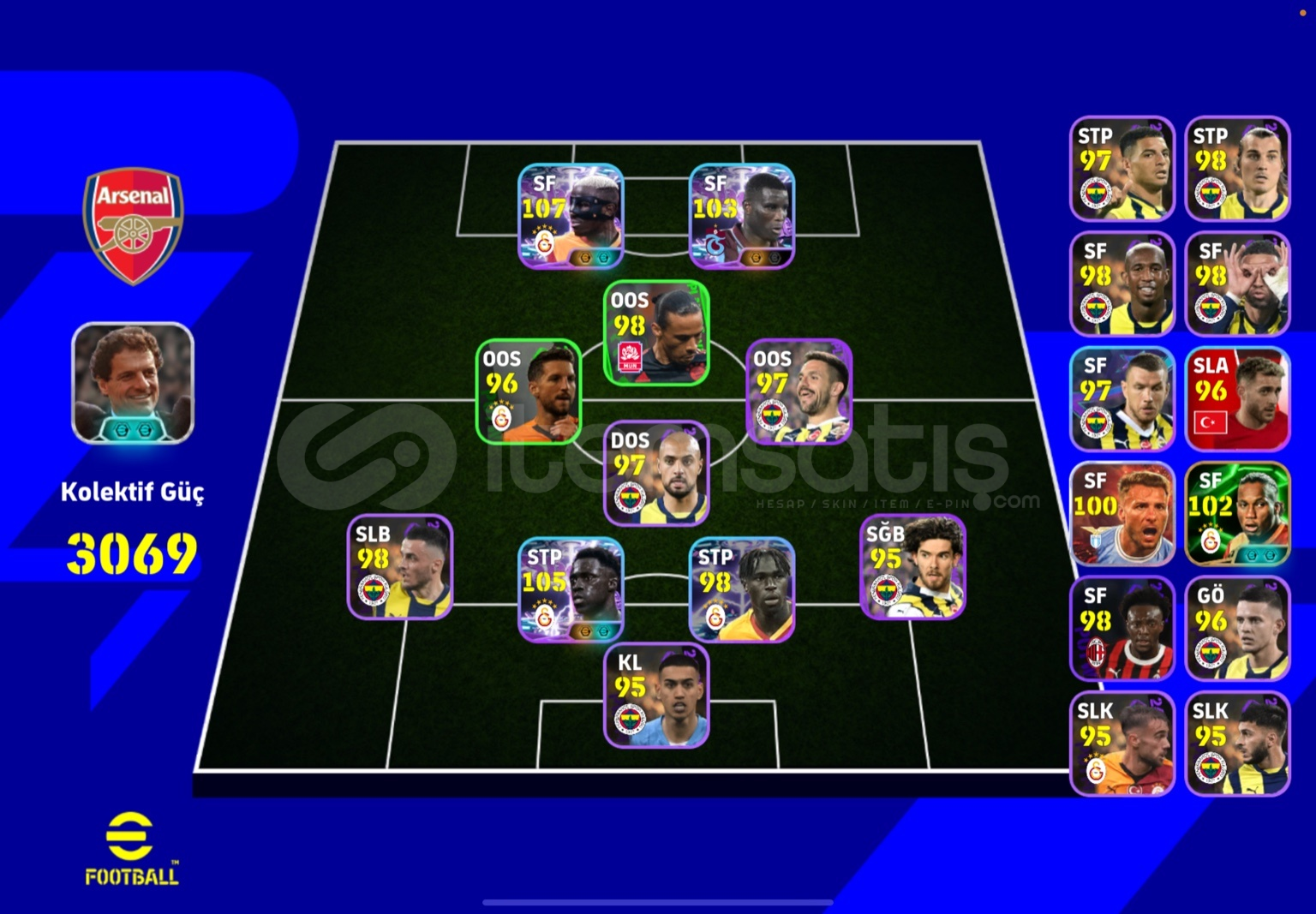 104 Osimhen BOMBACILAR: (105 Del Piero 106 Yamal 104 Son 101 Bale 101 Burak). Süper Lig Kadrosu Çok Sağlam. Her Oyun Tarzı İçin Menajer Bulunmakta.