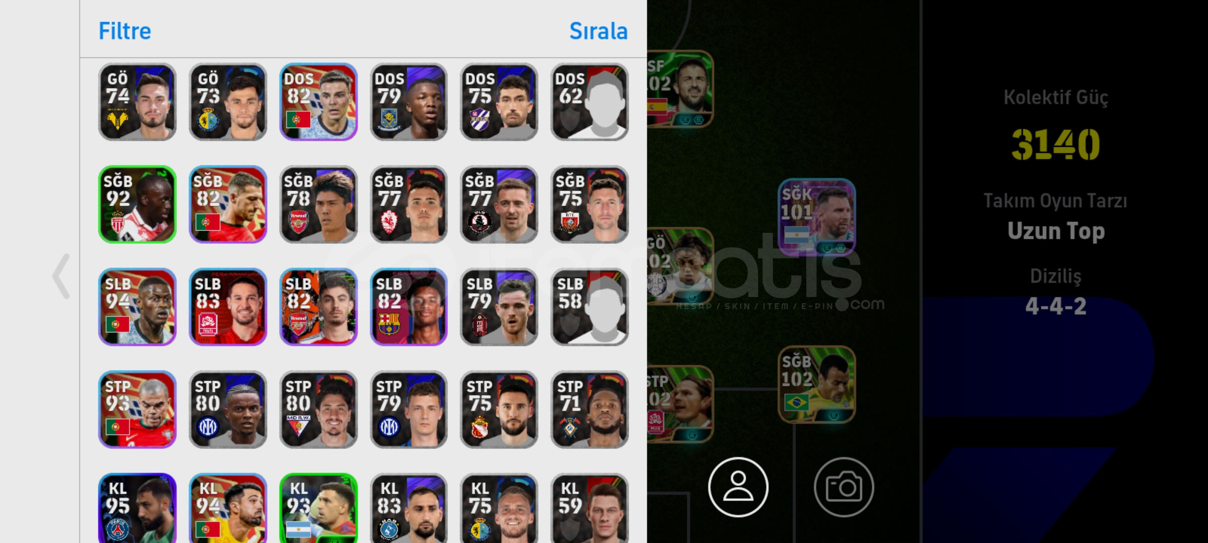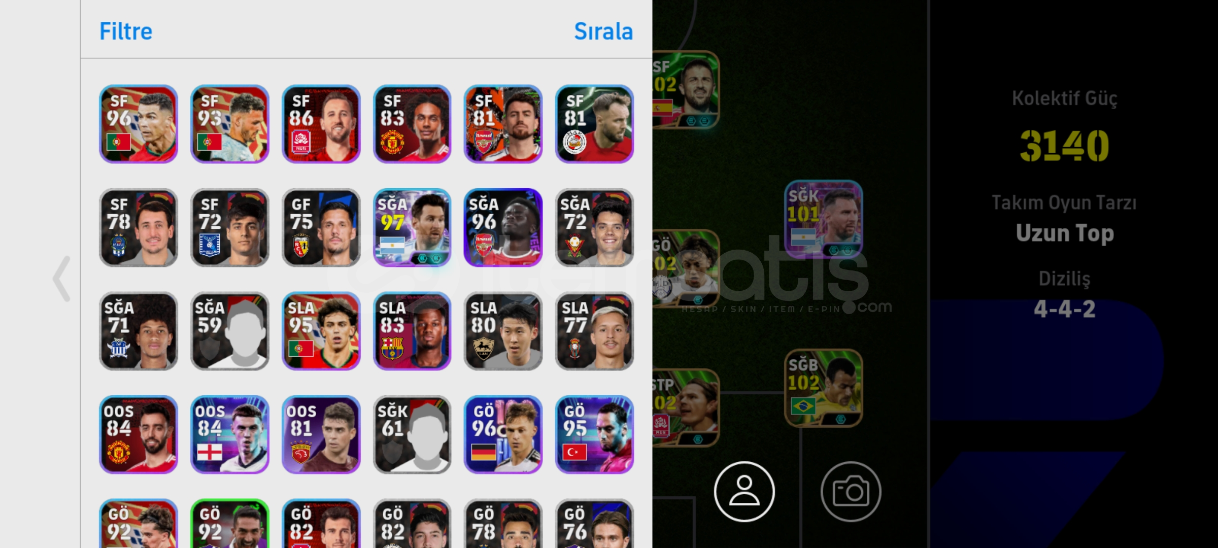🔥 eFootball Mobil FULL KADRO HESAP – 3140 Kolektif Güç 🔥Hesap tamamen oturmuş META kadrodan oluşmaktadır.Gelişmiş oyuncular, 100+ reytingler, çok sayıda Legend / Big Time / Epic kart vardır.Oyun Tarzı: Uzun TopDiziliş: 4-4-2Kolektif Güç: 3140---⭐ ÖNE ÇIKAN YILDIZLAR100+ OVERALL çok sayıda geliştirilmiş oyuncuBig Time / Epic kartlarGüçlü defan...