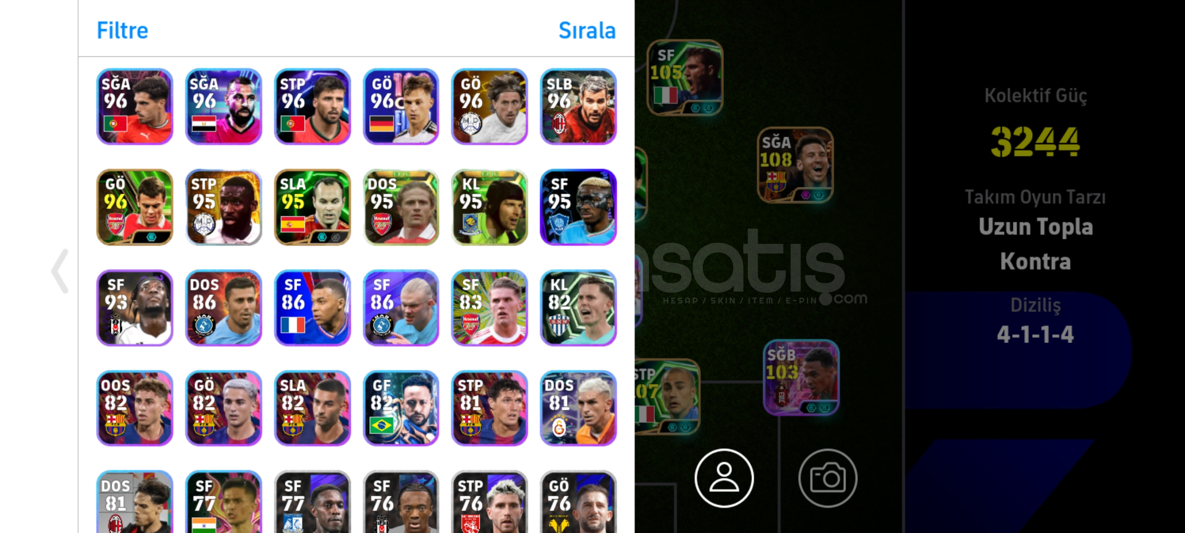 İos Android Tek bağ kontrol edildiGiriş 6Hesabın uygun olmasının nedeni ios da - MC olmasıdır android kullanıcısında bu problem yok rahatlıkla alabilir.Hesap çok saglam piyasası 3500 hepsi de yeni karttır.Yükselen oyuncular kg 3250 oluyor güçlendiricileri doğru basılıncaVieri 106Olise 105Coler 104Suarez 106Elber 104Nuno Mendez 103Cassilas 102