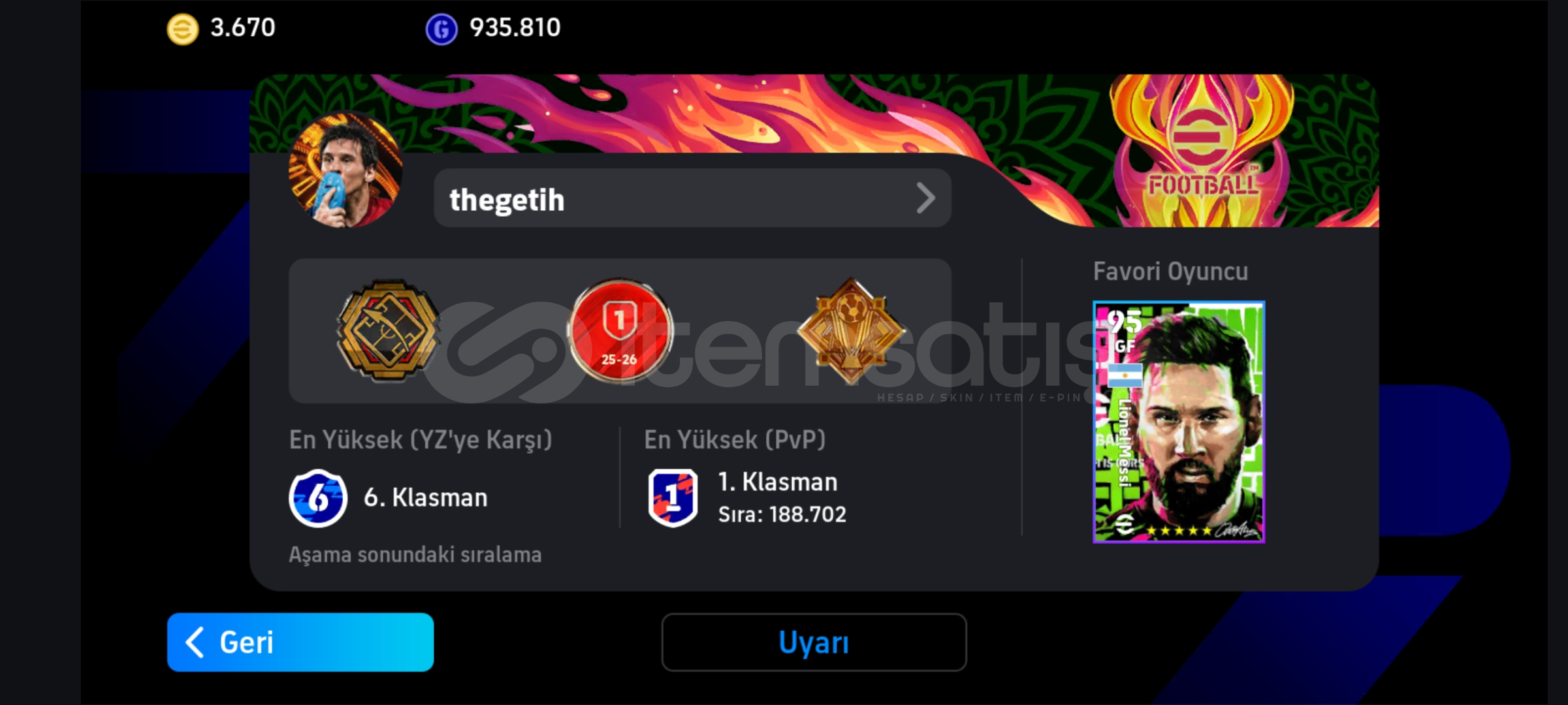 Hesap gördüğünüz gibidirHesapta 3600mc var1. Klasmani birçok kez görmüş hesapGüncel sıralaması 37kŞanslı hesap