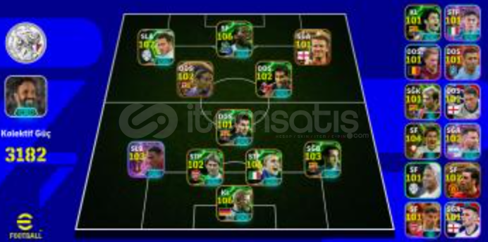 MAX 3190 KG - 106 DROGBA - TEK BAĞ - 103 ARNOLD - 106 O.KAHN - 106 CANNAVARO - 103 BİG TİME RONALDİNHO - 102 BİG TİME BECKHAM - 200 SEÇMELİ GÜÇLENDİRİCİ VE 12 RESGELE GÜÇLENDİRİCİ VAR - OYUNCULARA GÜÇLENDİRİCİ BASINCA 3190*A KADAR ÇIKIYO - MÜKEMMEL HESAP - KADRO DIŞI ÇOK İYİ ÇOK FAZLA OYUNCU VAR