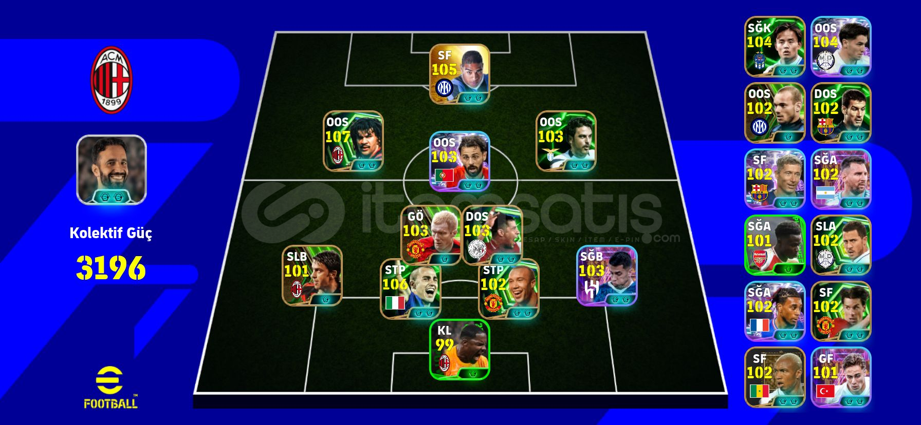 107 Ruud Gullit106 F. Cannavaro105 Adriano104 Brahim Díaz104 Takefusa Kubo103 P. Scholes103 S. Fiore103 J. Cancelo103 Bernardo Silva103 F. Rijkaard102 M. Silvestre102 M. Olise102 Pep Guardiola102 W. Sneijder102 E. Diouf102 R. van Nistelrooij101 CostacurtaMenajerler;Cesc FabregasGennaro GattusoRuben AmorimÇift Bağ Hesaptır.Diğer Bağ ölüdür.Değişim olmaz.ABARTI OLAMAYACAK ŞEKİLDE PAZARLIK YAPILIR.Sorun yaşarsanız lü...