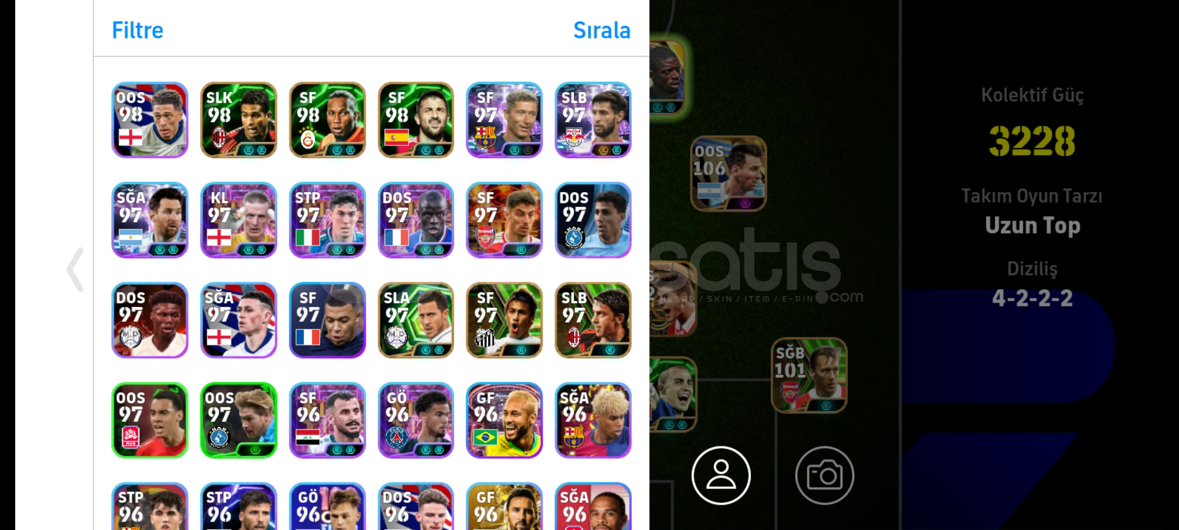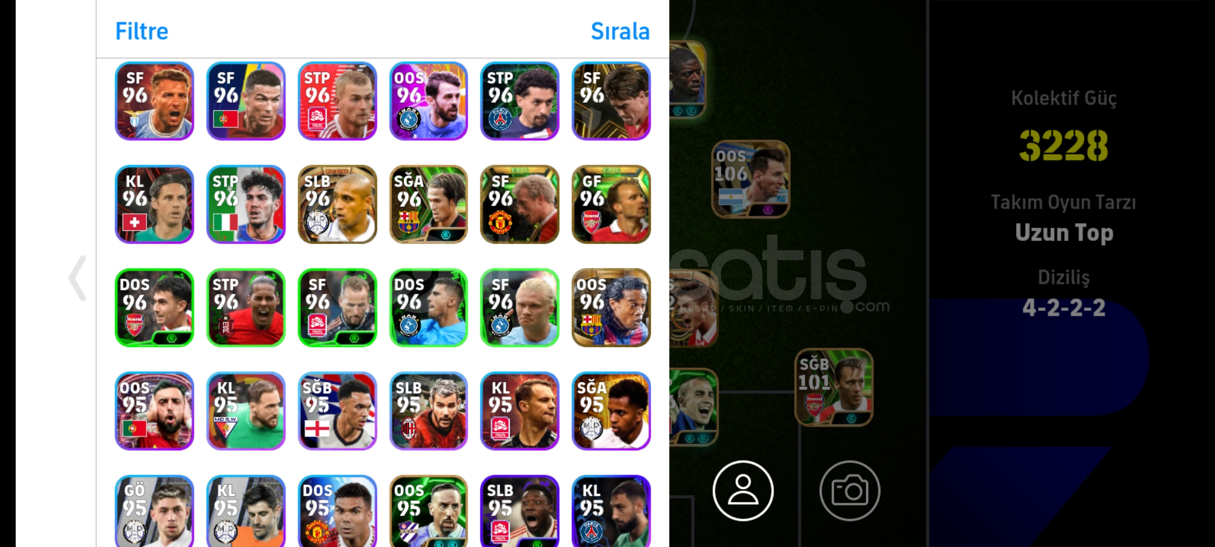 Hesap ios Androidtek bağdırİos Android - mc yokturRezervi iyidirBombacı del Piero ve meta Dembele vardır2021 den kalma icon oyuncular ve birçok nadir kart bulunurDoğru güçlendiricilerle 3230 u bulurBir sorunuz olursa yazınTekliflerini bekliyorumFRTSHOP GÜVENCESİYLE ALANA ŞİMDİDEN Hayırlı OLSUN