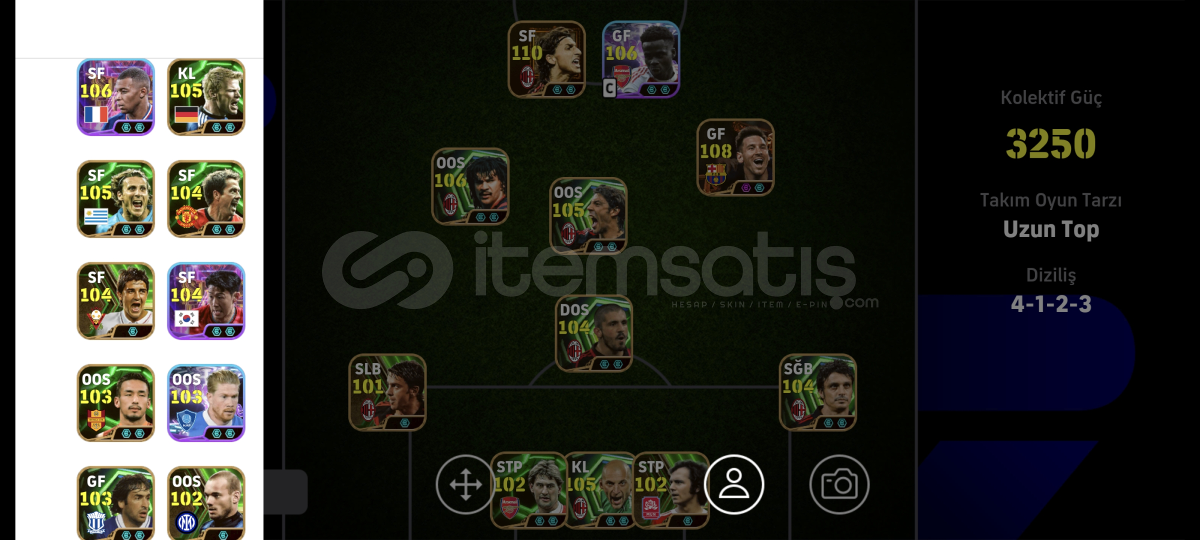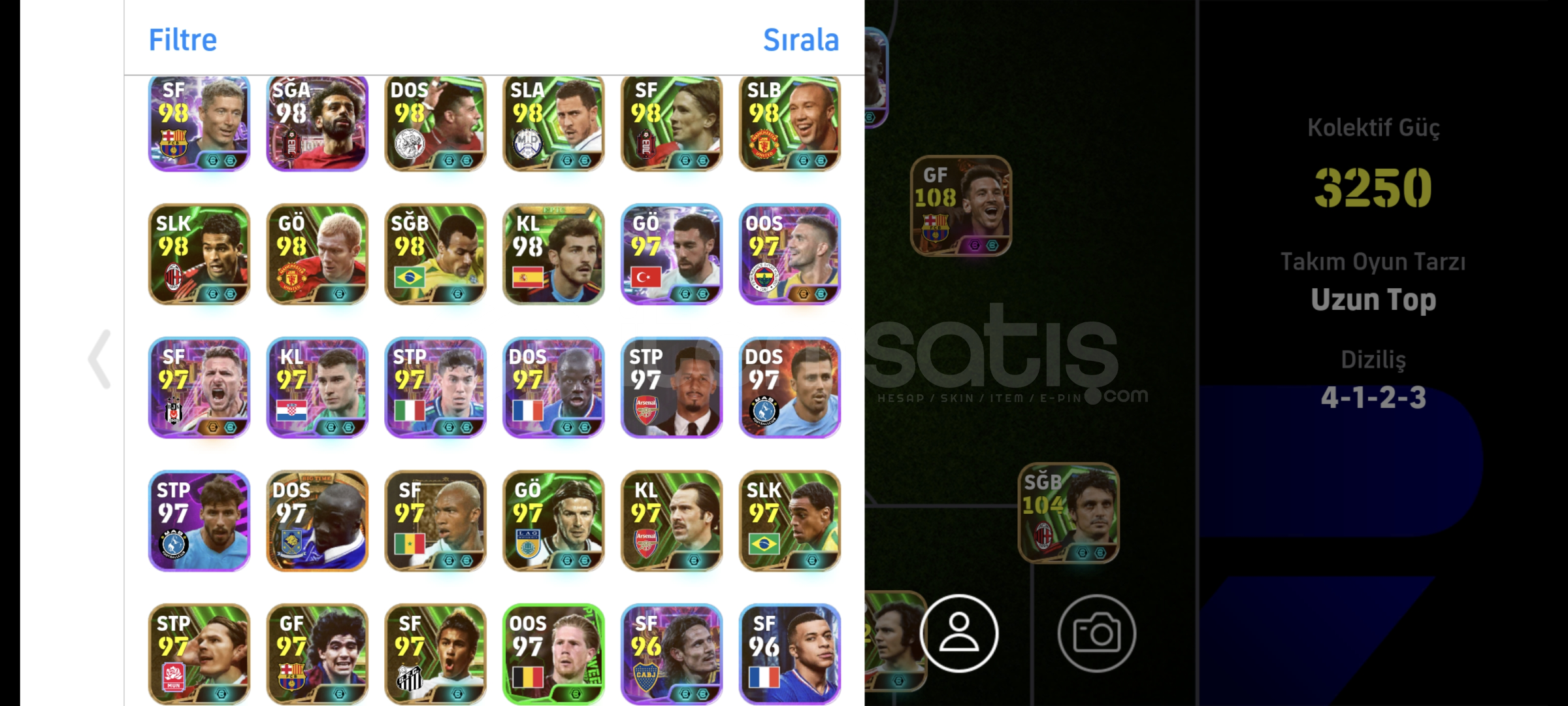 Hesap aşırı şanslıdır çoğu epic ilk 10 topta geldi içine parada yatırılmıştır.Aşırı iyi hücum ve defans hattına sahiptir kolaylıkla 1. klasmana çıkabilirsiniz.Hesabı yılbaşında verilecek ve seçilebilecek bedava kartlarla rahatlıkla 3265-3270 arasına getirebilirsiniz.(Bazı kartların güçlendiricileri olmadı...