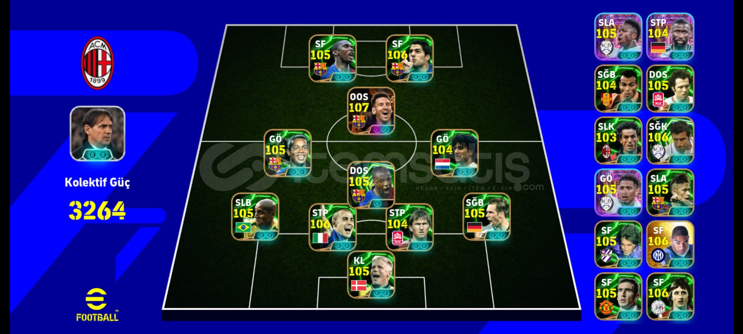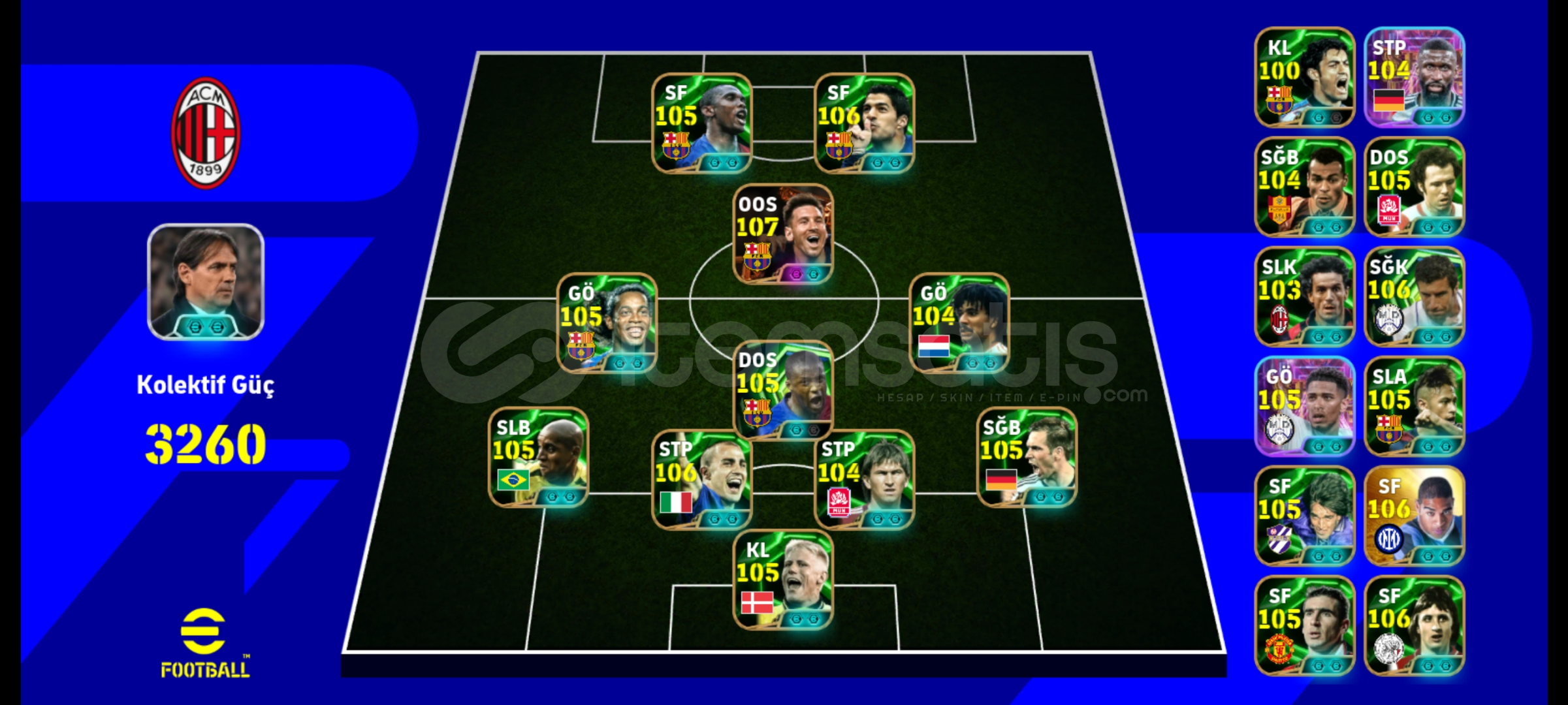 Hesap mükemmeldir en iyi kalecisi defansı ileri hattiyla her türlü oynatır. En iyi üçlü Shevchenko,Eti Ve rummenigge bulunur.Bombacilardan En iyileri Mohamed Salah ve Chiesa bulunur.Hesapta bir sorun çıkarsa anında iade saglanir.Alicisina hayırlı olsun:)