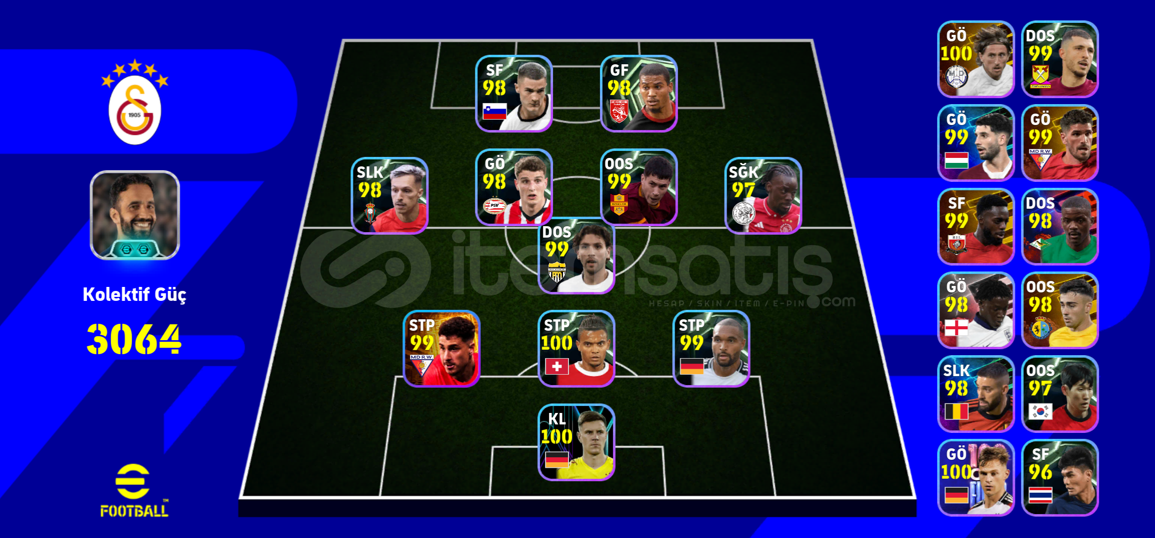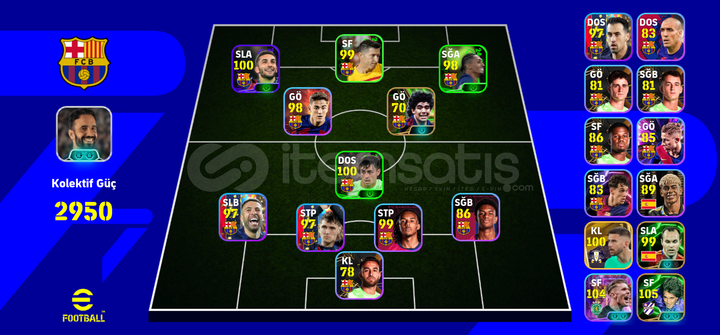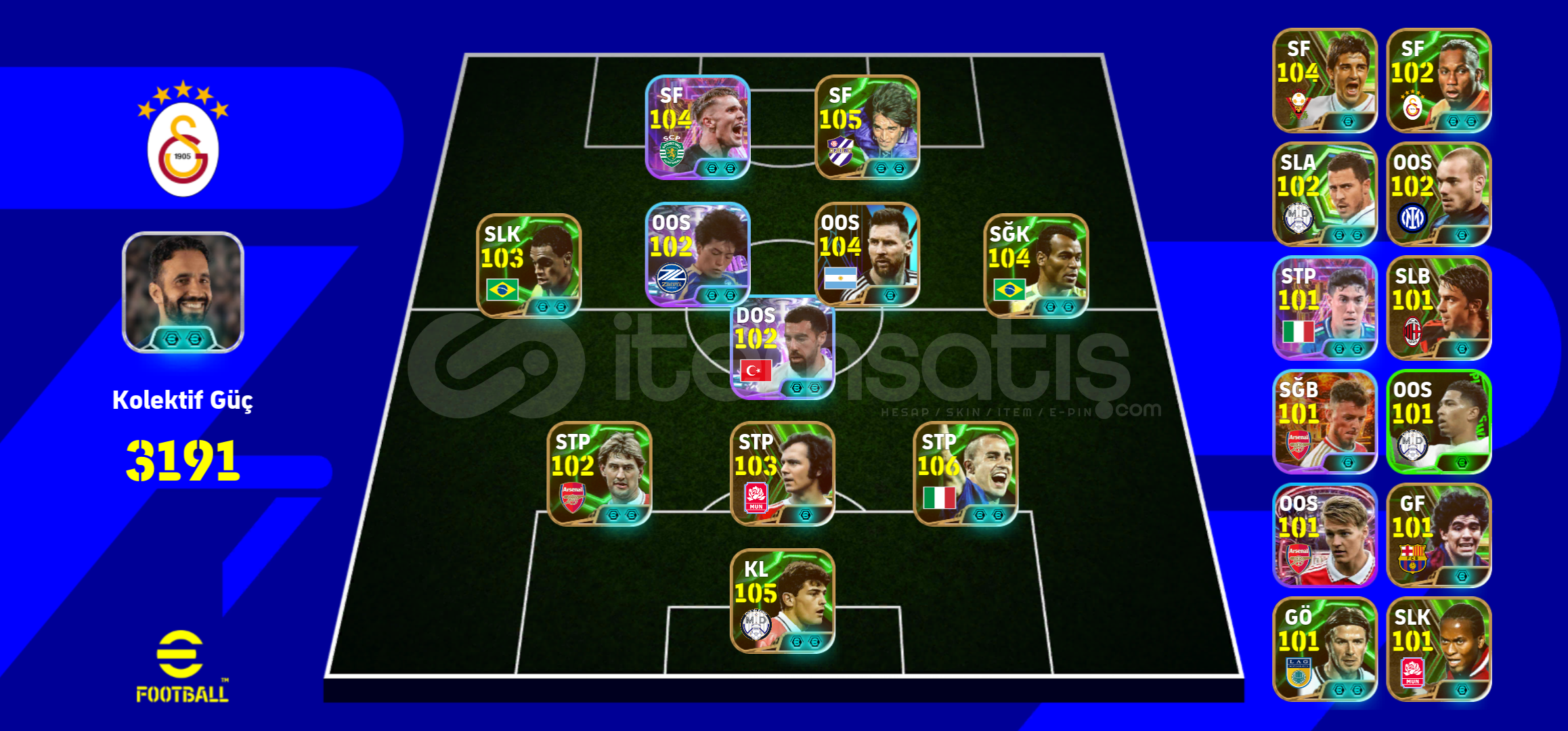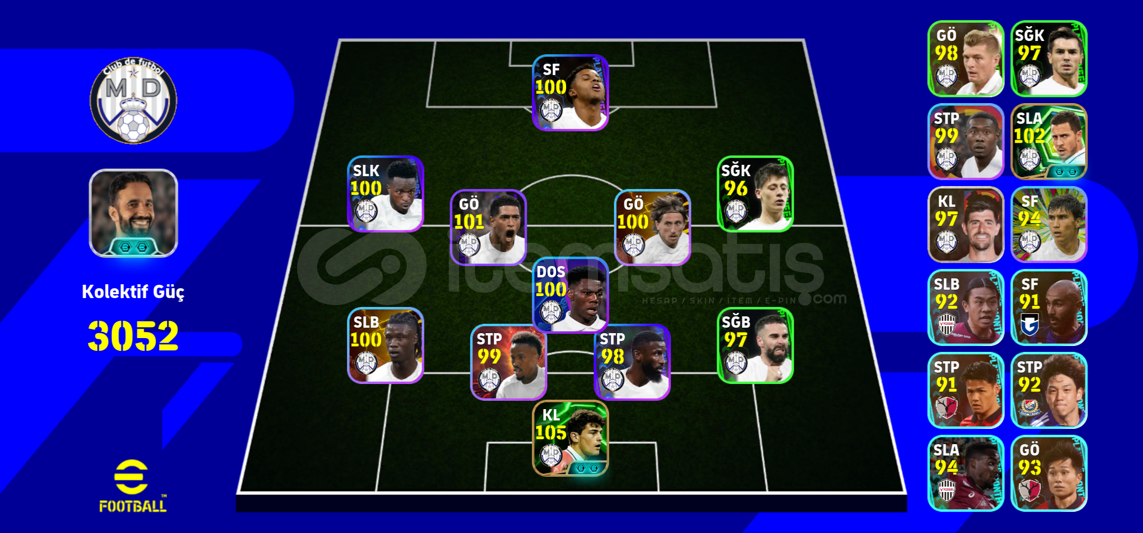 Herkese eğlenceli oyunlar dilerim arkadaşlar!🤗 Hesabım satılıktır!💸🔹️ 106- Fabio Cannavaro🔹️ 105- İker Casillas🔹️ 105- Gabriel Batistuta🔹️ 104- Viktor Gyökeres🔹️ 104- Cafu🔹️ 104- L. Messi🔹️ 103- Denilson🔹️ 102- Bombacı Yuki Soma🔹️ 102- Orkun Kökçü♦️ Real Madrid, Barcelona, ...