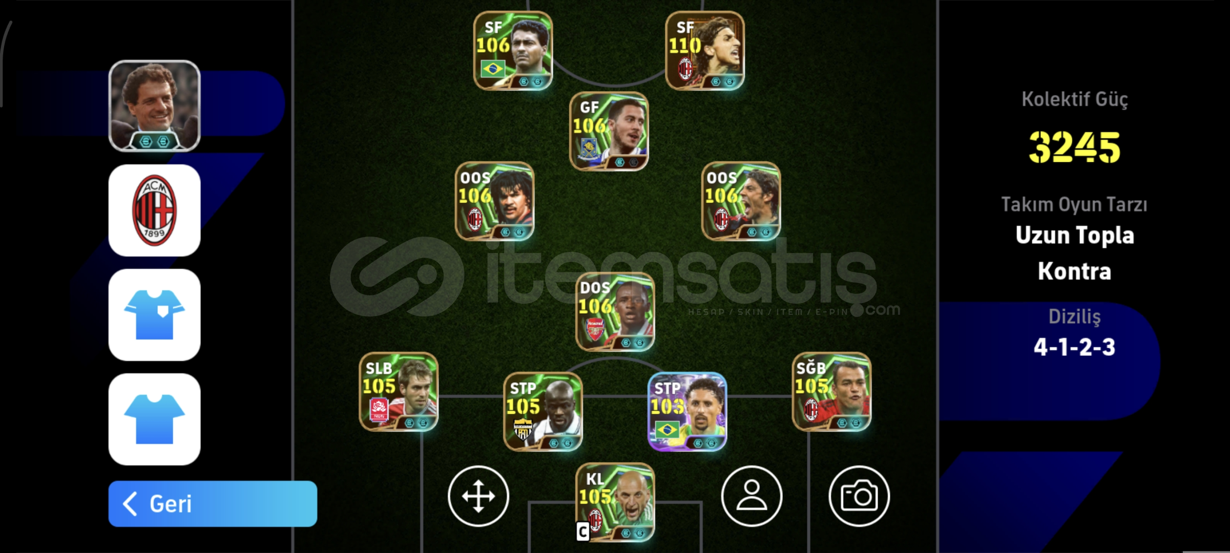 Tek bağ110 İbrahimoviç 107 gullit 106 hazard 106 Romario 106 viera 105 cafu104 oblak 103 Neymar 104 elbet 106 Rui Costa Kg 3250+ olur 104 Zanetti veya başkasının alınırsa rahat olur bide oyuncuları Max reyting e çıkartılırsa 3250'yi geçerBombacı Burak Yılmaz Diğer bombacı gol oldudan gelicek