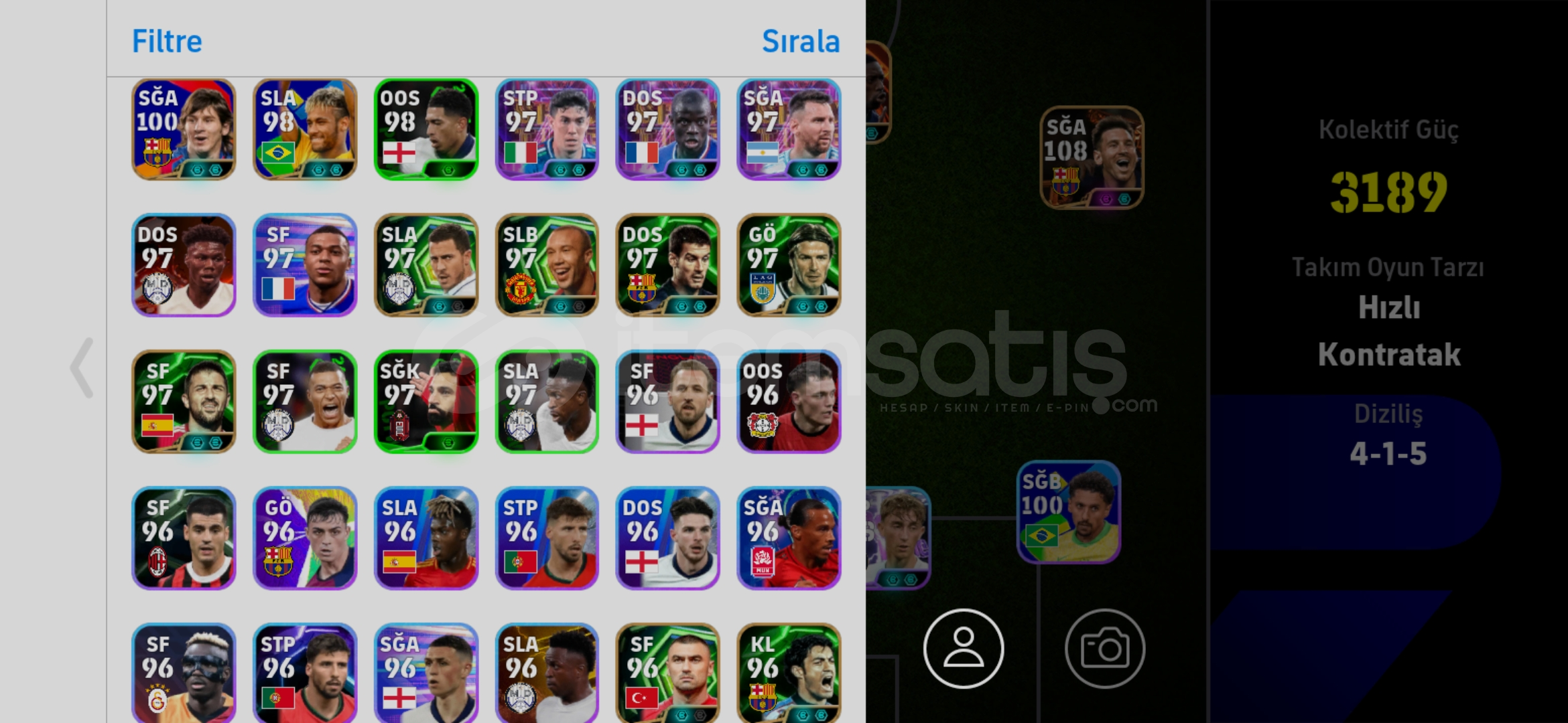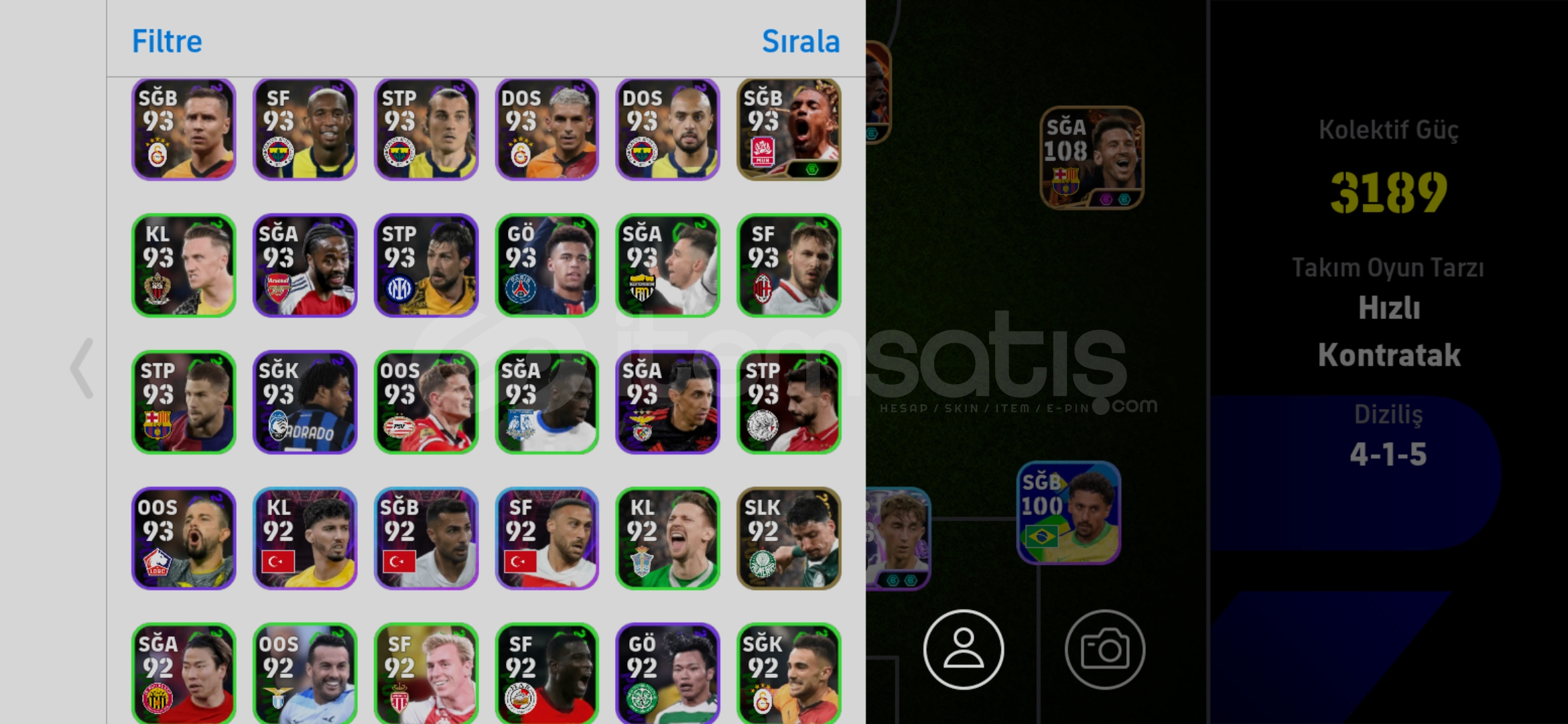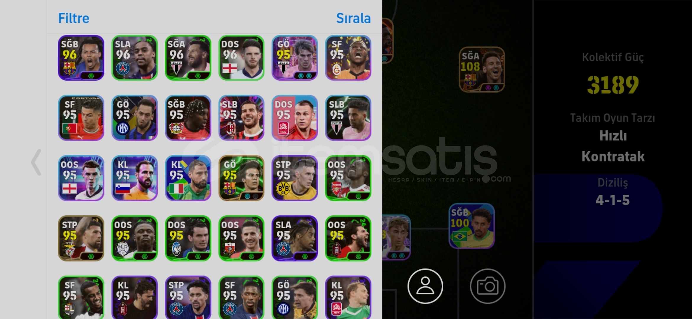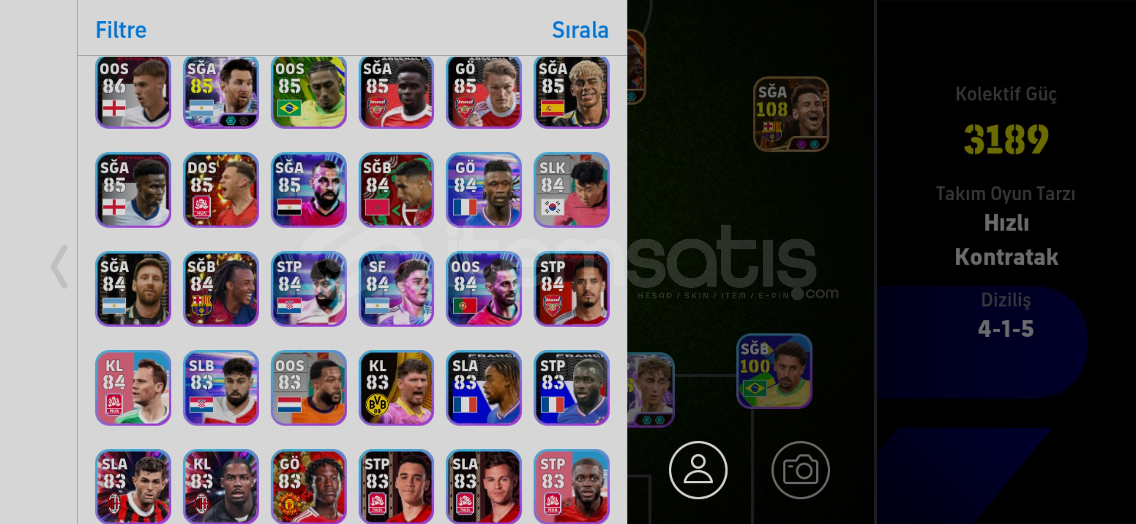 Messi Suarez Neymar Yamal Forlan Dembele Gyökeres makelele Serginho Livakovic daha birsürü epic show time dolu hesap.Tek Bağ konami id.4 tane paralı tdBu fiyata bulunmaz.