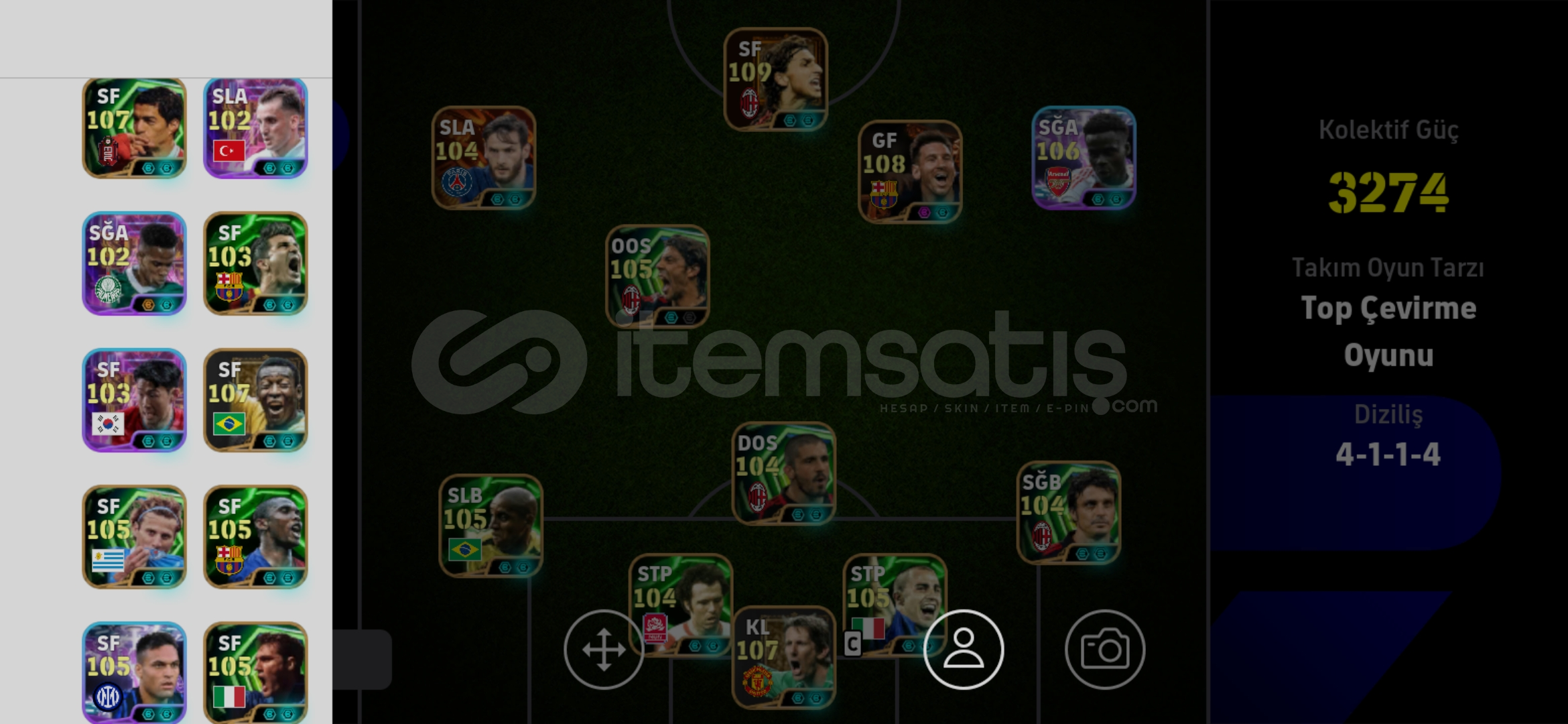 Hesabım kolektif gücü 3280 oluyor 11 bombacı var. Hesapta 110 Zlatan var Messi Ronaldo Pele suarez vs. Mükemmel bir hesap td ...