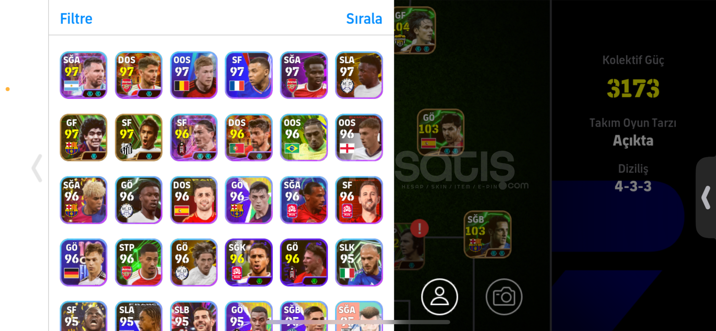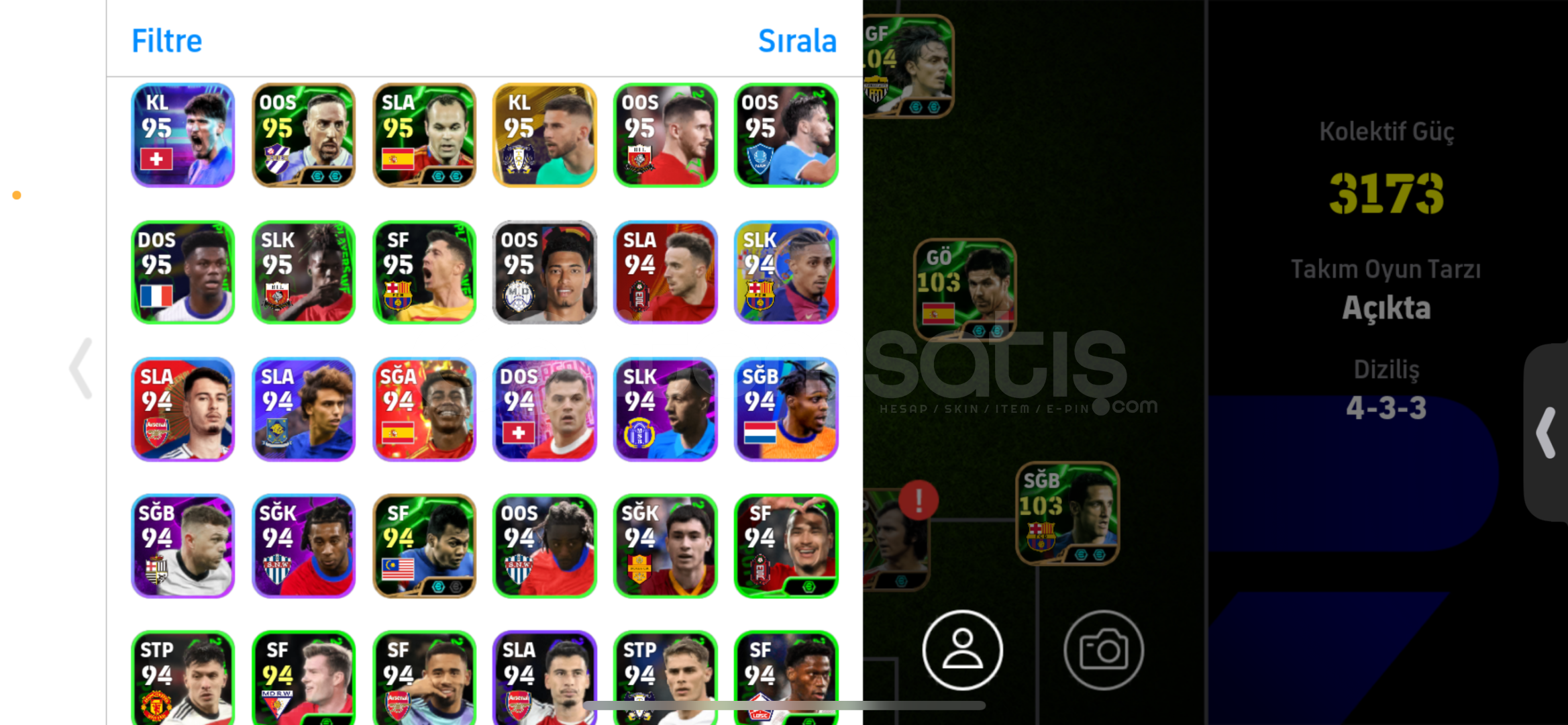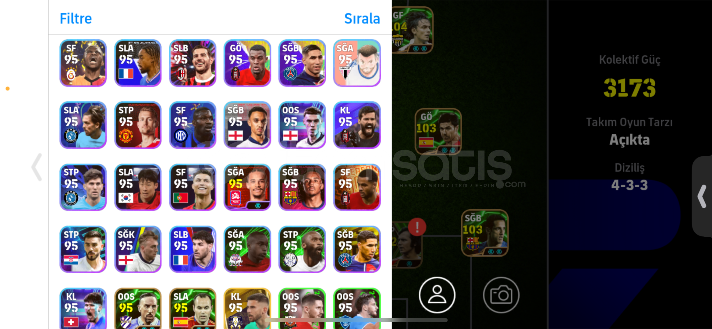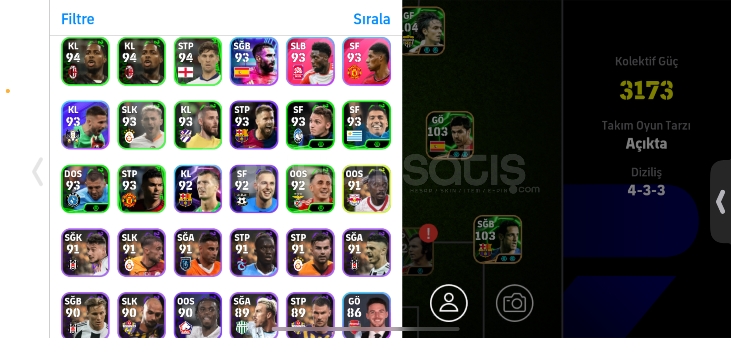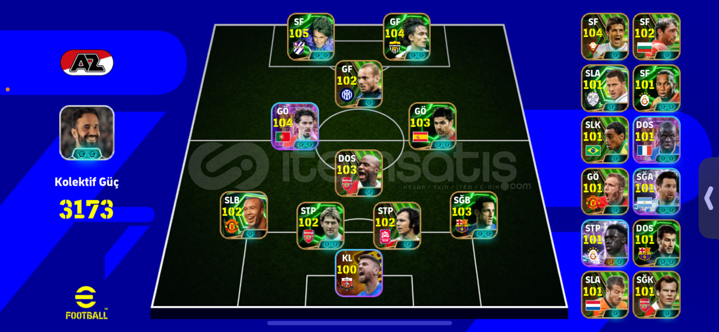 Mükemmel hesap 104 vitinha 105 batistuta 104 David villa 104 inzagi 103 xabi Alonso 103 baletti 103 makelele vb birsürü oyuncu kadro rezervleri mükemmel hesap