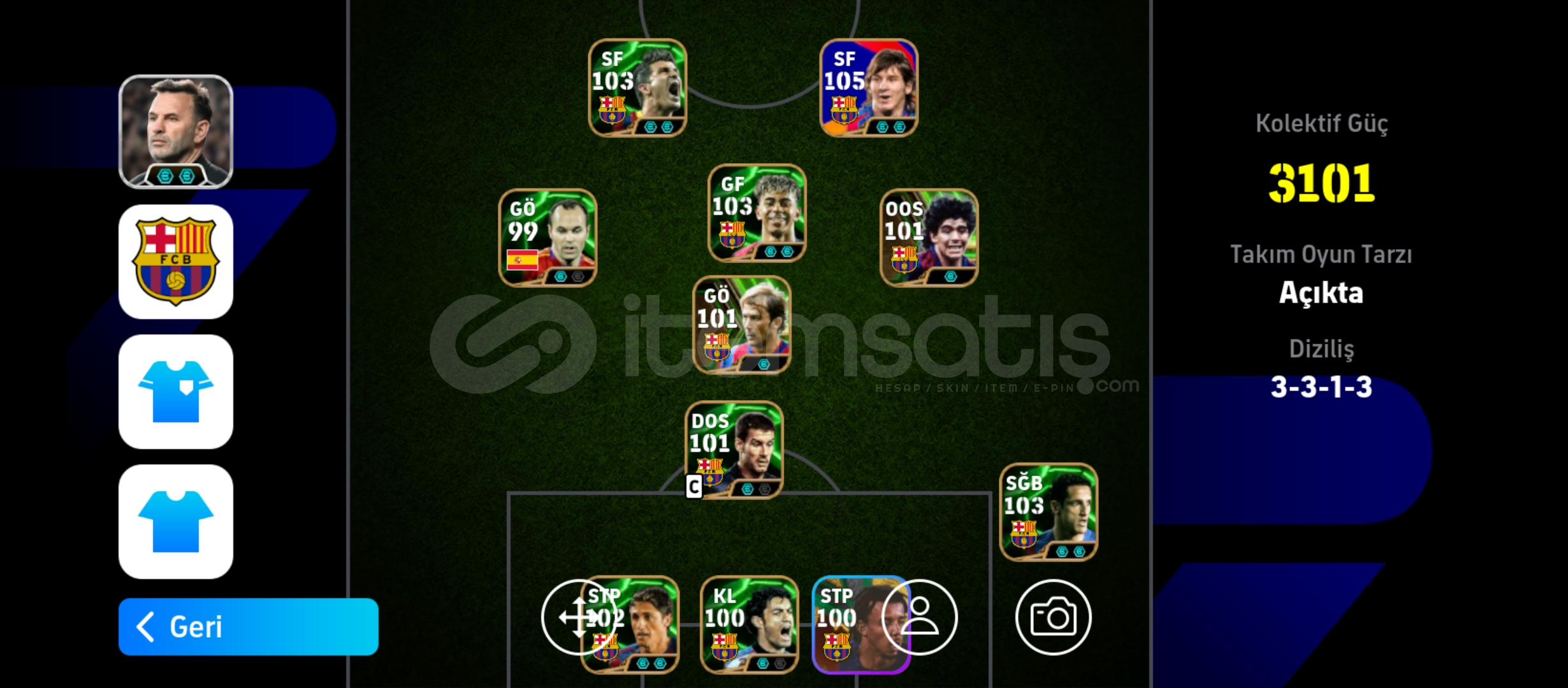 TEK BAĞ ANDROİDDE 1K MC VAR FIRSAT HESABI MUKEMMEL İLK 11 MAX KG DEGİLDİR OYUNCULAR OZEL BASIMDIR 2 BOMBACI BJK VE BARCA TAKIMLARI VARDIR