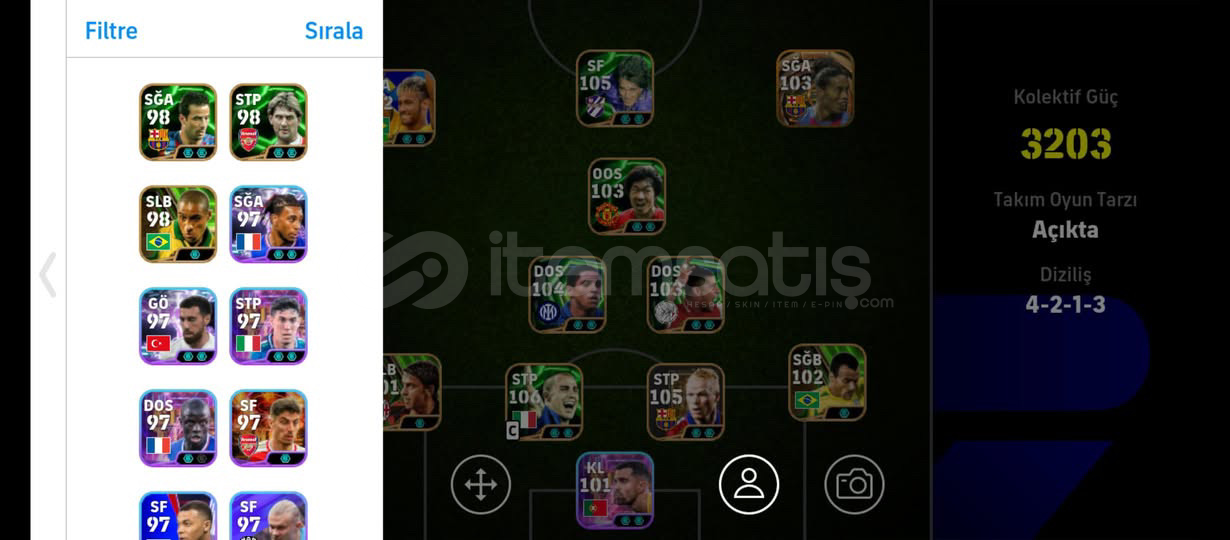 104 messi paket 103 neymar paket 104 roberto carlos 105 stoper özel dolu hesap dolu
