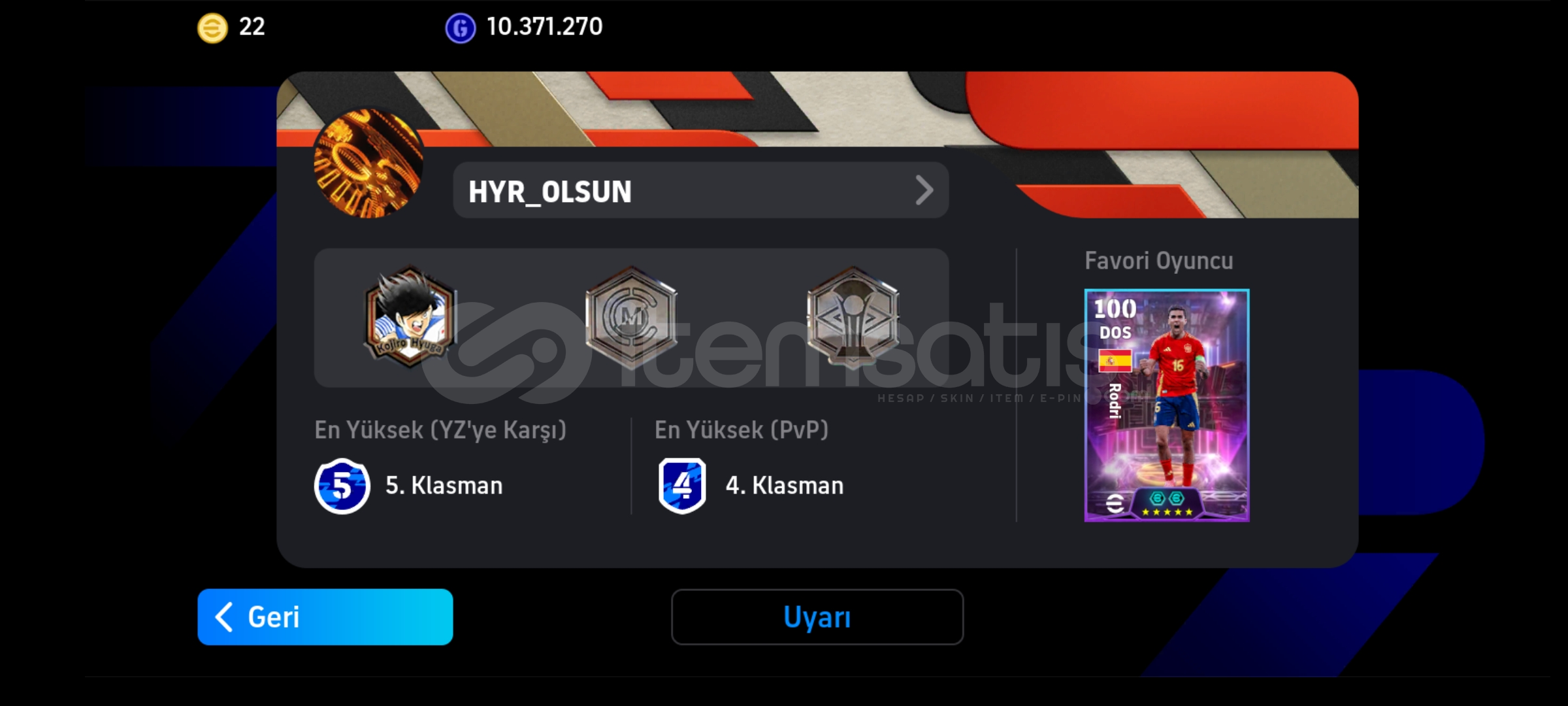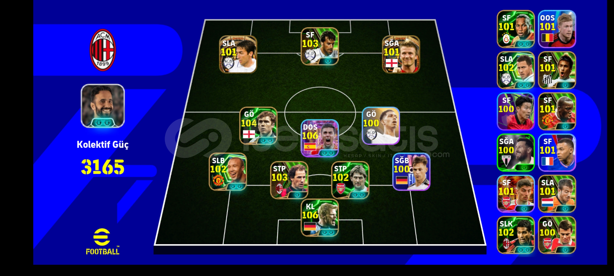 Mükemmel bir hesab hesabta 104 schols, 103 baresi, 106 Kahn, 106 rodri hesabta eski kartlar da var 2 tane paralı oyuncu 103 forvet tek bağ bu hesab kaçmaz derim hesabın rezervleri de baya iyi 3170 kg