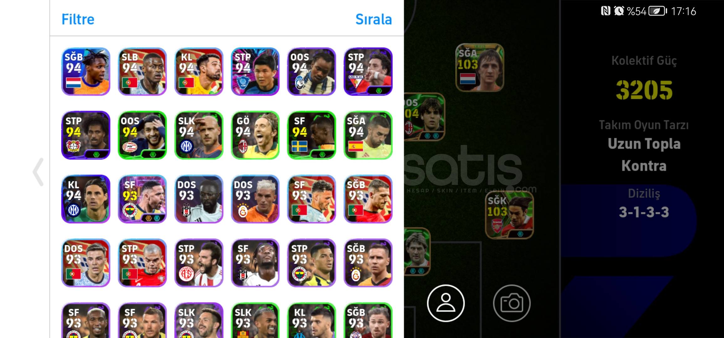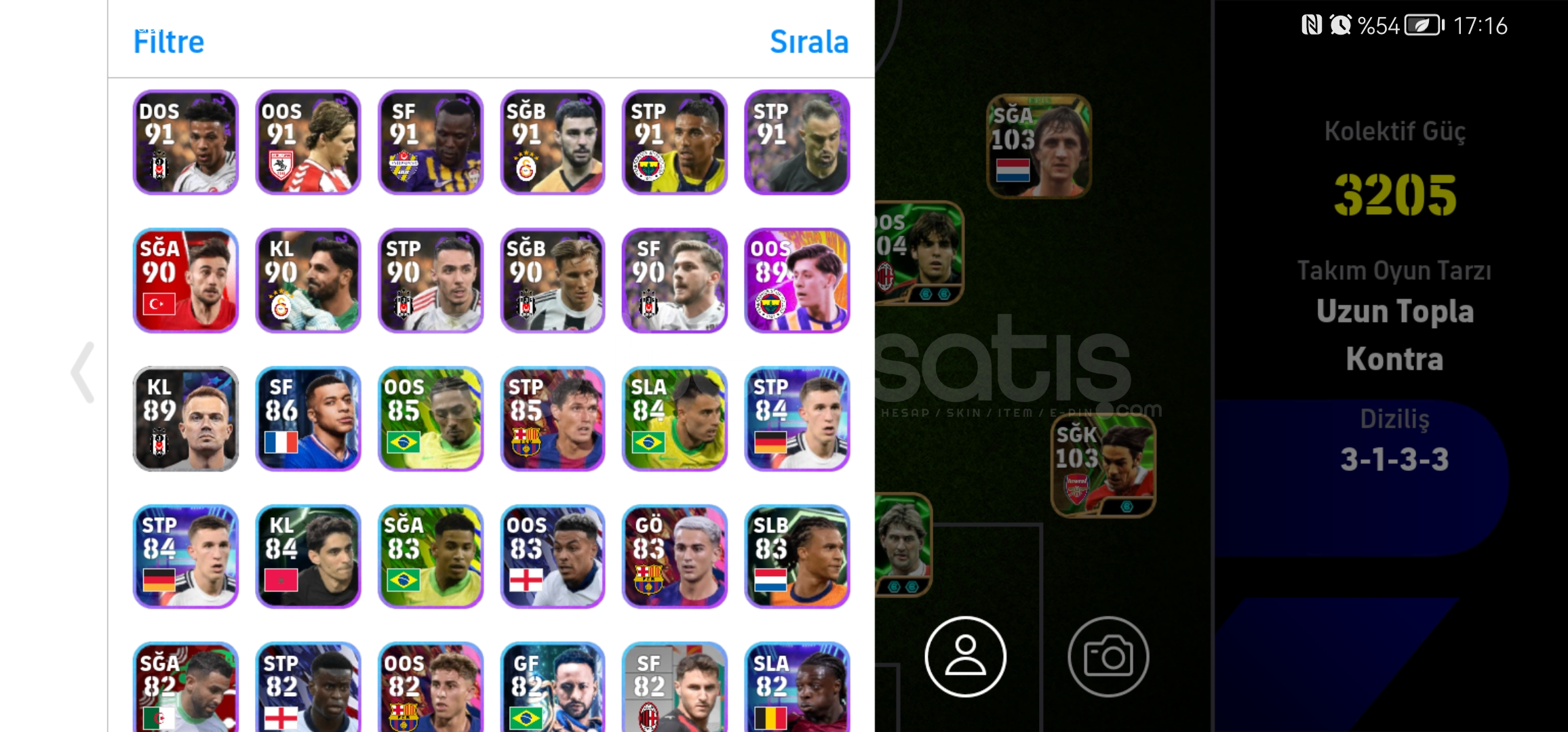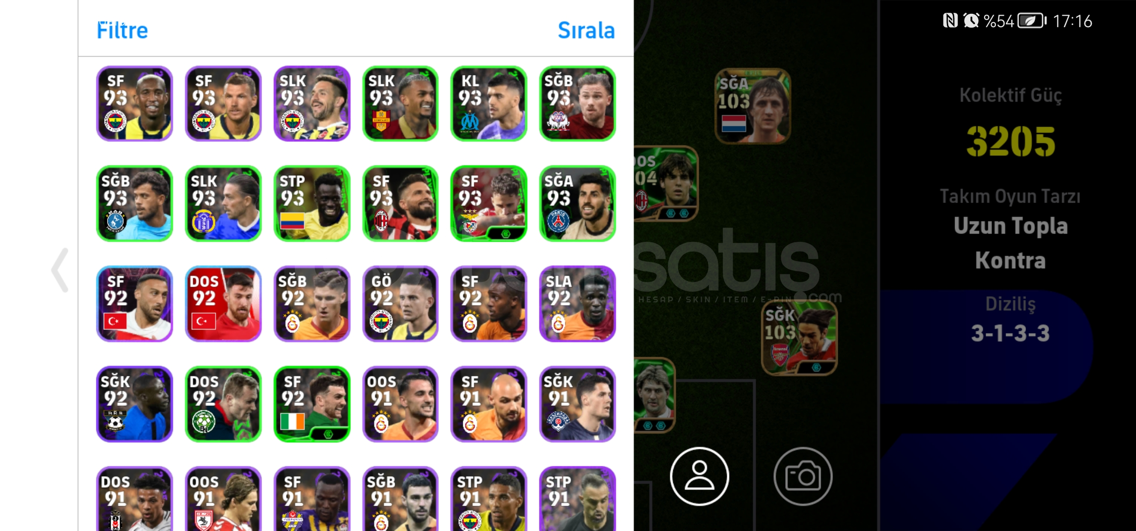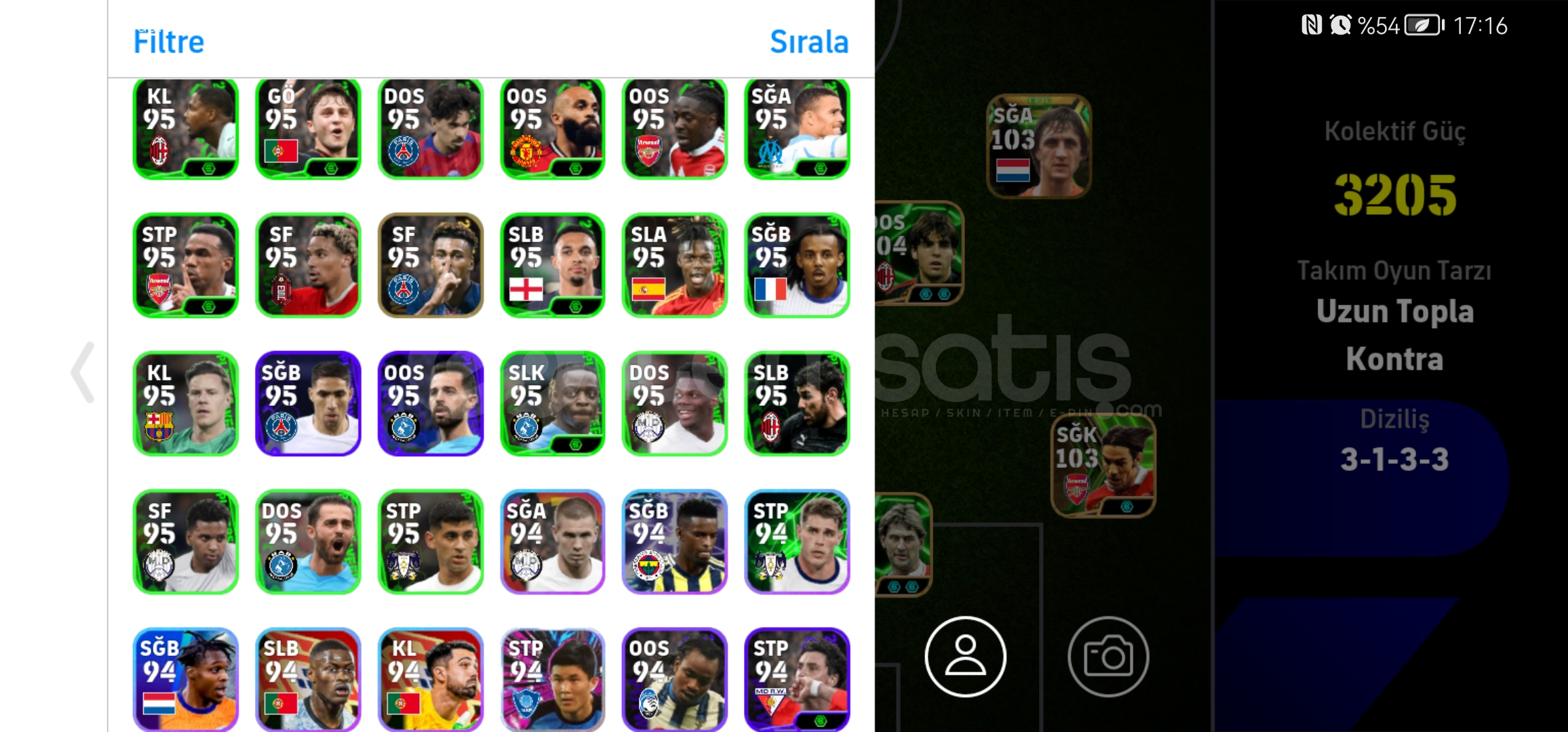 107 donnarumma105 cucurella105 vini2 tane 103 osimhen104 kaka104 piero101 rafa,nesyri,nwakaemeVe DAHA FAZLASI...MÜTHİŞ ÜST DÜZEY REZERV