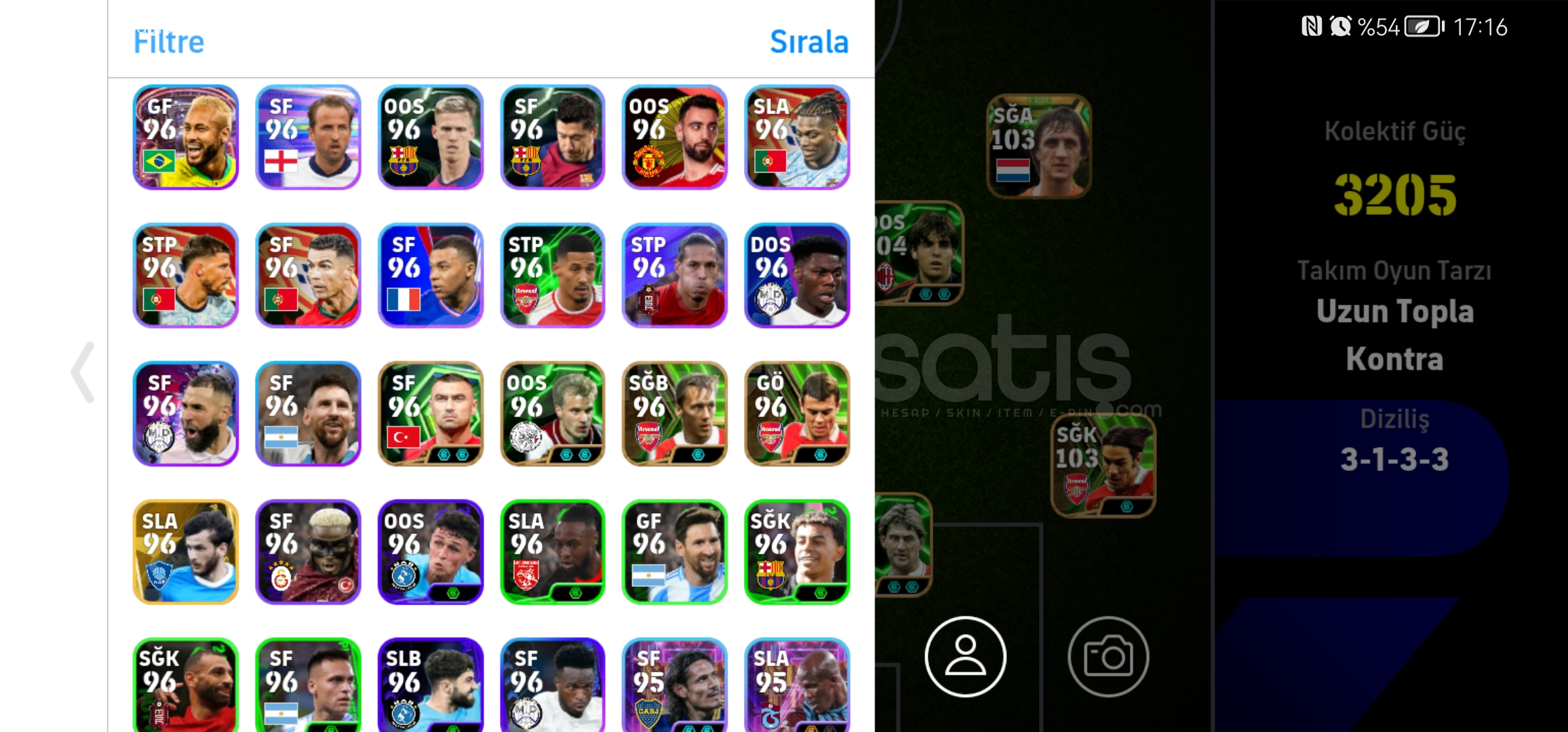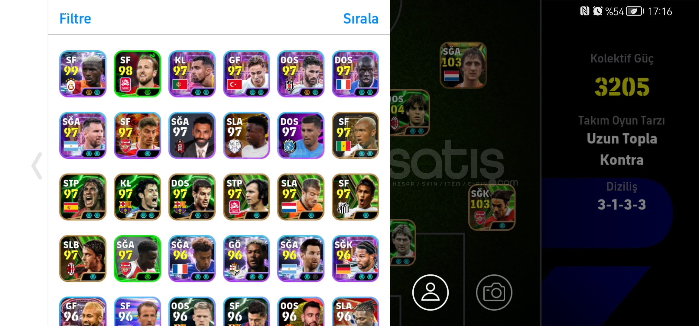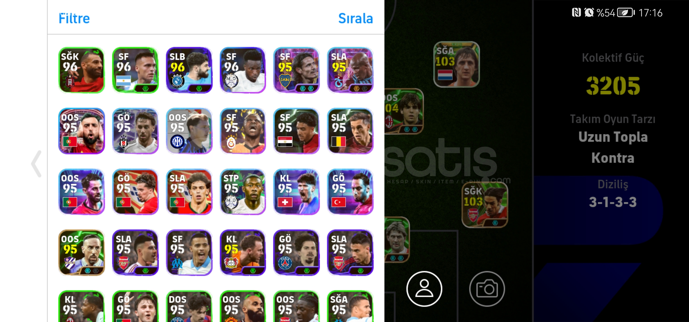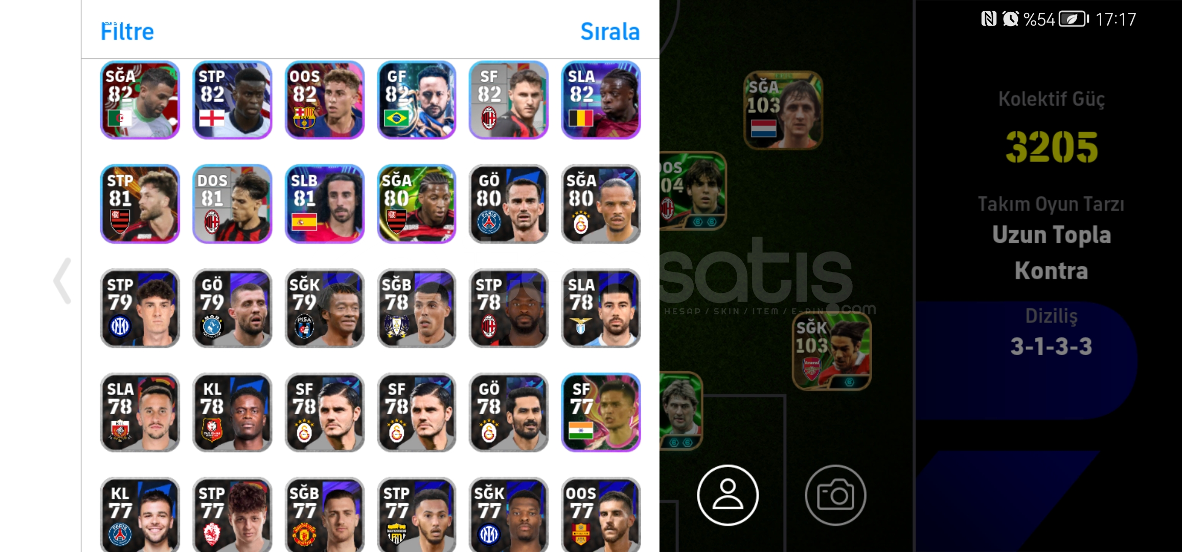 107 donnarumma105 cucurella105 vini2 tane 103 osimhen104 kaka104 piero101 rafa,nesyri,nwakaemeVe DAHA FAZLASI...MÜTHİŞ ÜST DÜZEY REZERV