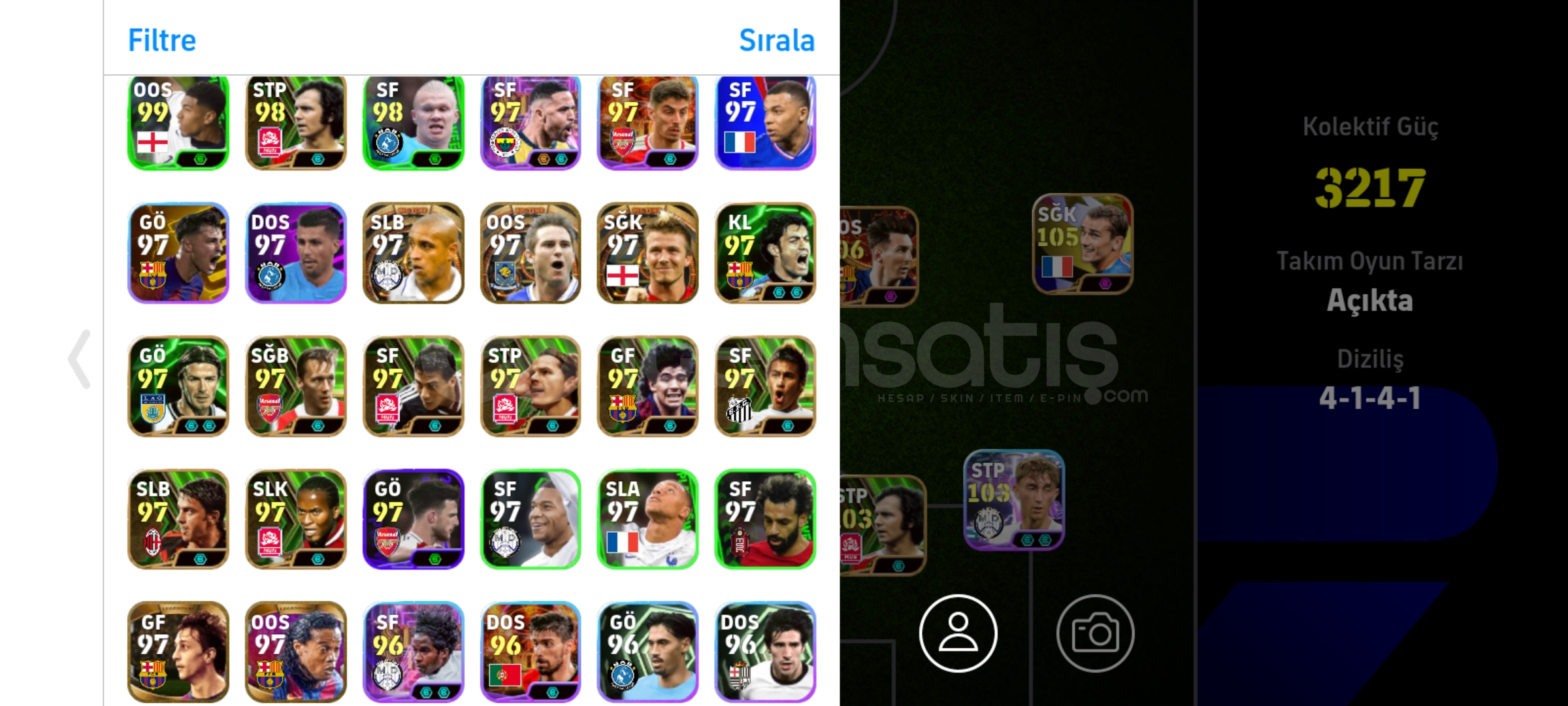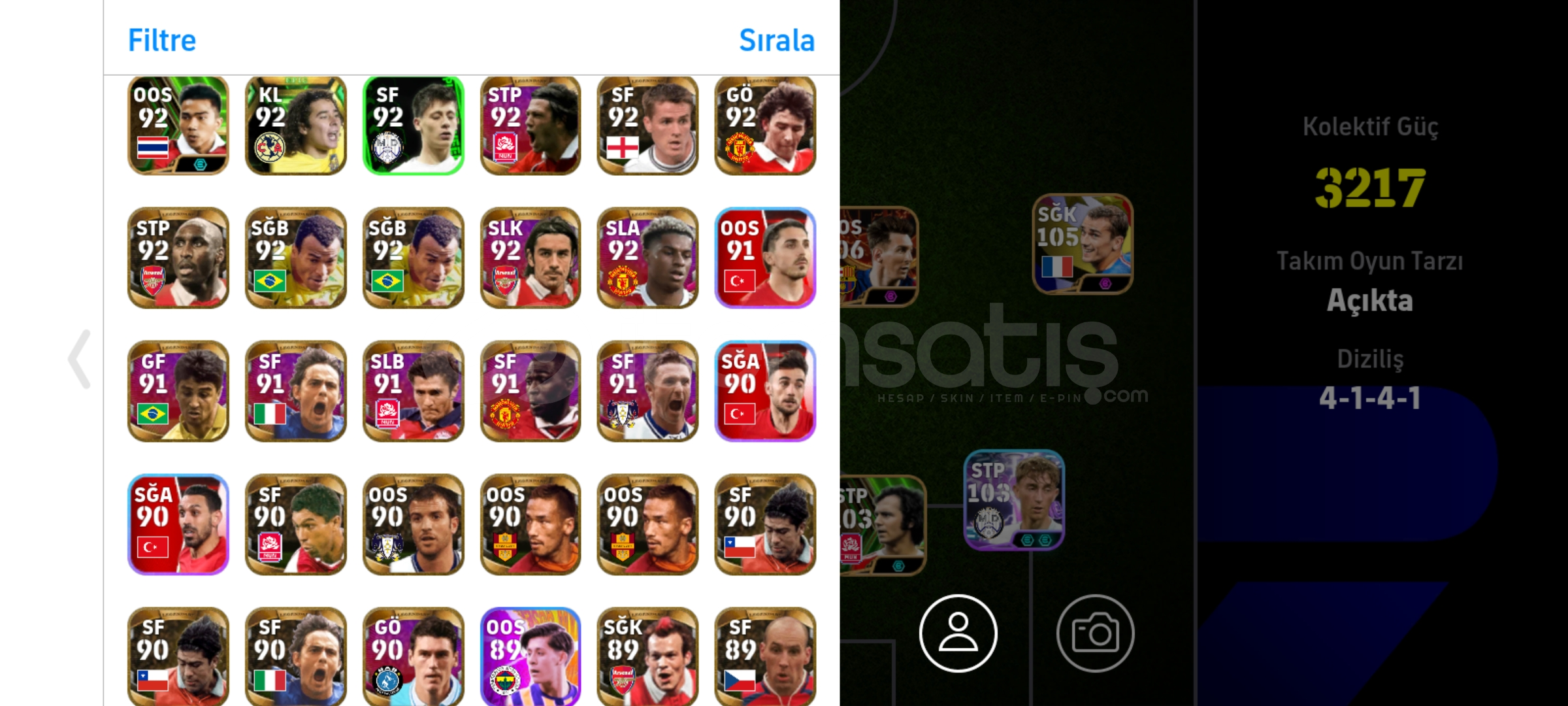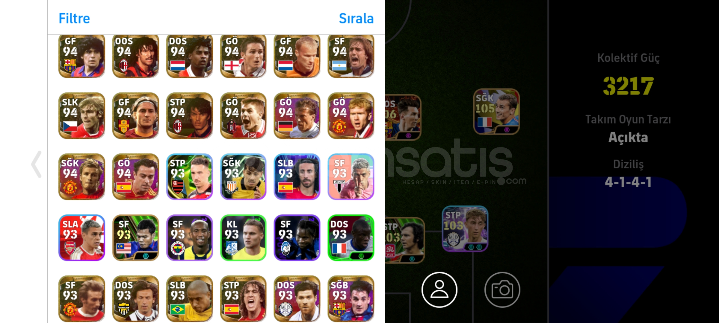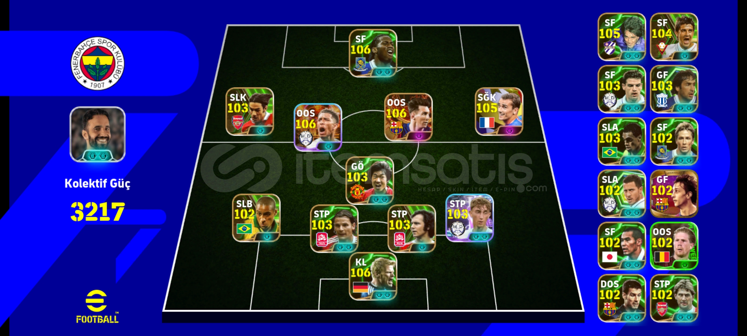 Max kg 3217106 Messi106 bellingham106 Drogba 105 griezman Tek bağ, eksi MC yok temiz hesapPes zamanı eski kartlar ve nadir kartlar vardır İndirim az da olsa yapılır.