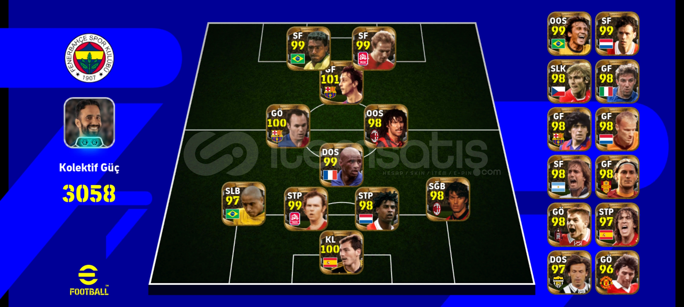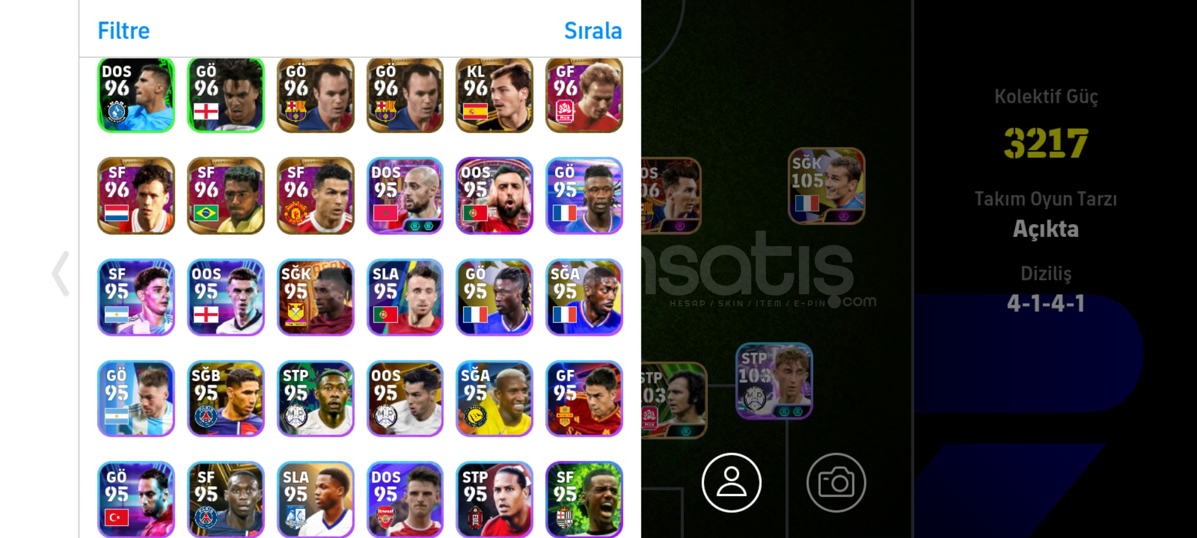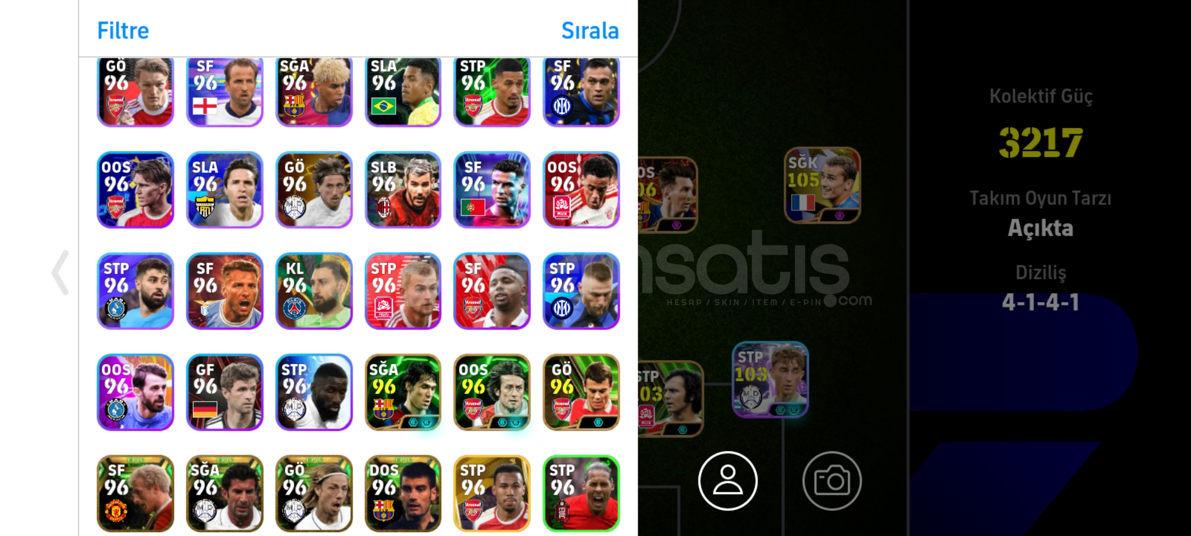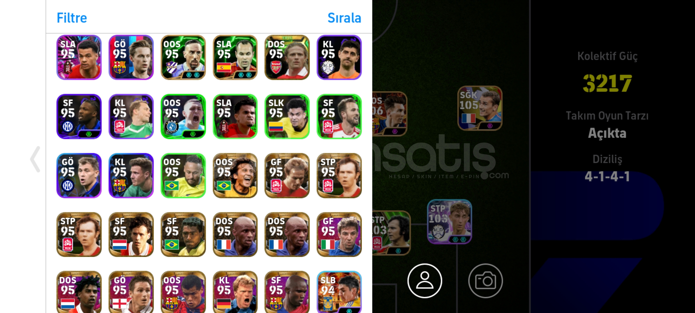 Max kg 3217106 Messi106 bellingham106 Drogba 105 griezman Tek bağ, eksi MC yok temiz hesapPes zamanı eski kartlar ve nadir kartlar vardır İndirim az da olsa yapılır.