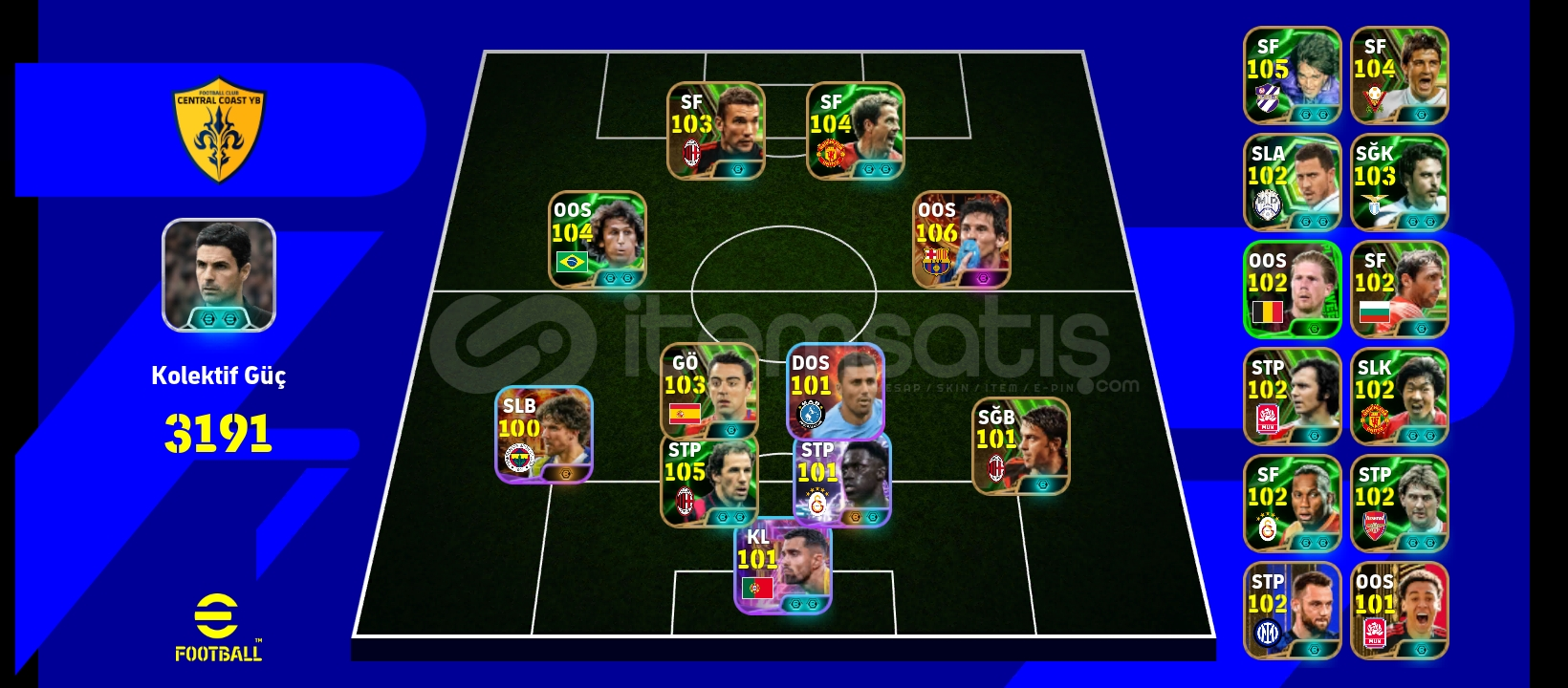 105 zico 106 Messi 103 shevcenko 104 Michael owen Çift bağ ama ölü giris yapma imkansız Bol epicli