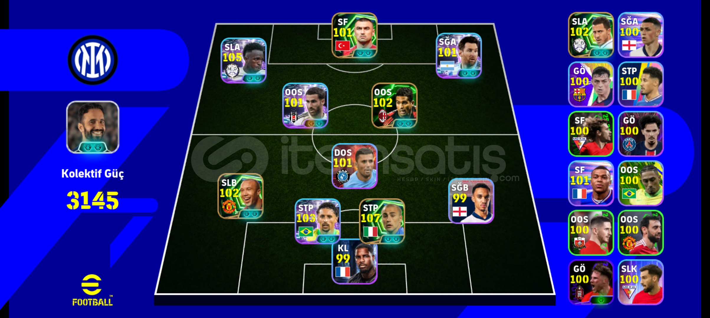 105 vinicius Jr 107 cannavaro 101 rafa silval bombacı Burak yilmaz vardır hesapta 600mc vardır hesap 2 bağlıdır