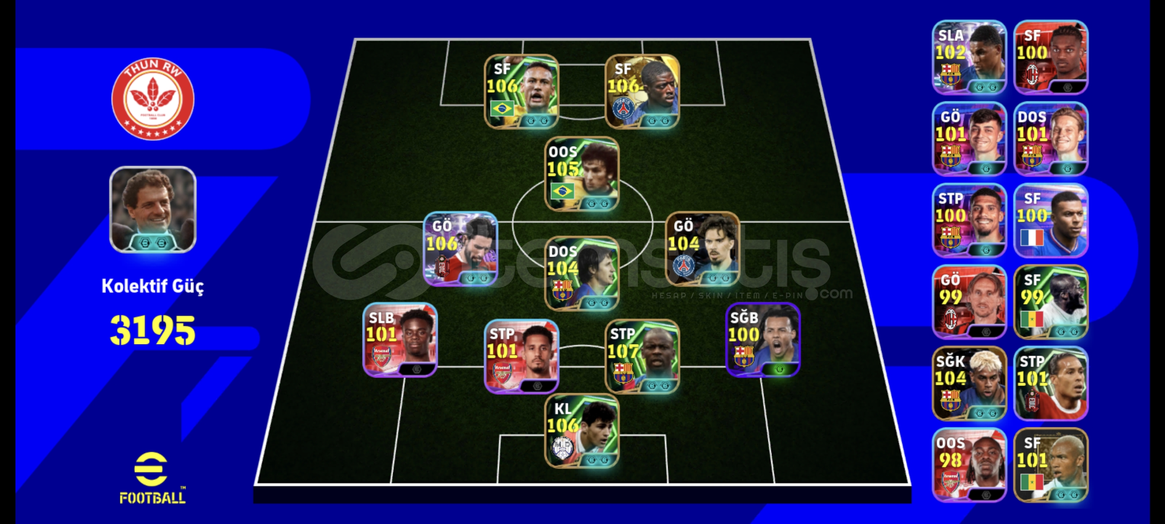 106 Neymar 106 dembele 106 szobozslai 108 thuram 105 vitinha 105 zico 106 yamal 106 casillas