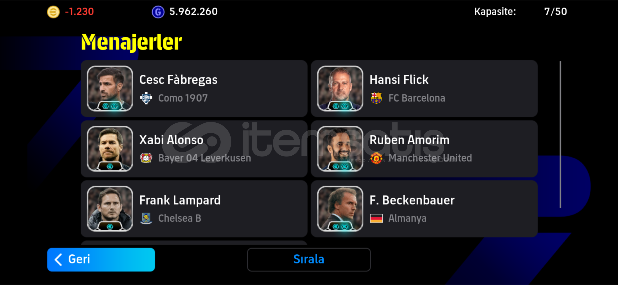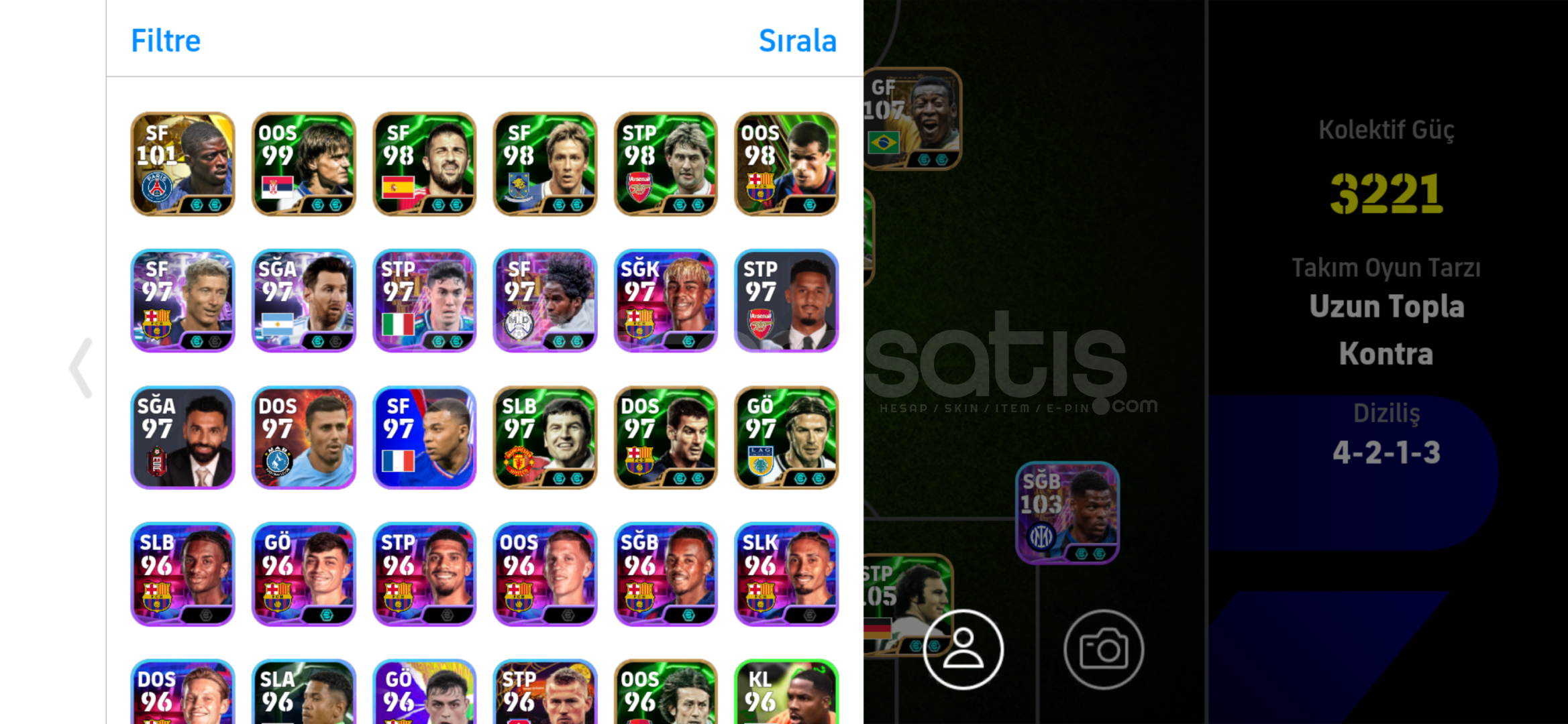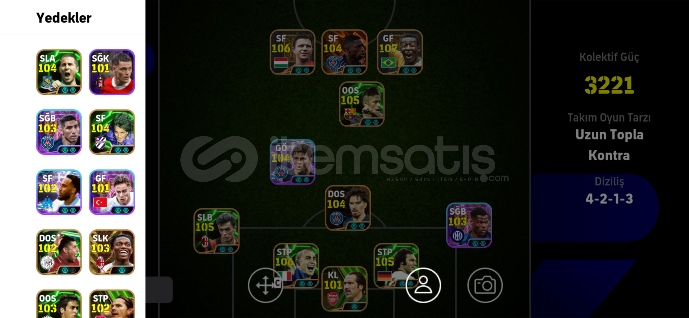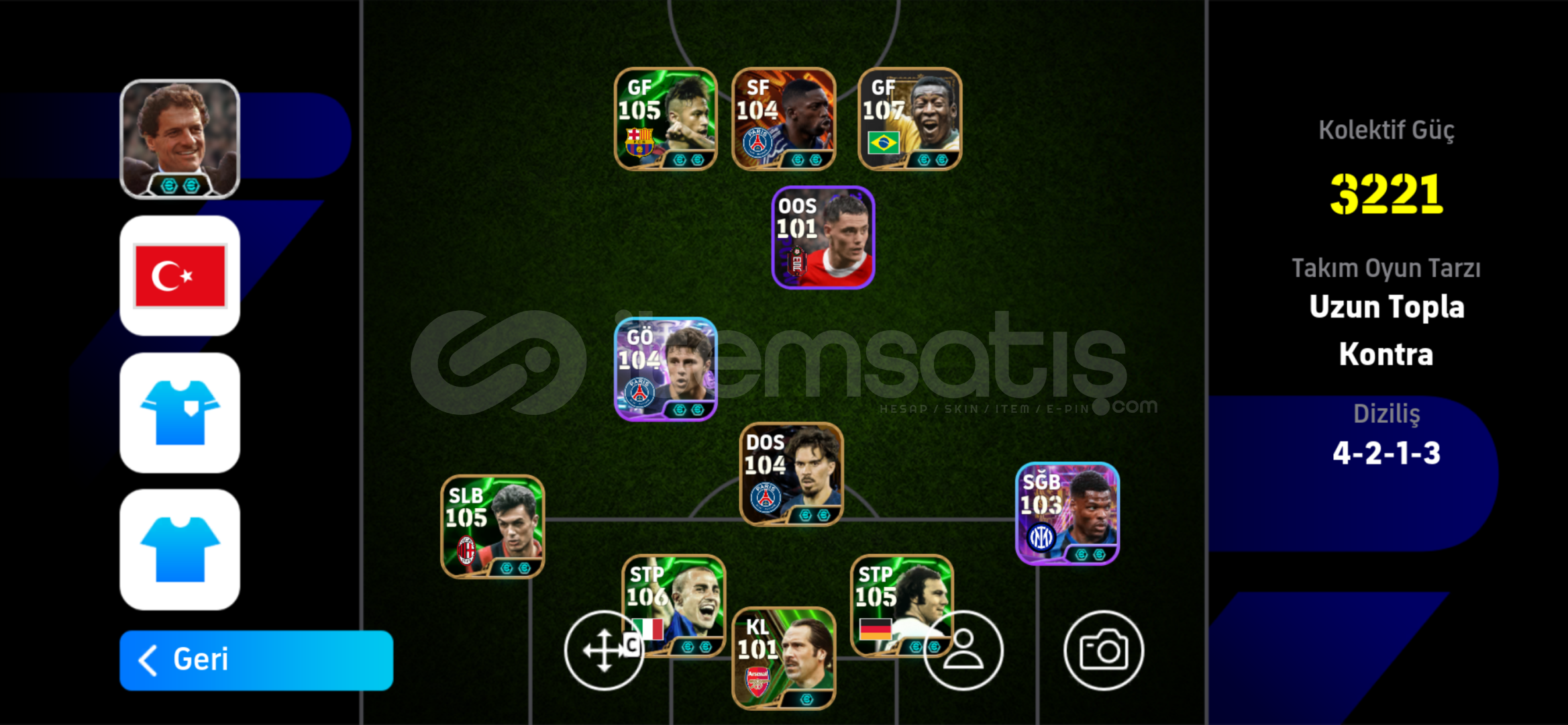 tek bağ tek sıkıntısı -1200 mc 108 pele 106 puskas 106 balondor dembele 104 show time dembele 105 neymar 104 leo 105 maldini 103 hakimi 103 dumfris 105 backambavur 104 joa neves 104 vitinha 104 hazard ve bol menejerli hesap dediğim gibi tek sıkıntı - mc