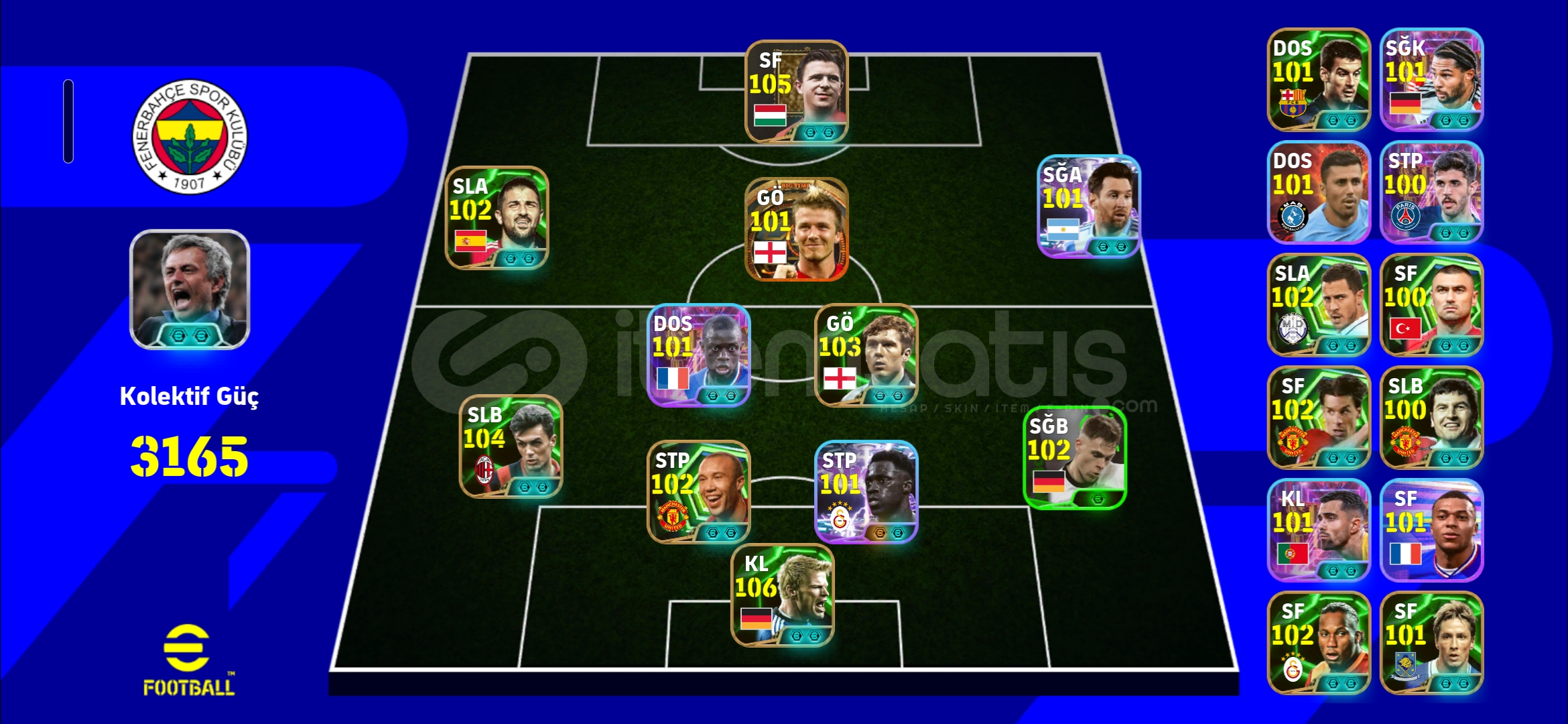 -106 Kahn. -102 Sılvestre-105 Puskas. -101 Kante-104 Maldını. -101 Beckham-103 Scholes. -102 Ruud Van Nisterloy-102 Fernando Torres. -102 Davıd Vılla -102 Drogba. -Bombacı Burak JOSE MOURİNHO///XABI ALONSOPAZARLIK VAR