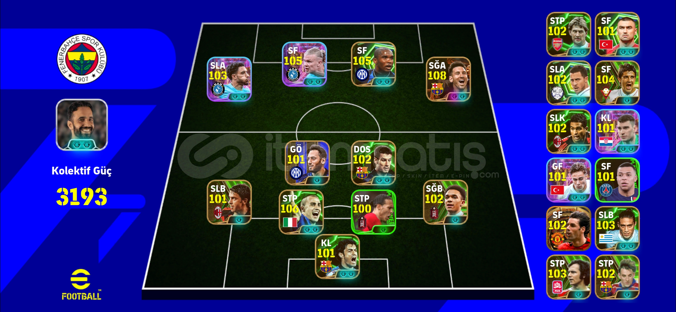 108 messi BOMBACI101. Burak Yılmaz BOMBACI106 haaland103 marmorush105 eto106 canavarı101 Kenan yıldız101 pep guardilo