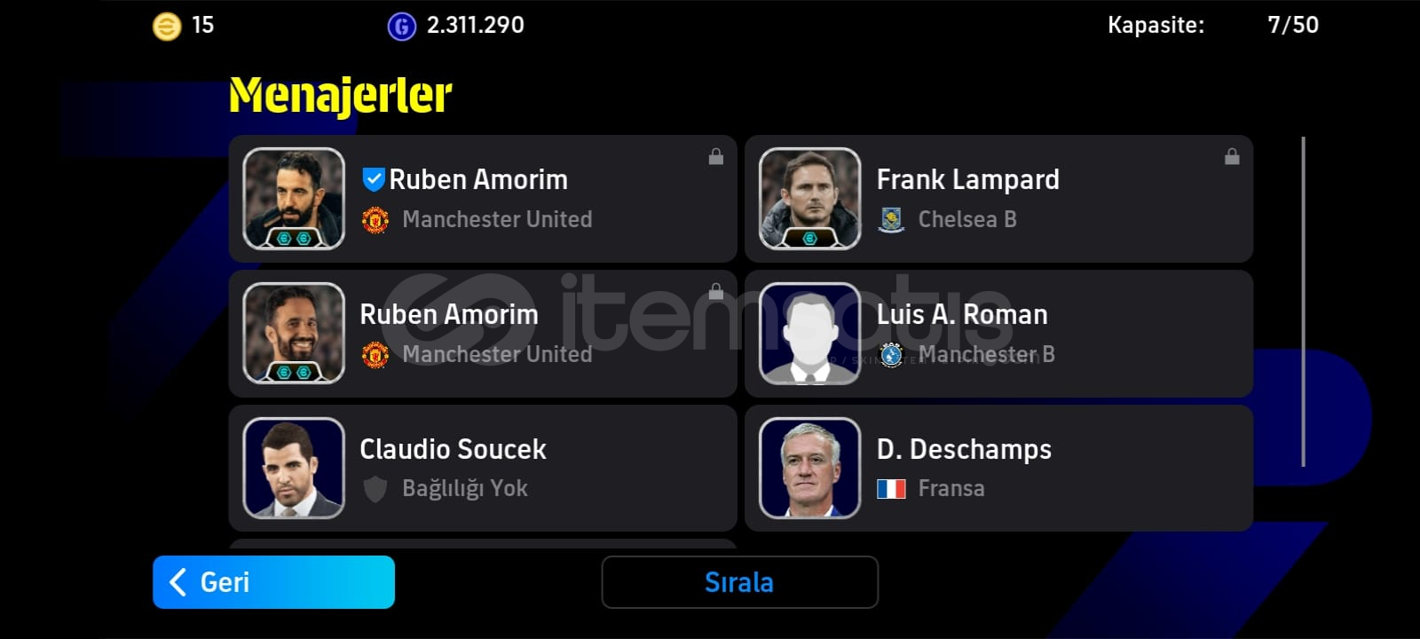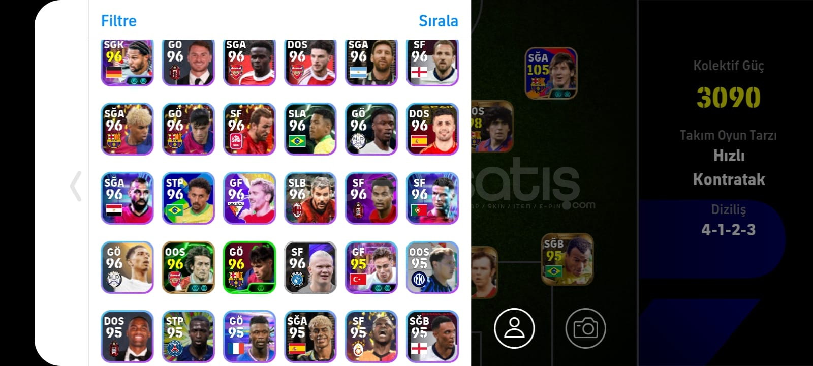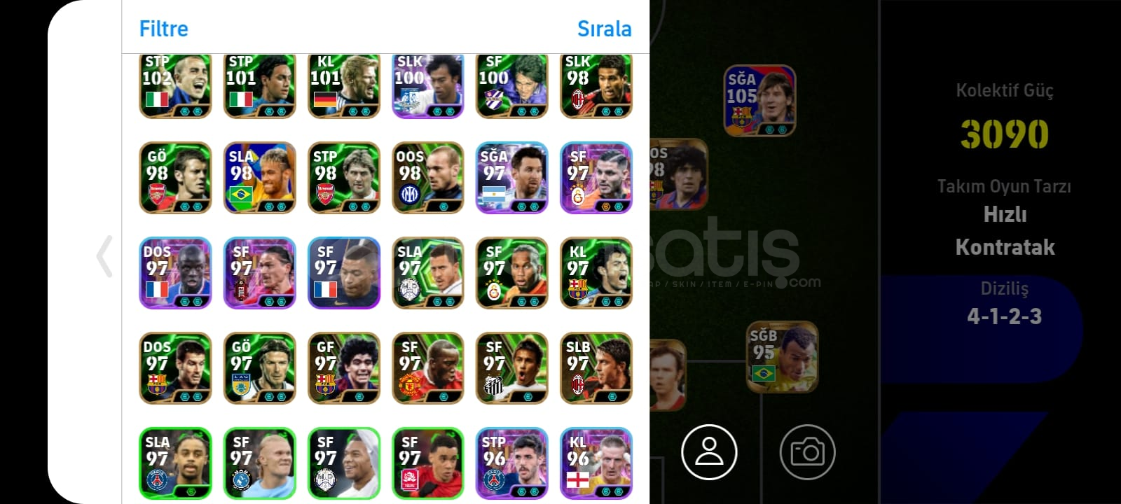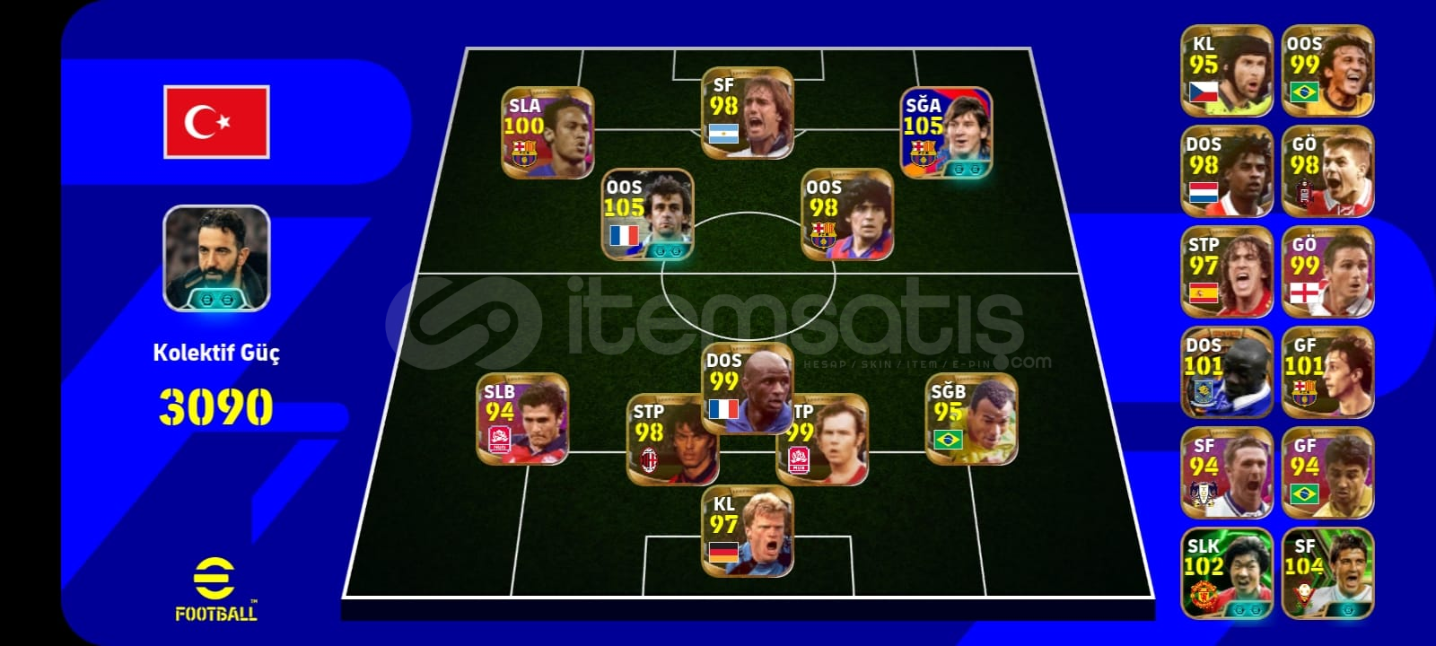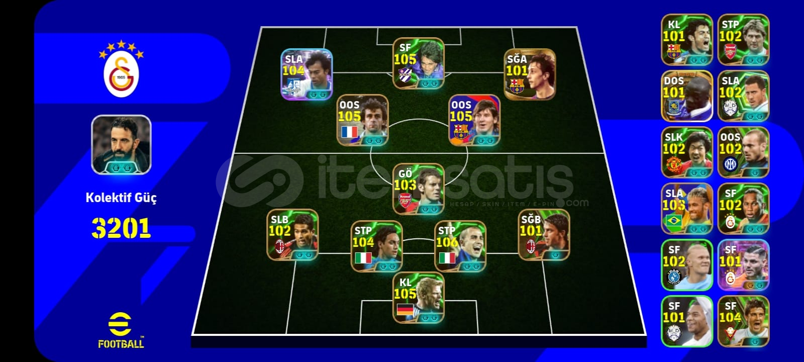 HESAP KENDİMİNDİR 2. BİR HESAP AÇTIĞIM İÇİN ONUNLA OYNUYORUM.HESAPTA ; Ruben Amorim, Frank Lampard, 105 Lionel Messi, 105 Michel Platini, 104 Kaoru Mitoma, 104 Alessandro Nesta , 103 Neymar, 103 Jack Wilshere, var ayrı olarak eski epic Johan Cruyff, Neymar, Zico, Franz Beckenbauer, Patrick Vieira, Frank Lampard, Diego Maradona, Frank Rijkaard, Gabriel Batistuta, Oliver Kahn, Paolo Maldini, Steven Gerrard, Carles Puyol, Cafu, Petr Cech, Bebeto...