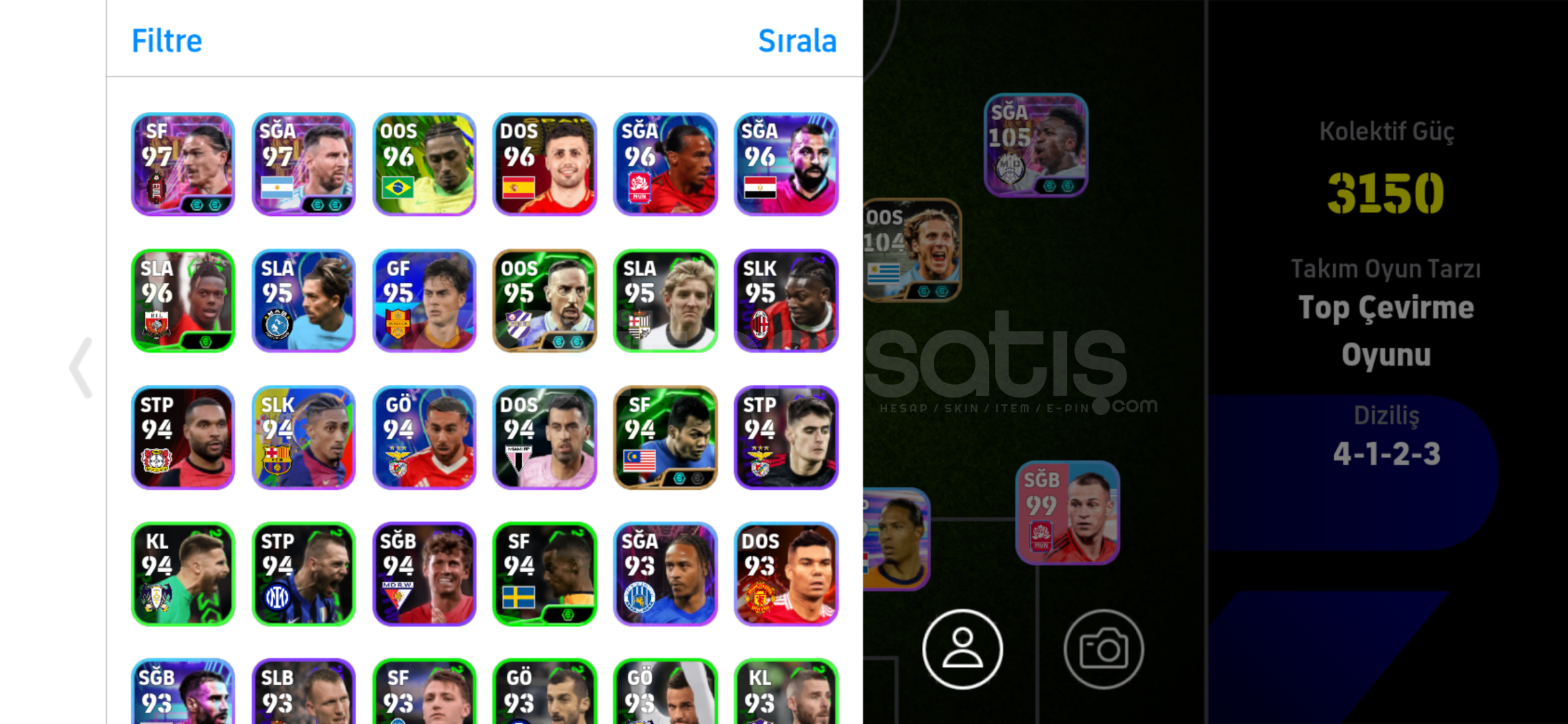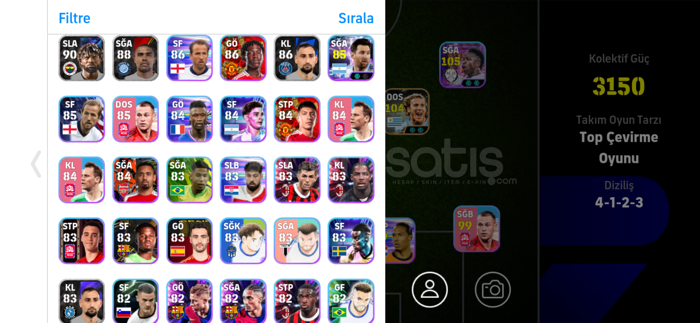 108 bombacı messi 105 neymar 105 vini.jr 105 forlan gibi güzel oyuncular vardır indirim yapılır(tek bağdır)