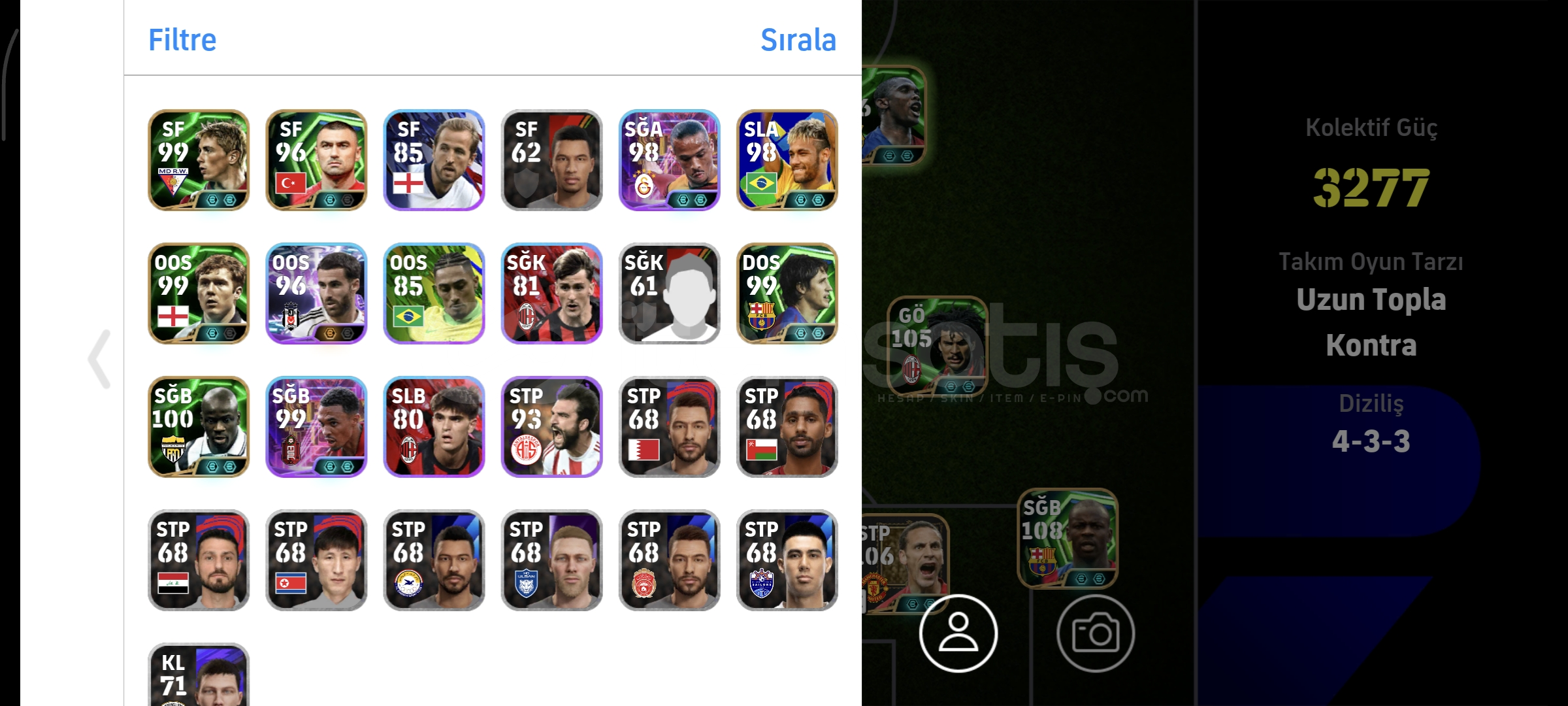 Pes e footboll hesabı tek bağ bombacili Show time epik karışık güzel bir hesap 2277 kg