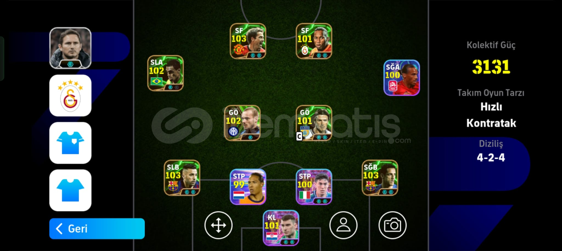 Pes 2 sneıjder Drogba Jordi Alba Beletti Baya dolu hesap fotoğraflarda gözüktüğü gibi alana şimdiden h.o
