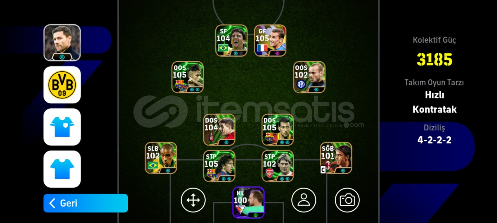 PES HESABI 105 PUYOL 104 GERRARD ESKİ MESSİ VARDIR