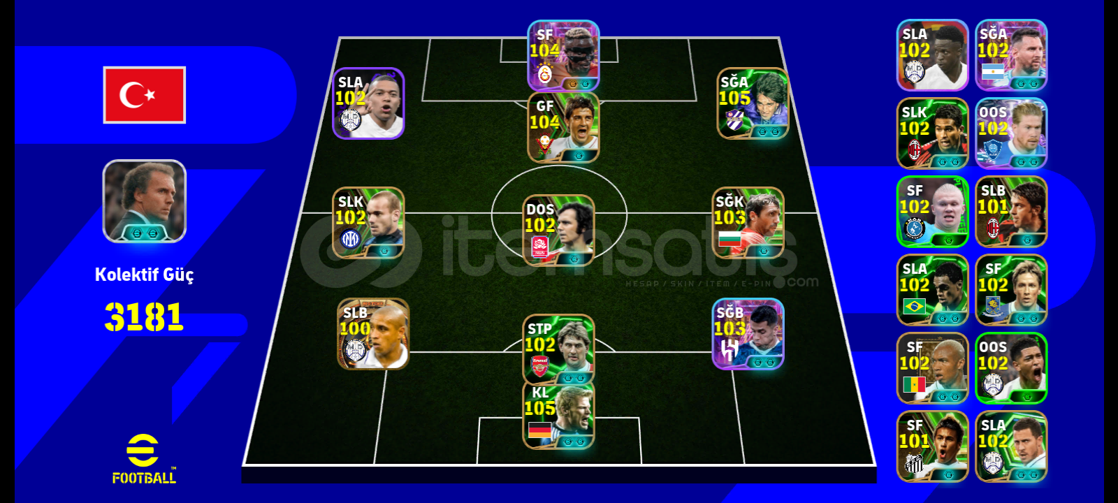 Hesabın içinde 378 Futbolcu 14 Menajer 16 forma 1.463.370GP 1.162MC vardır