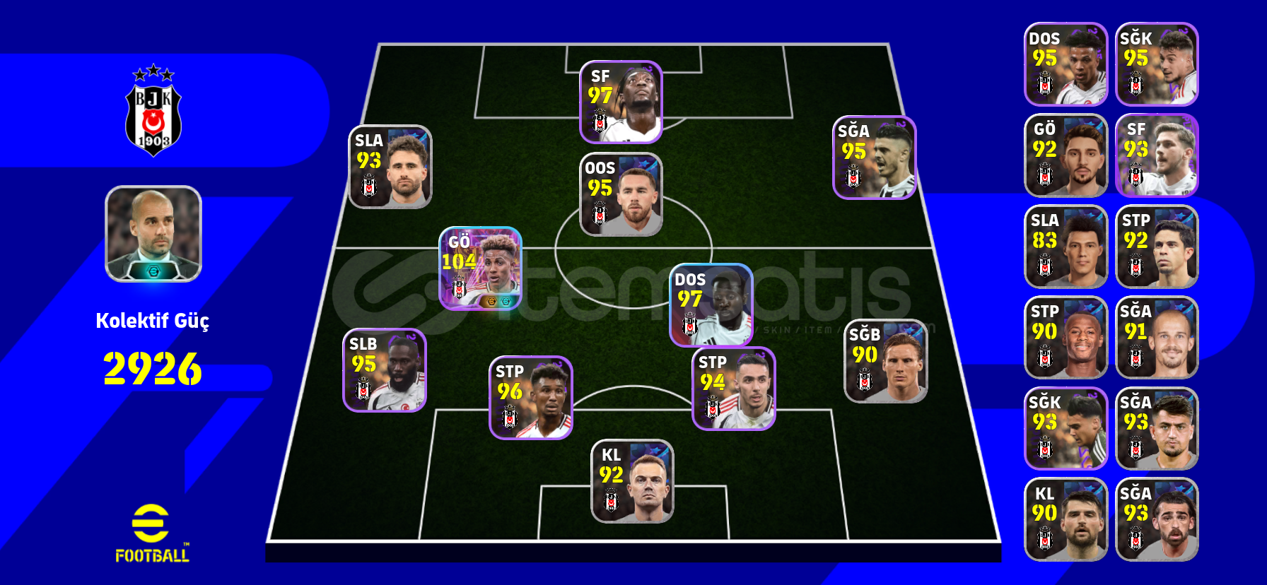 Hesap Max 3192 Kolektif Güce sahiptir.Mail Değişebilirsiniz her konuda yardımcı olucam.İlk sahibiyimMourinho - Guardiola - Ruben Amorim bulunmaktadır.105 Forlan / 105 Shevchenko / 105 Van Basten / 105 Puskas / 104 Dembele / 103 Romario / 103 Osimhen vb. kartlar bulunur.Beşiktaş kadrosu bulunmaktadır.7.5 Milyon GP ve 50 eFootball Coin bulunmaktadır.