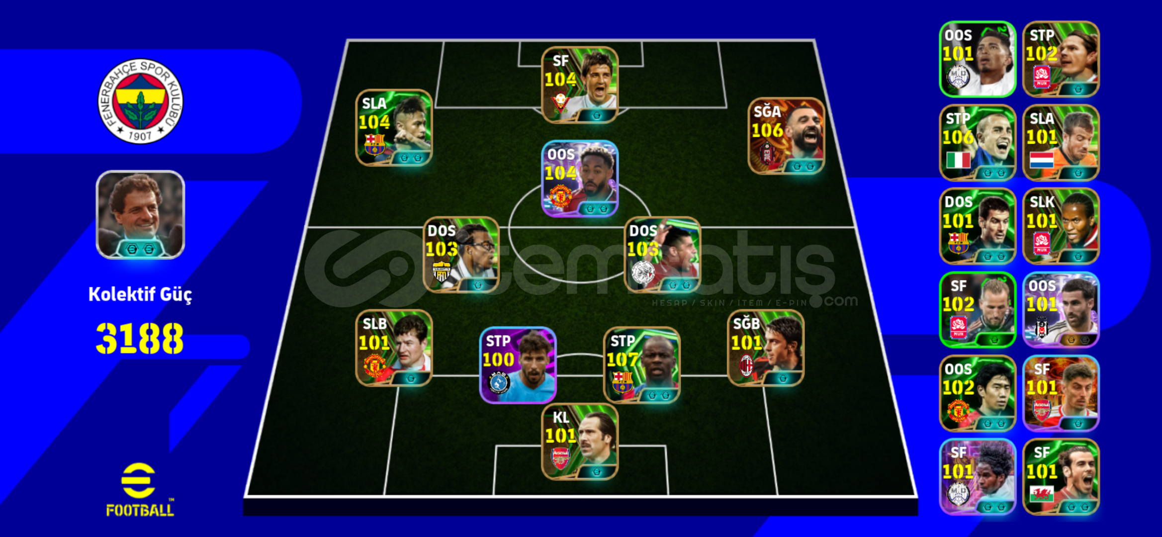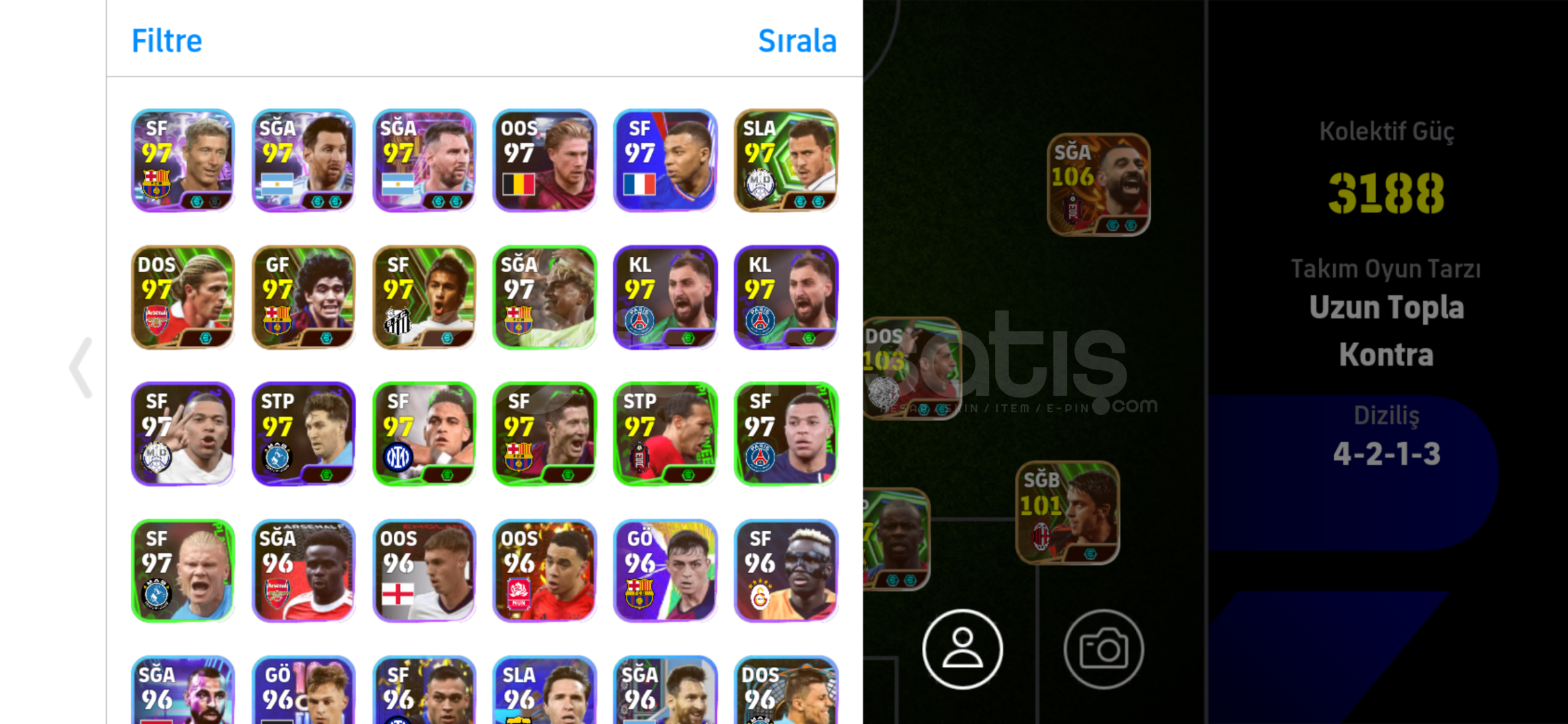 💥 106 Bombacı Salah⚡ 104 Neymar🔥 104 Matheus Cunha🛡️ 107 Lilian Thuram⭐ 3188 Kolektif Güçlü Hesap Satılıktır! ⭐