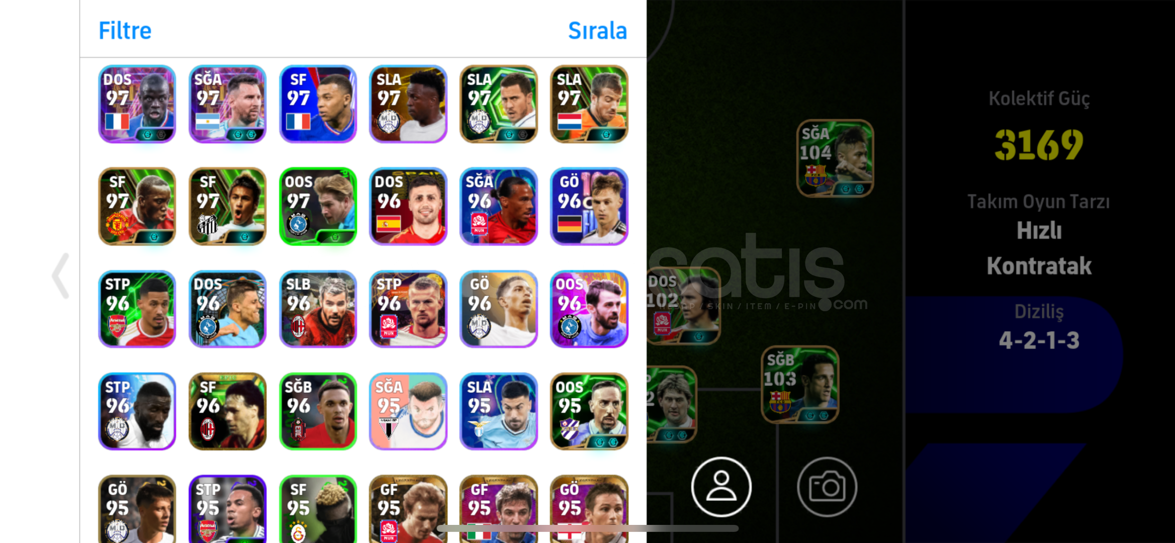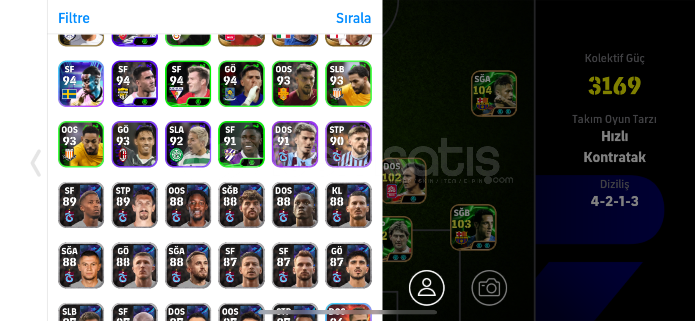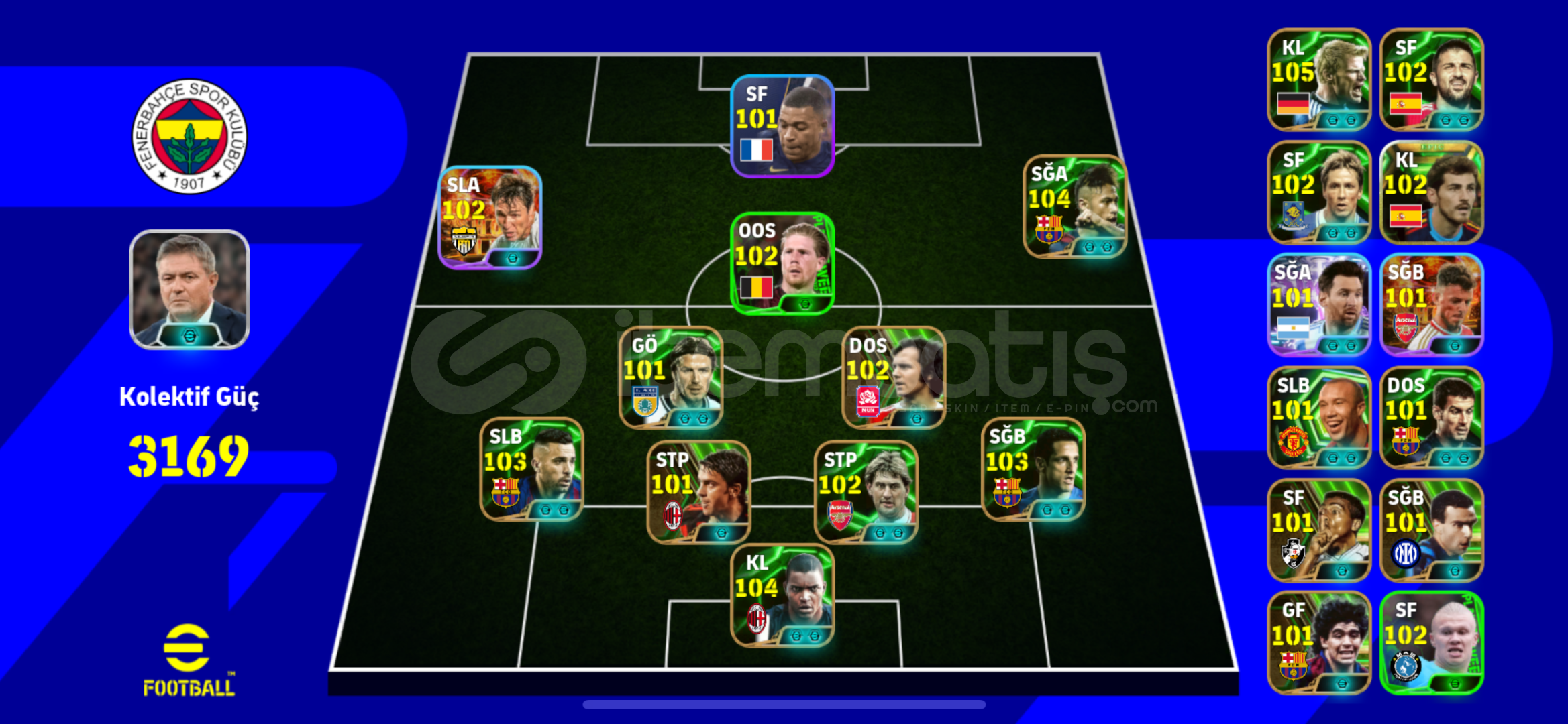 Hesap mis gibi bombacılı bir hesaptır104 dida105 neymar102 chiesa103 jordi alba gibi kartlar vardır