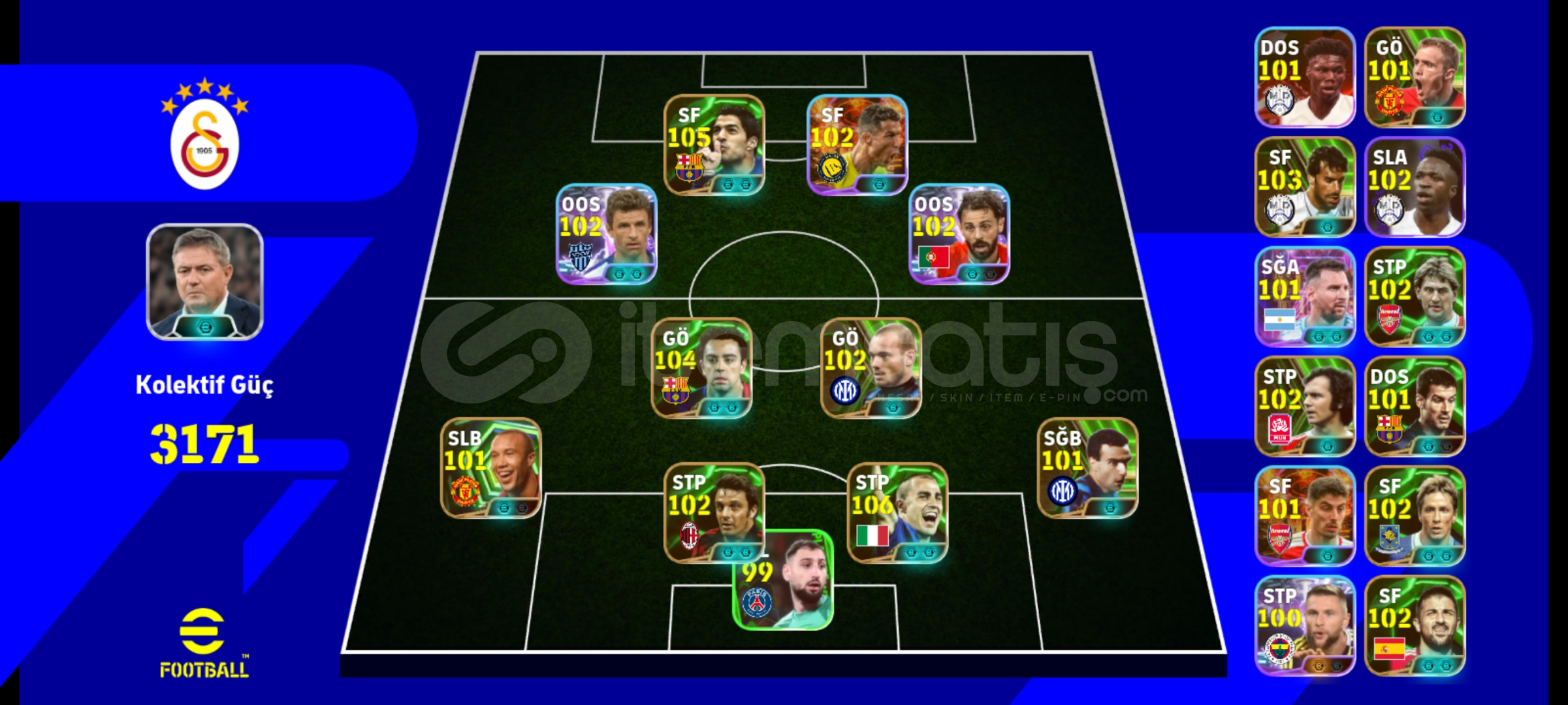 103 Ronaldo105 suarez105 xavi102 muller103 Silva106 cannavaro99 buglu donarummaUyguna veriyorumTek bağ