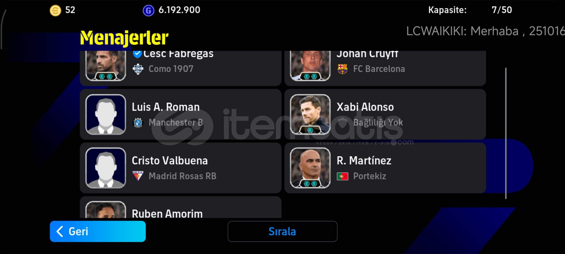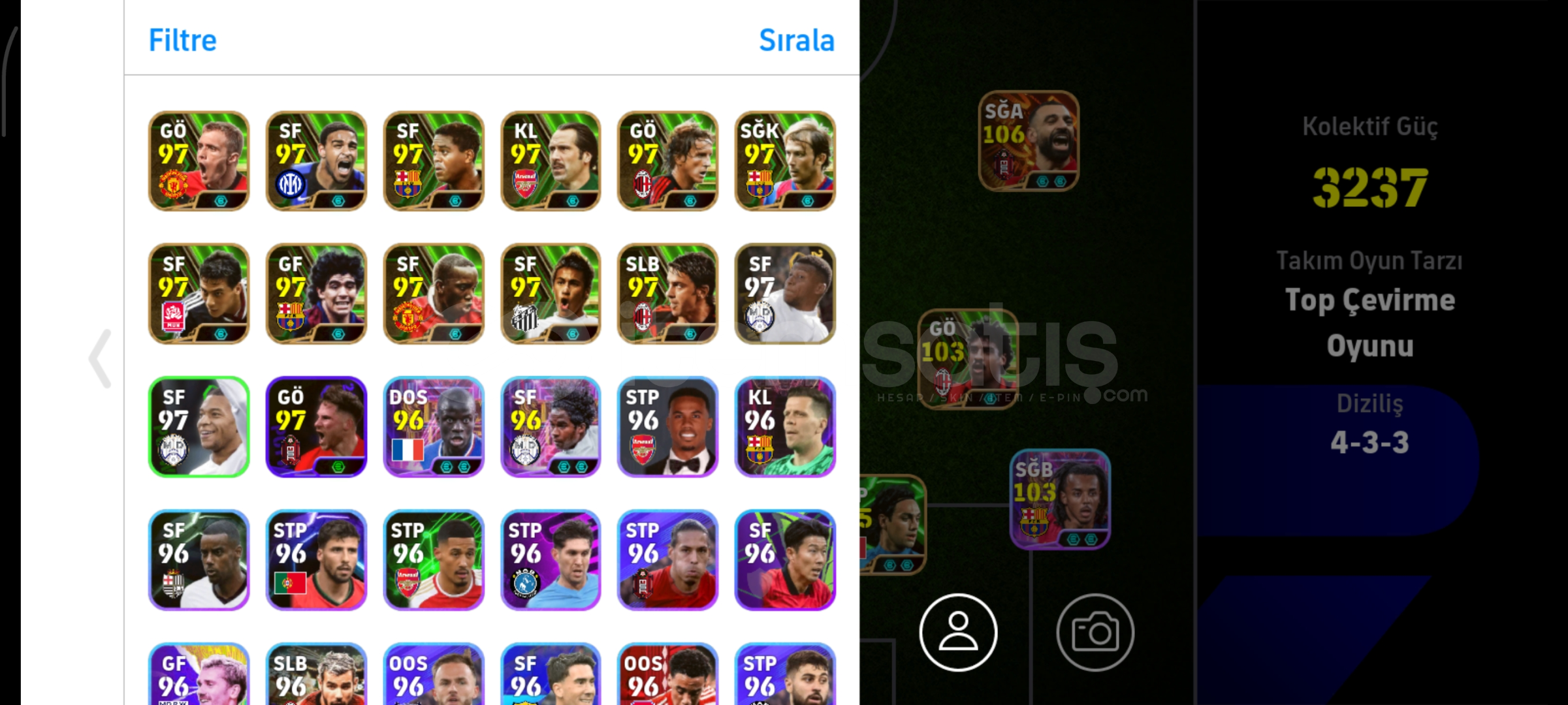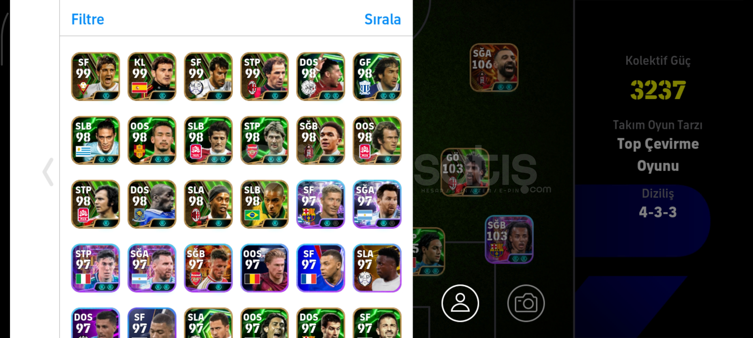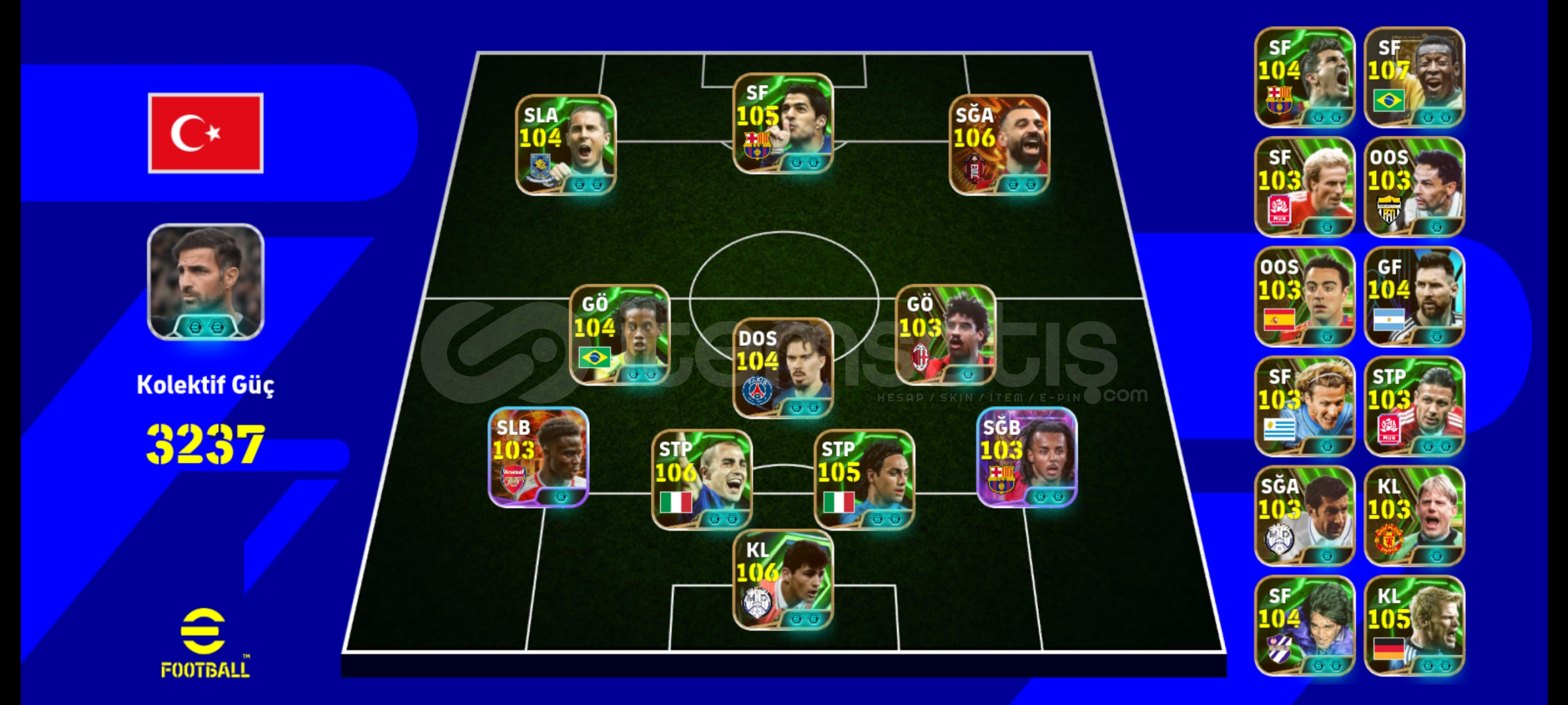 Hesapda yok yok103 rummenige 105 Suarez107 pele Ve birçok efso kartlar mevcutturHesabın konami dışı bağlıdırGoogle play ölü bagdir giriş olmaz kefili benimAlıcıya hayırlı olsun diyorum