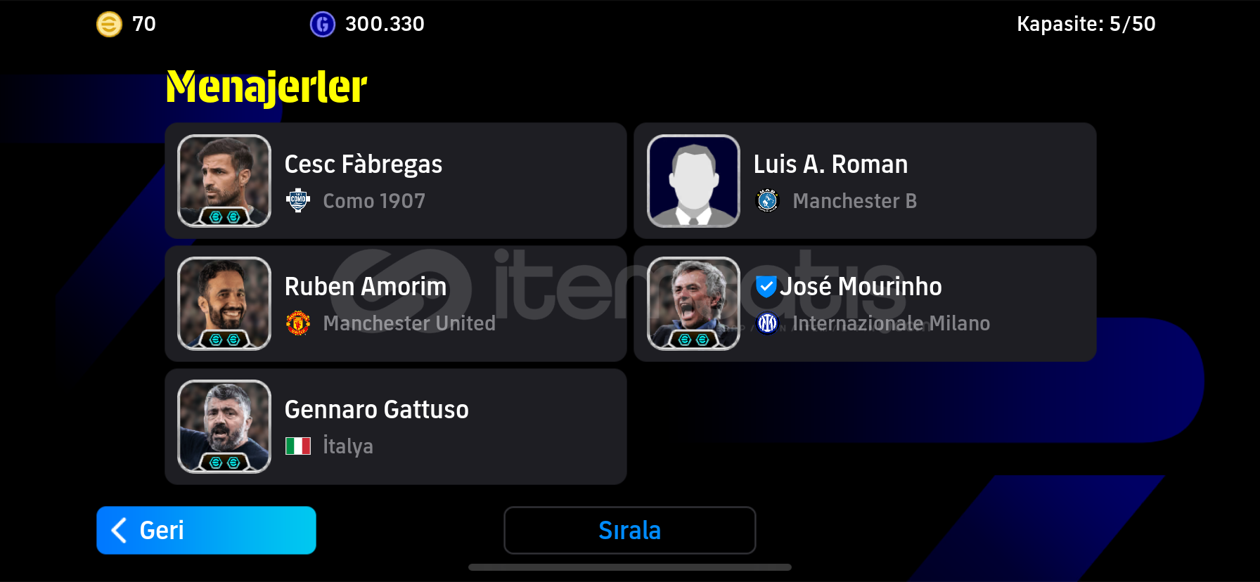 Hesab tek bağdır konami -mc yoktur hesabda 3 bombacı vardır maks kolektif 3229 dir kadro dışı dolu doludur teknik direktör Mourinho vardır