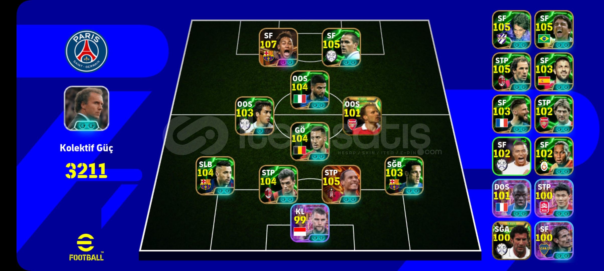 🥇Max 3213 KG NADİR HESAPPAZARLIK VAR🔥✅️Tek Bağ🟣Çift Güçlendirici Menajer BECKENBAUER🔴107 NEYMAR🔴105 VAN DİJK🔴105 OWEN🔴104 MALDİNİ🔴104 HAZARD🔴104 İNSİGNE🔴104 ALBA🔴103 GİROUD🔴100 KİM MİN JAE+Eski epicler