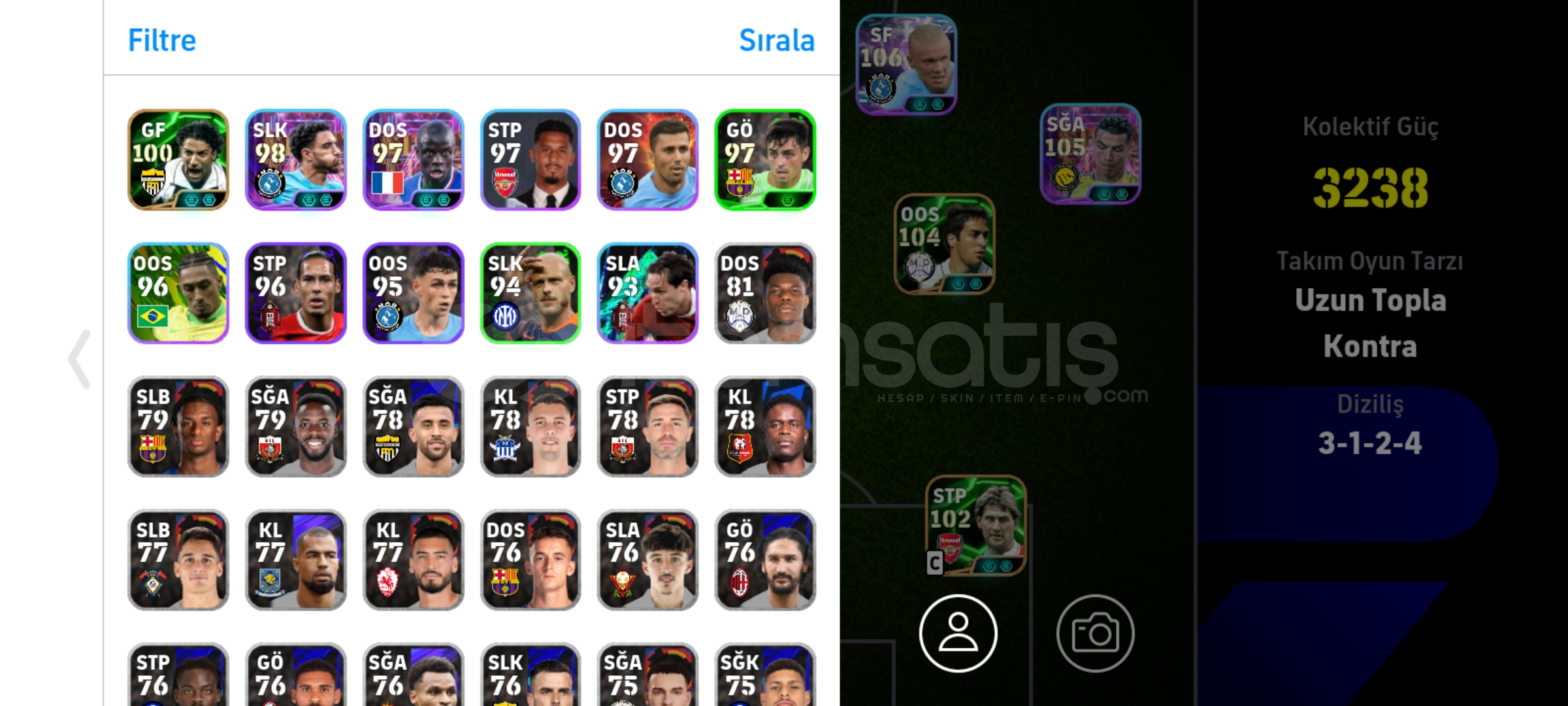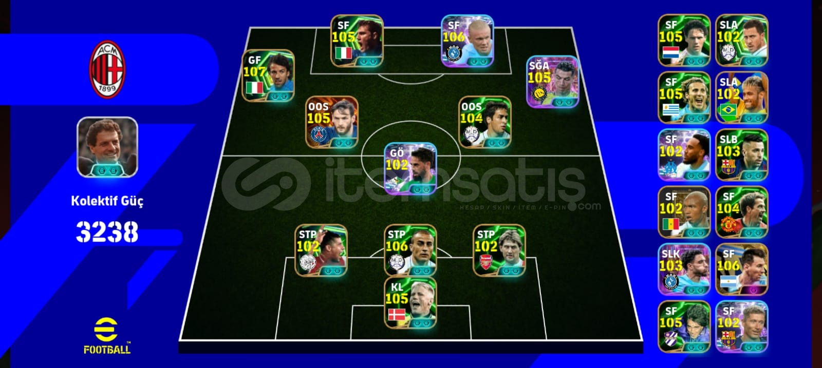 TEK BAĞ MUAZZAM HESAP ❤️‍🔥- TEK BAĞ ✅- MAX KG 3242 ⭐- 107 DEL PİERO ⭐- 106 KVARA ⭐- 105 OWEN ⭐- 105 RONALDO ⭐- - MC YOK✅- 106 HALAND⭐-