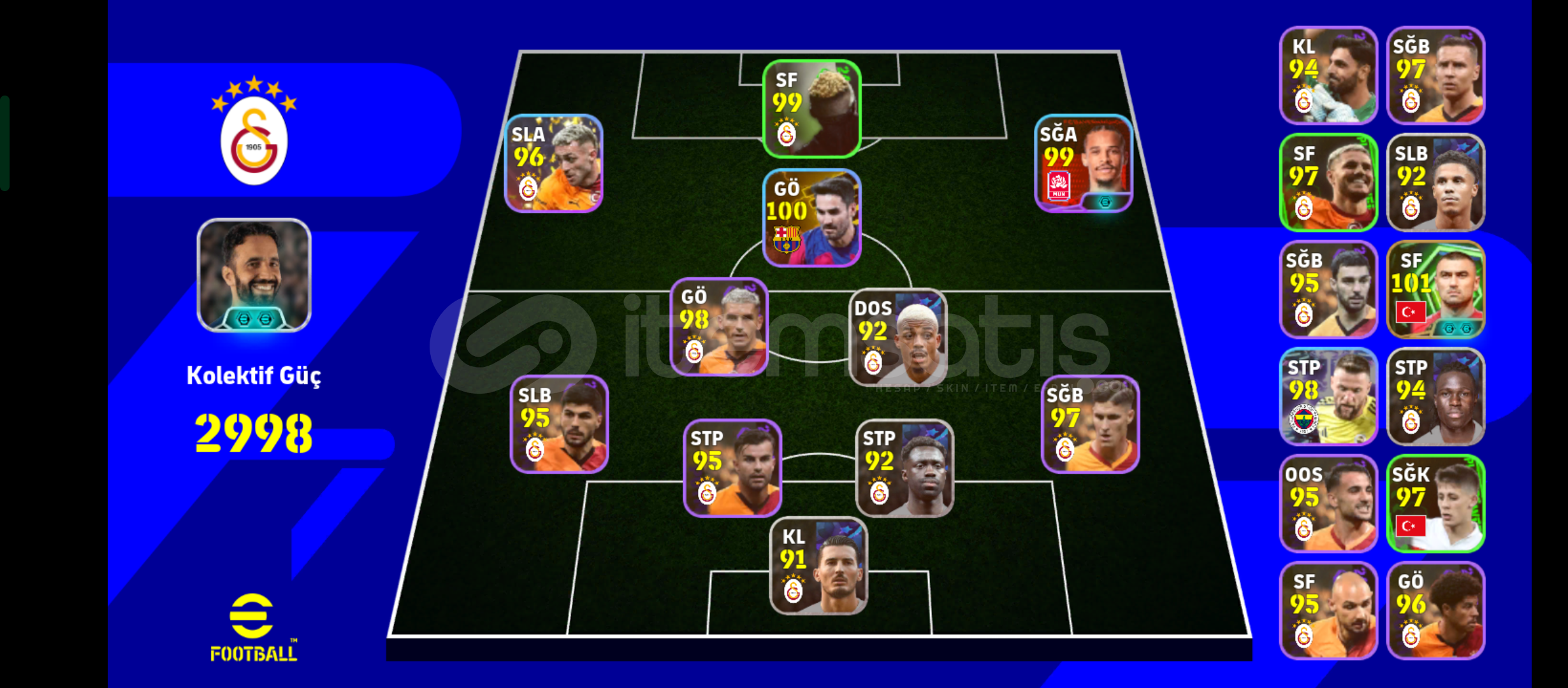Satilik e footbal hesabi 3202 kolektif güç 105 mesi 105 griezman 104 thiago alcantara 103 bombaci uli hones Ve ozel superlig oyunculariyla olan kadro bu fırsat kacmaz